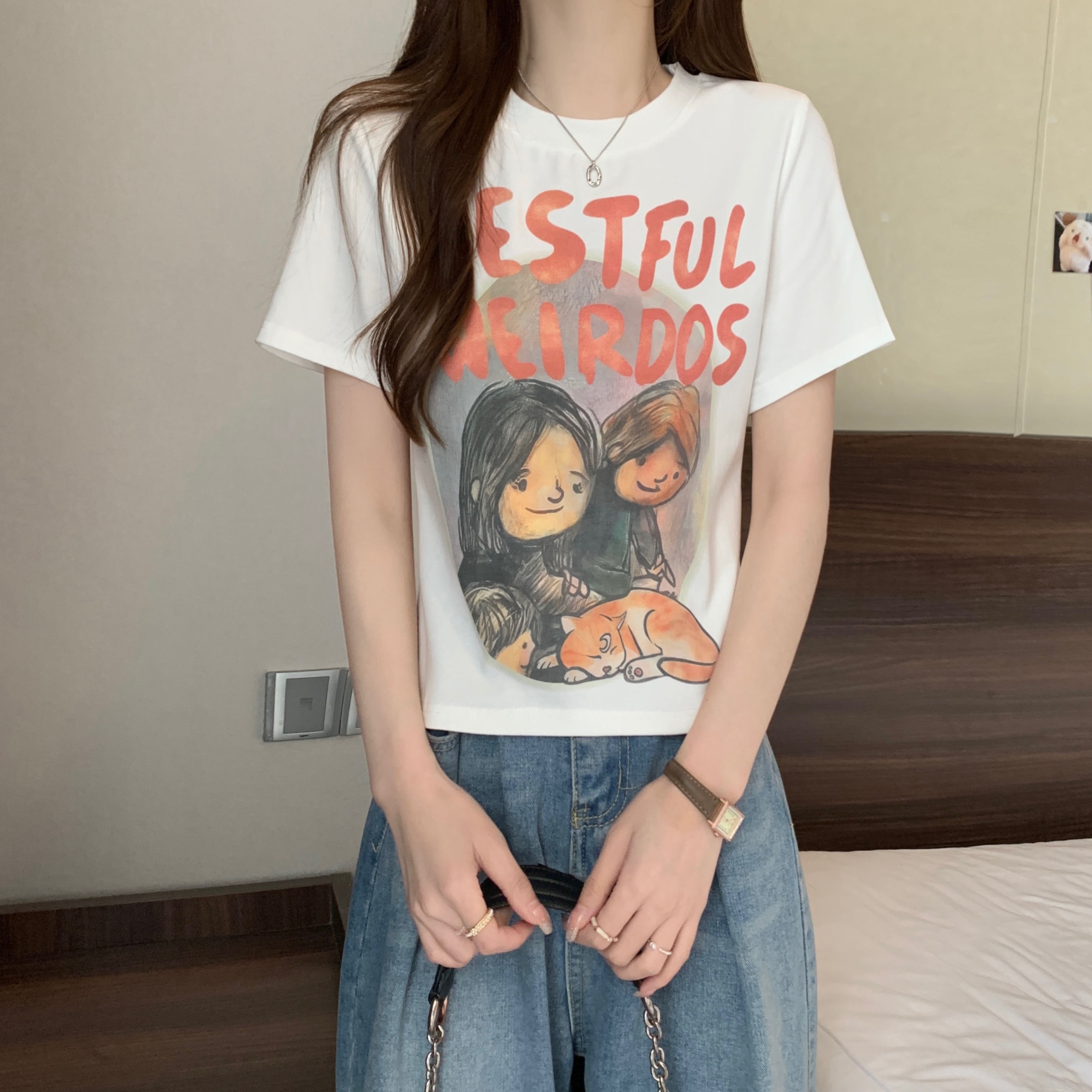 RM21745#大码女装卡通漫画印花字母短袖T恤女2023夏季修身显瘦T恤女