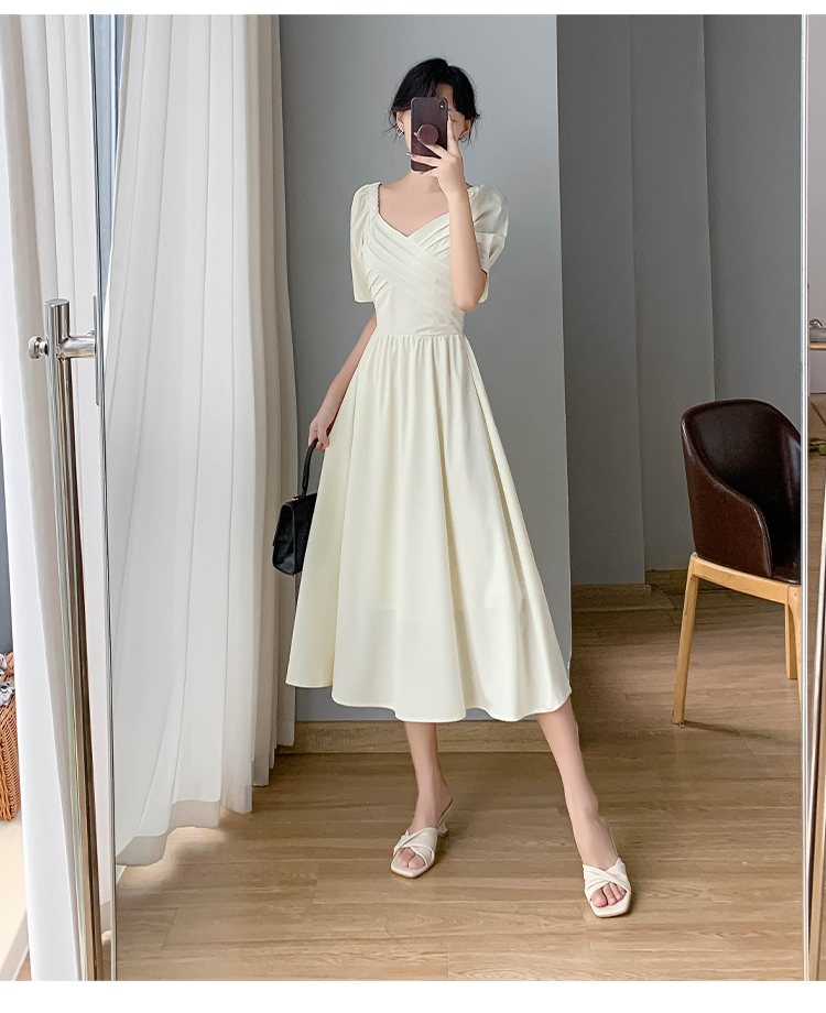 RM21921#夏季连衣裙超修身淑女短袖套头纯色