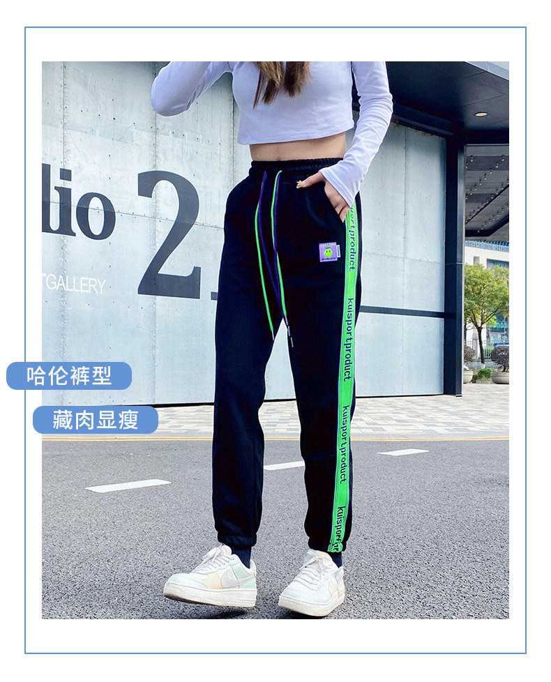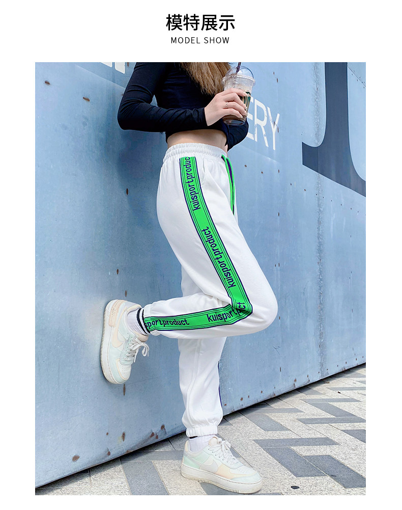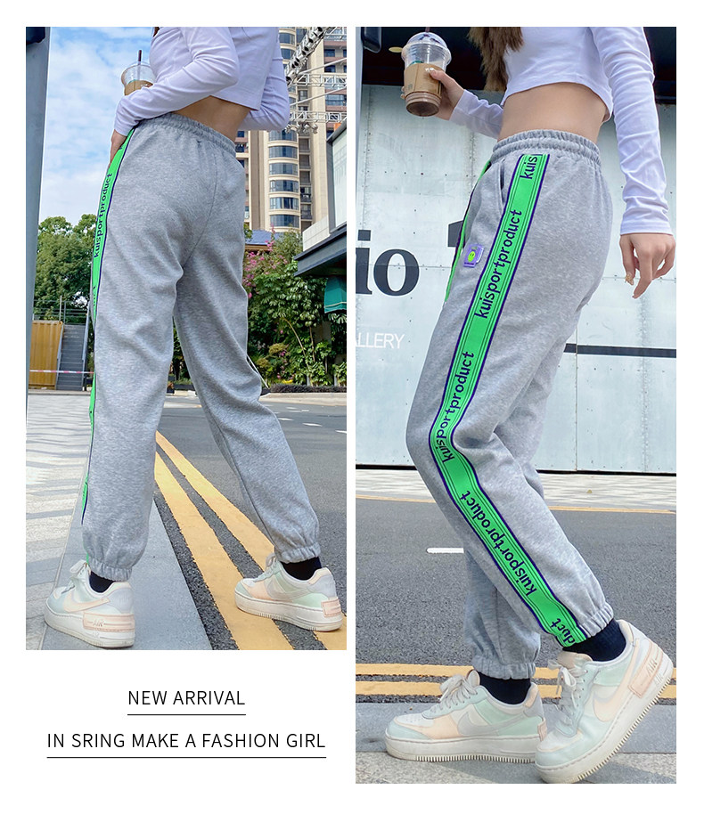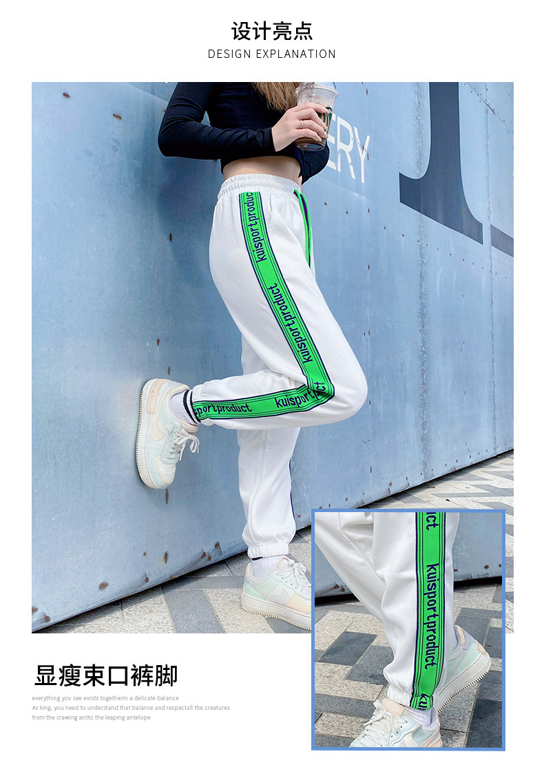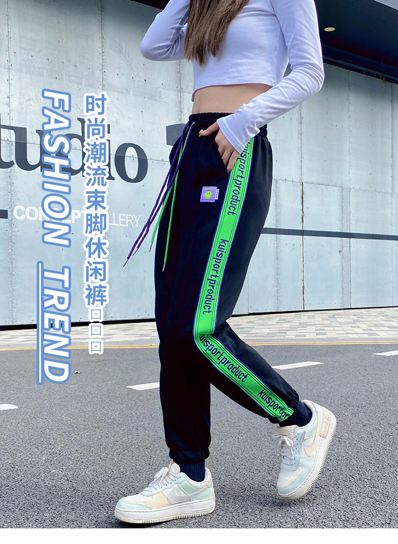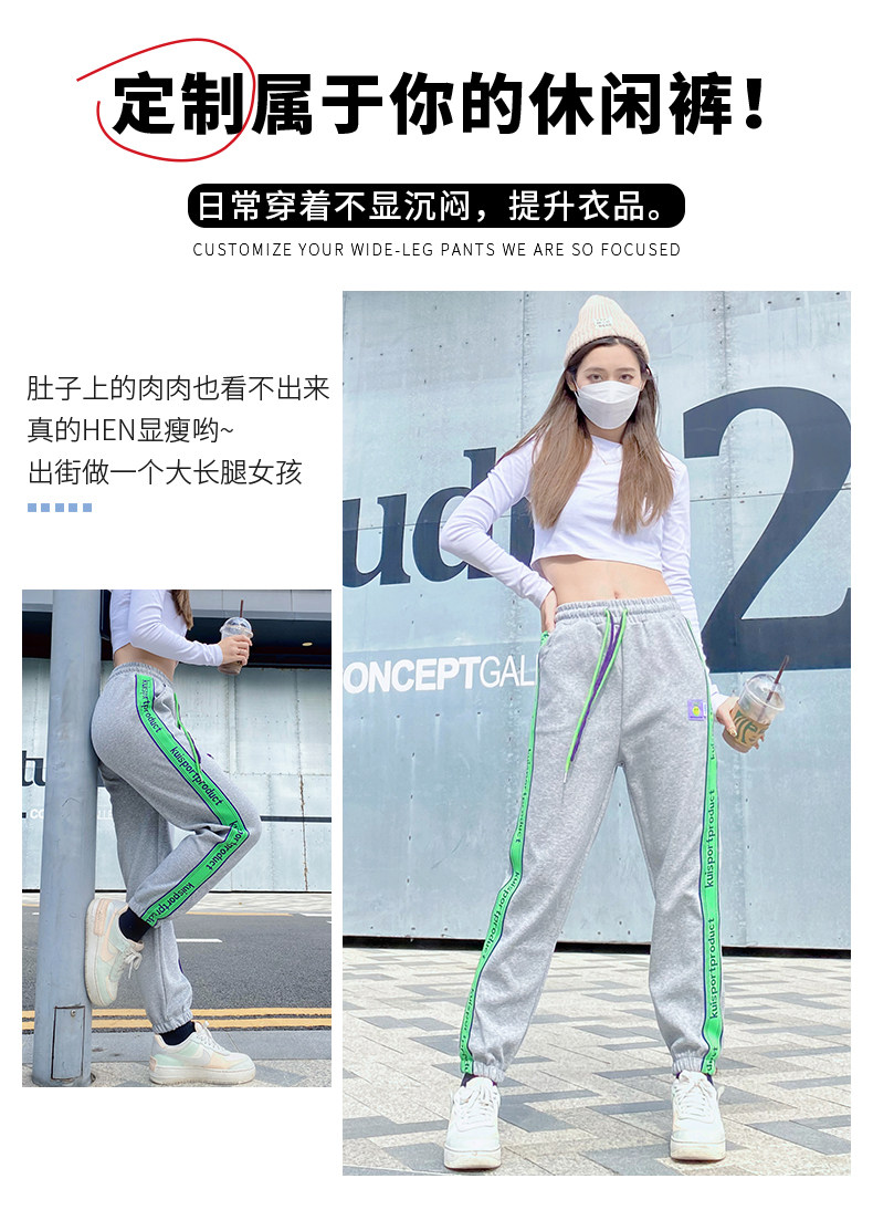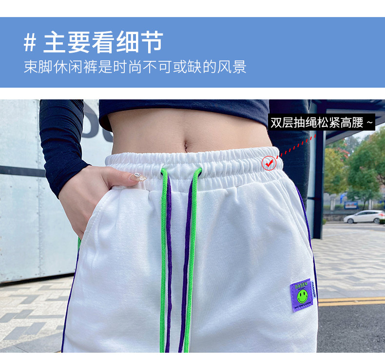 RM22029#撞色拼接条纹休闲运动卫裤女2023秋季韩版百搭束脚宽松哈伦裤
