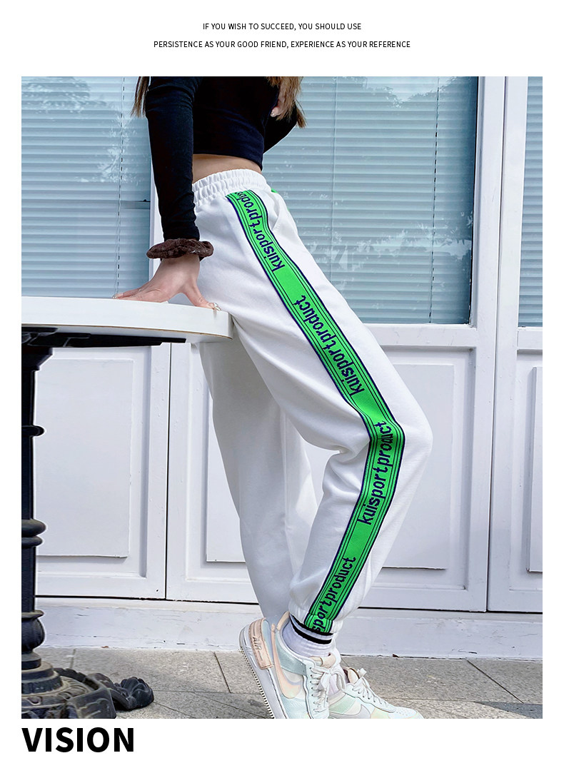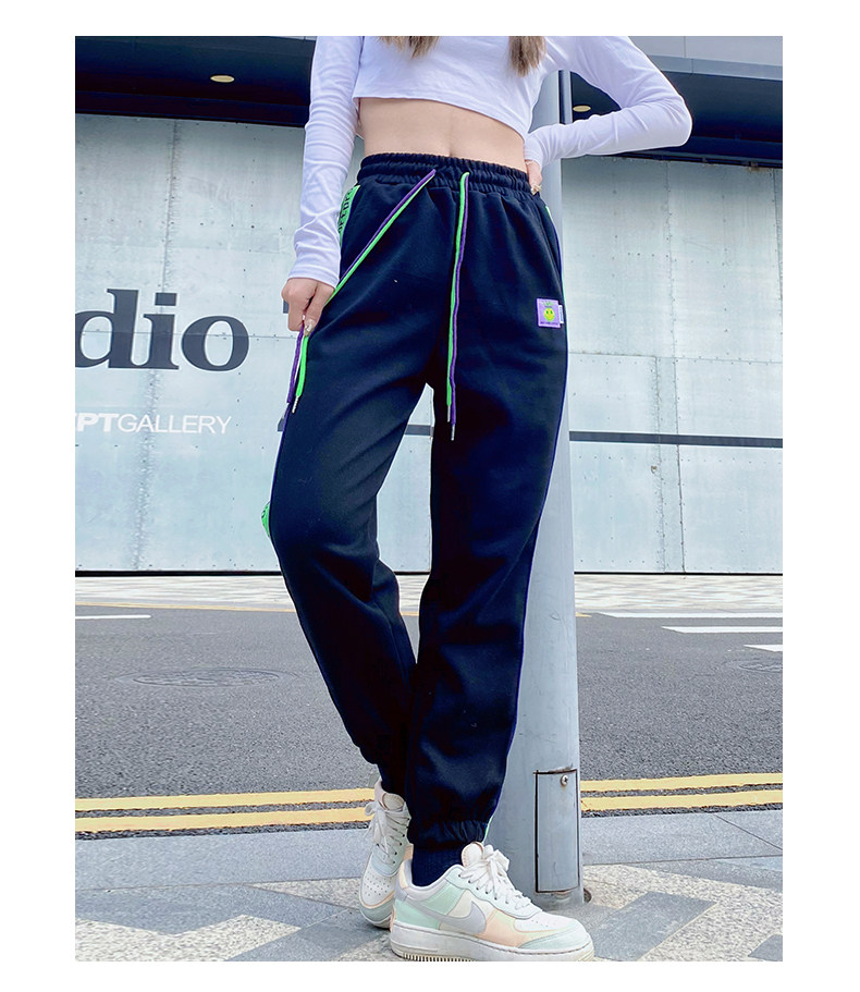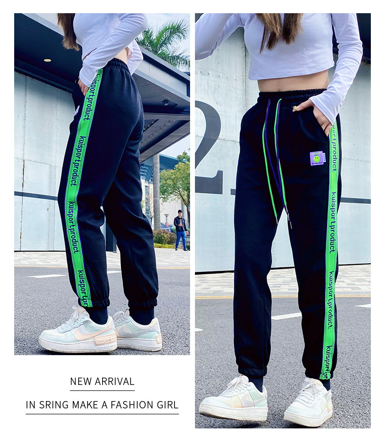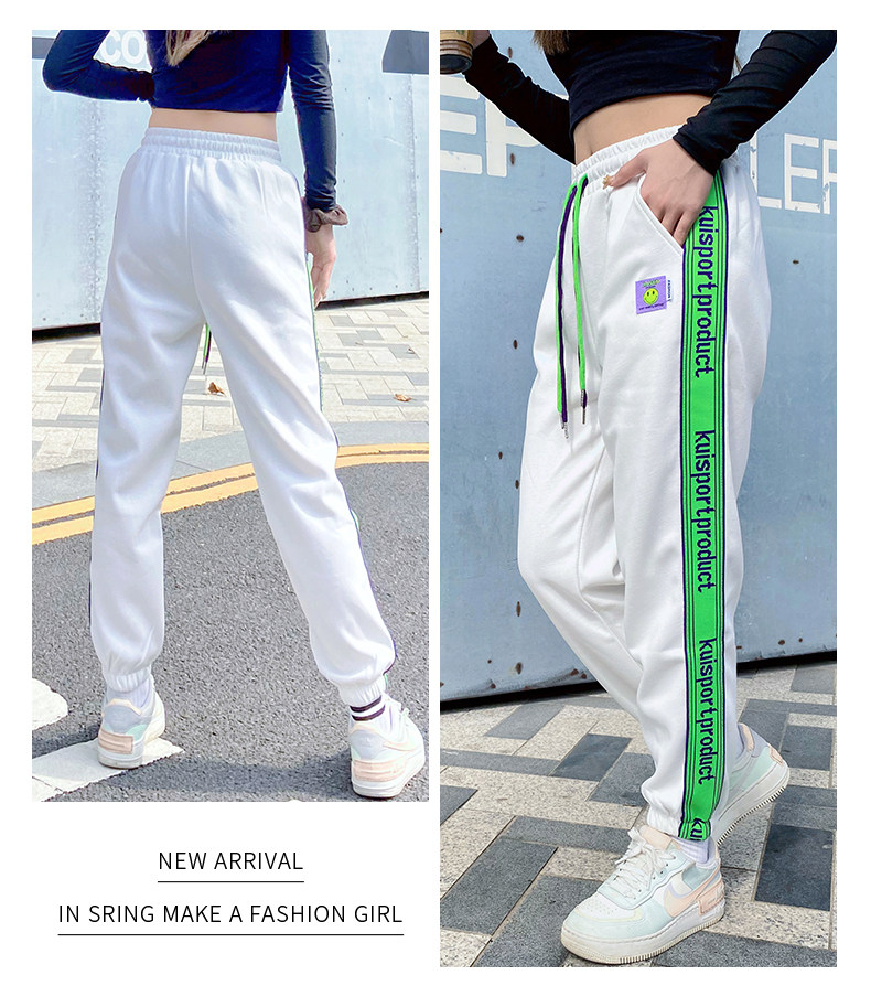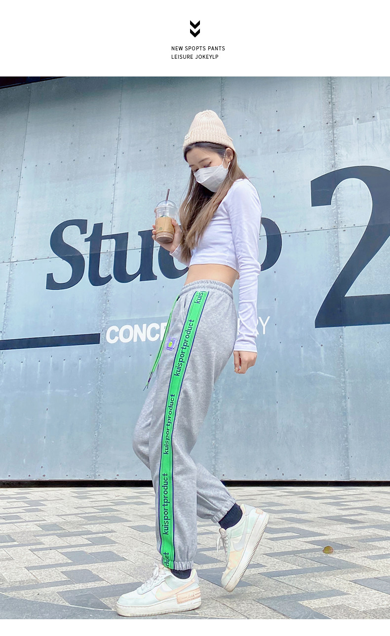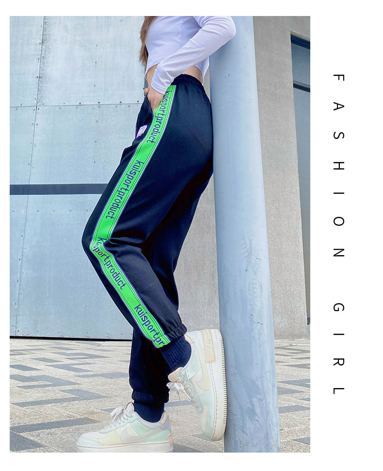 RM22029#撞色拼接条纹休闲运动卫裤女2023秋季韩版百搭束脚宽松哈伦裤
