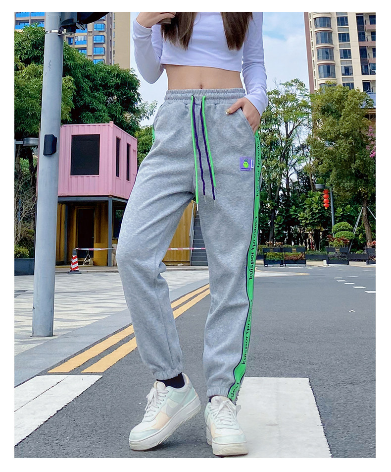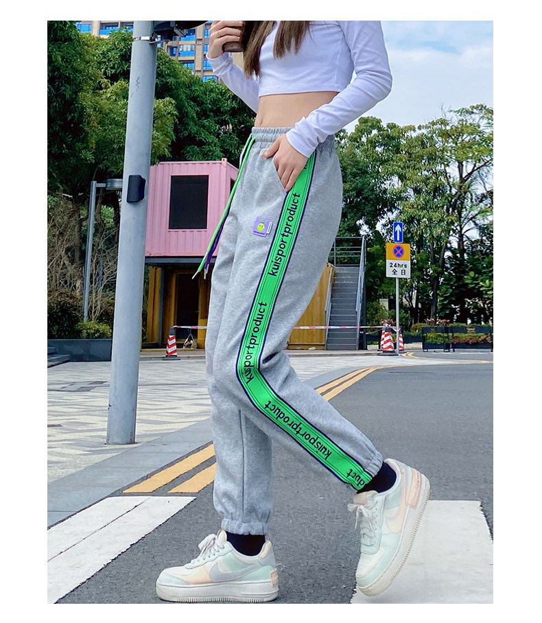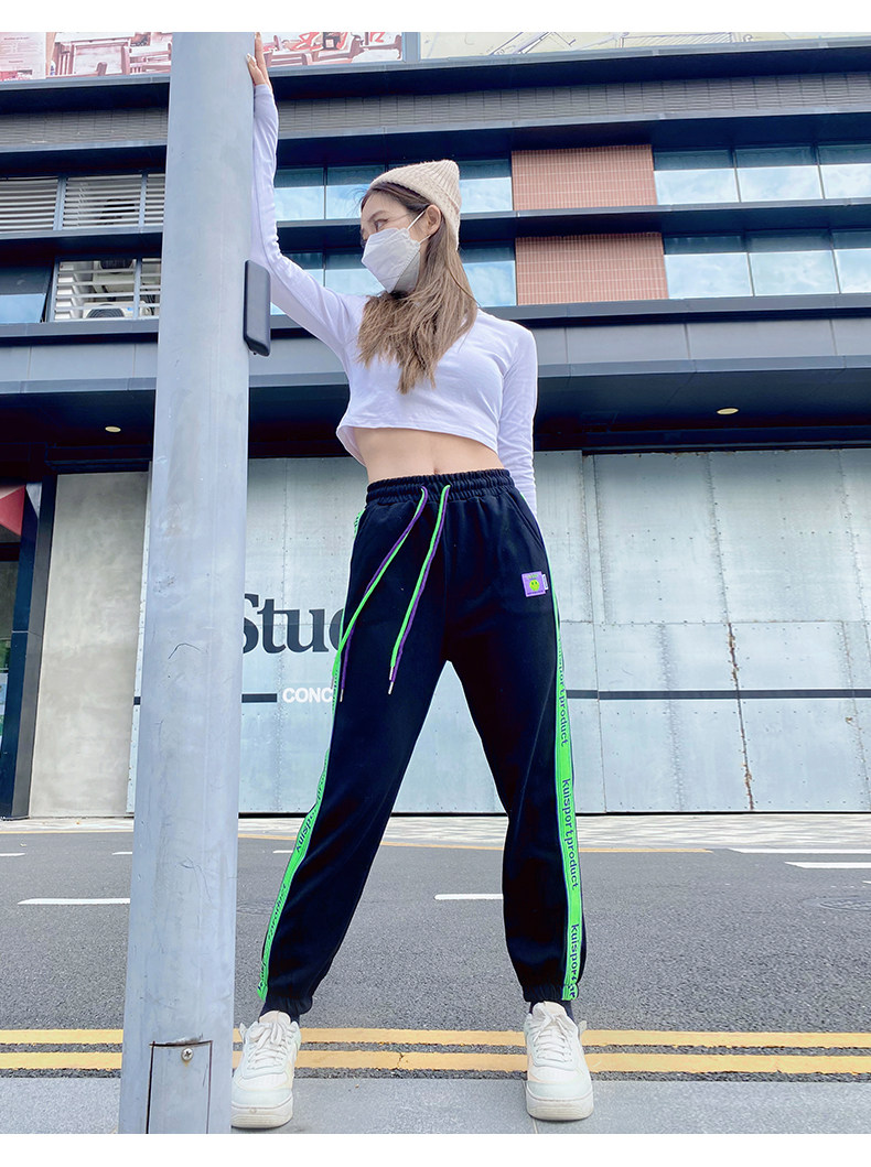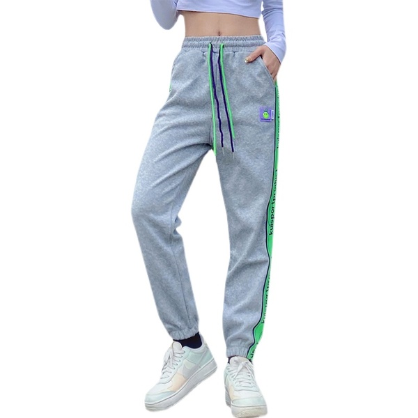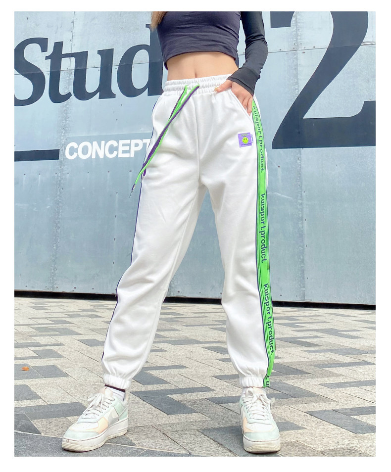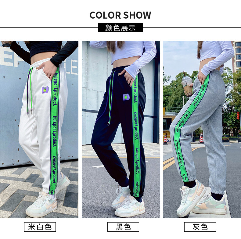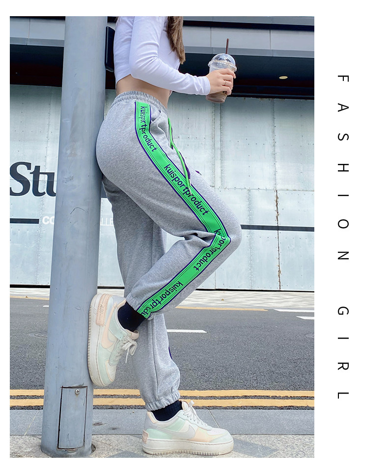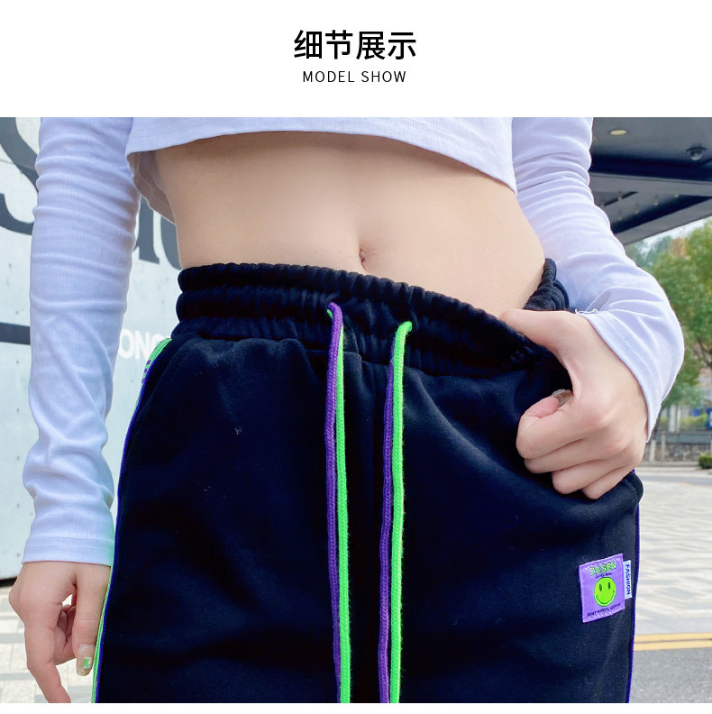 RM22029#撞色拼接条纹休闲运动卫裤女2023秋季韩版百搭束脚宽松哈伦裤