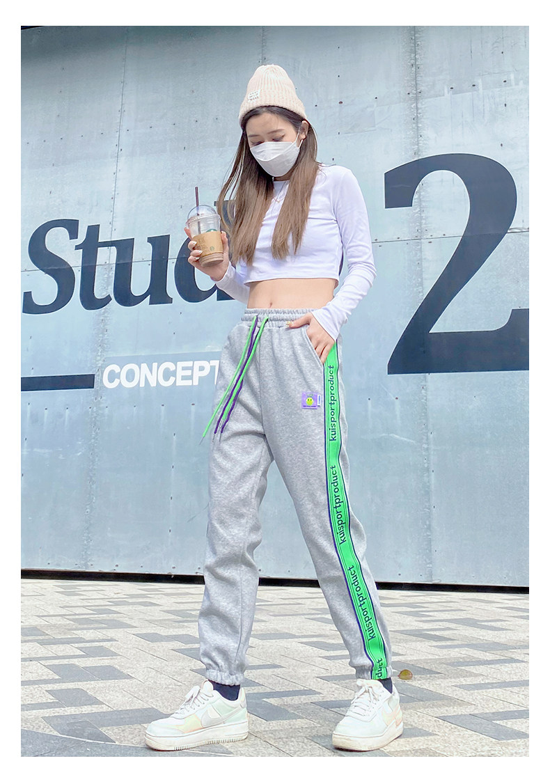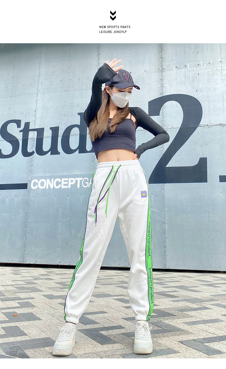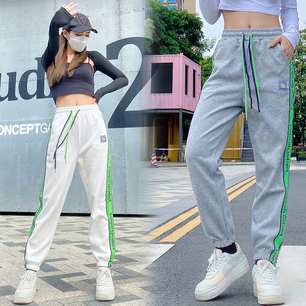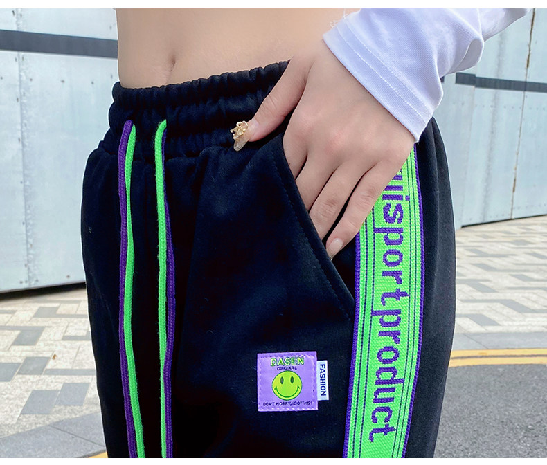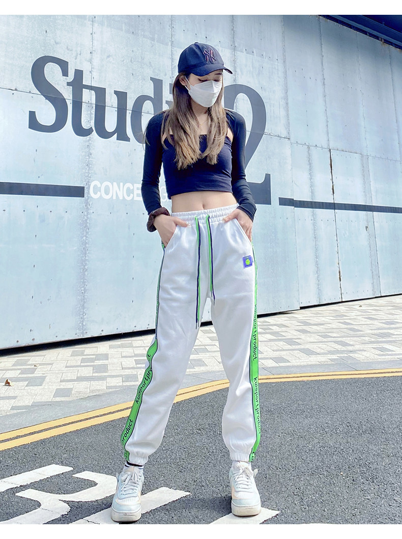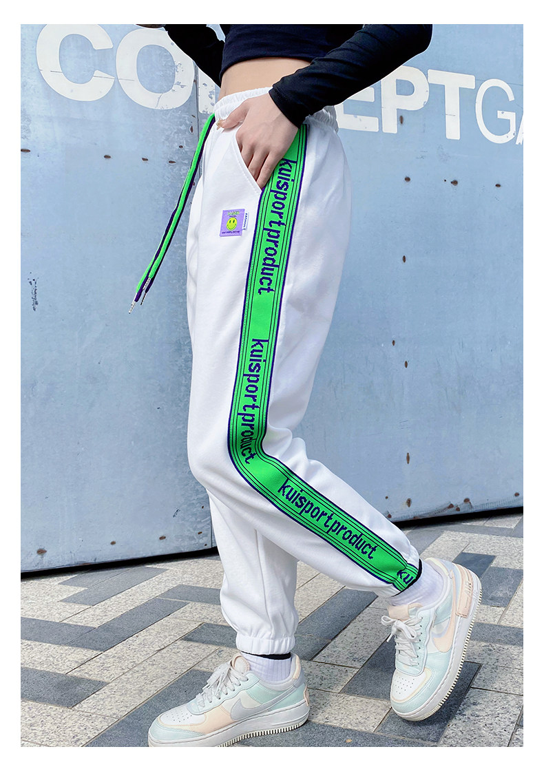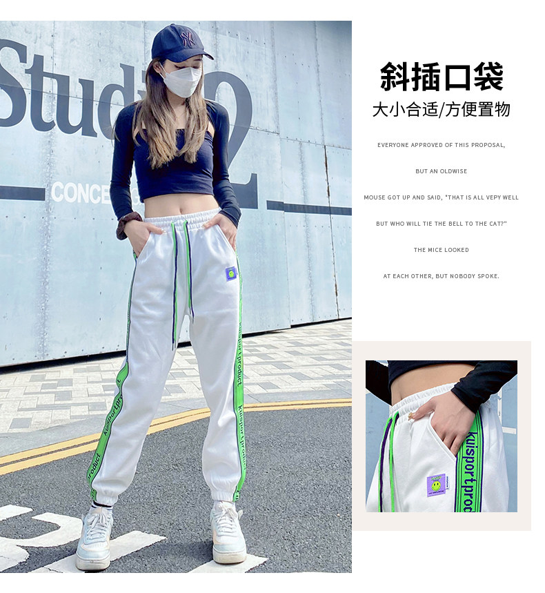 RM22029#撞色拼接条纹休闲运动卫裤女2023秋季韩版百搭束脚宽松哈伦裤