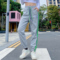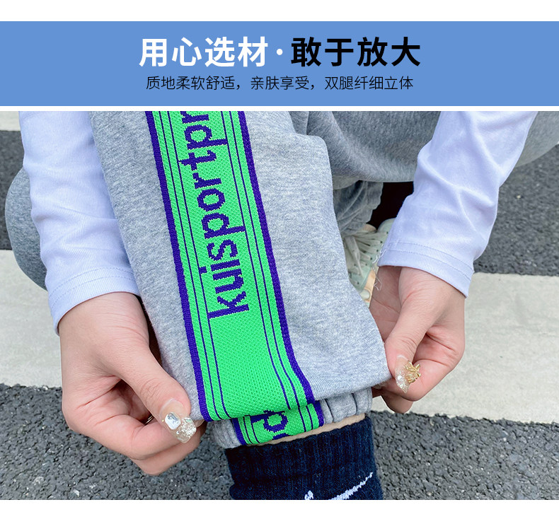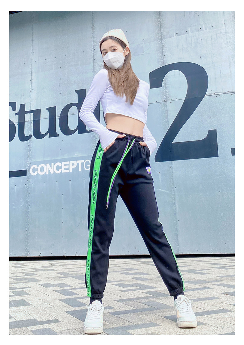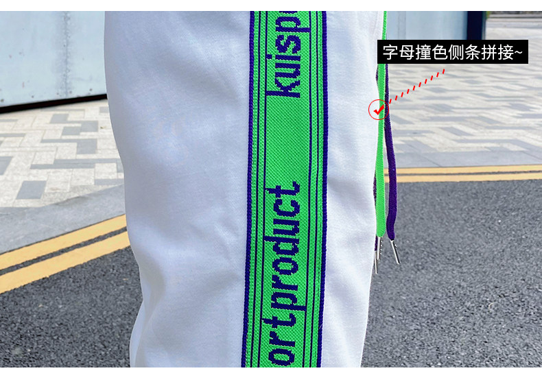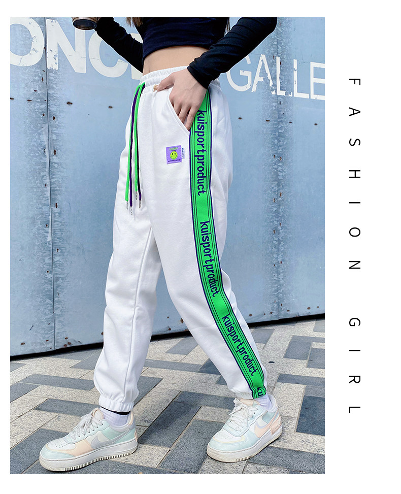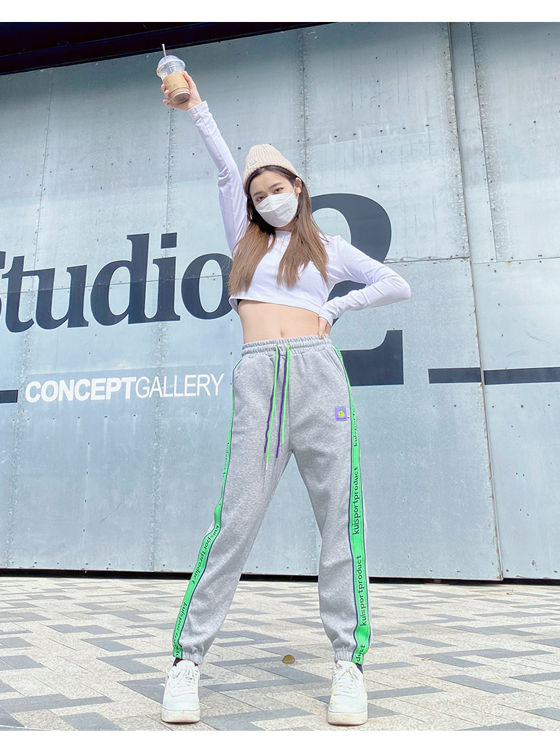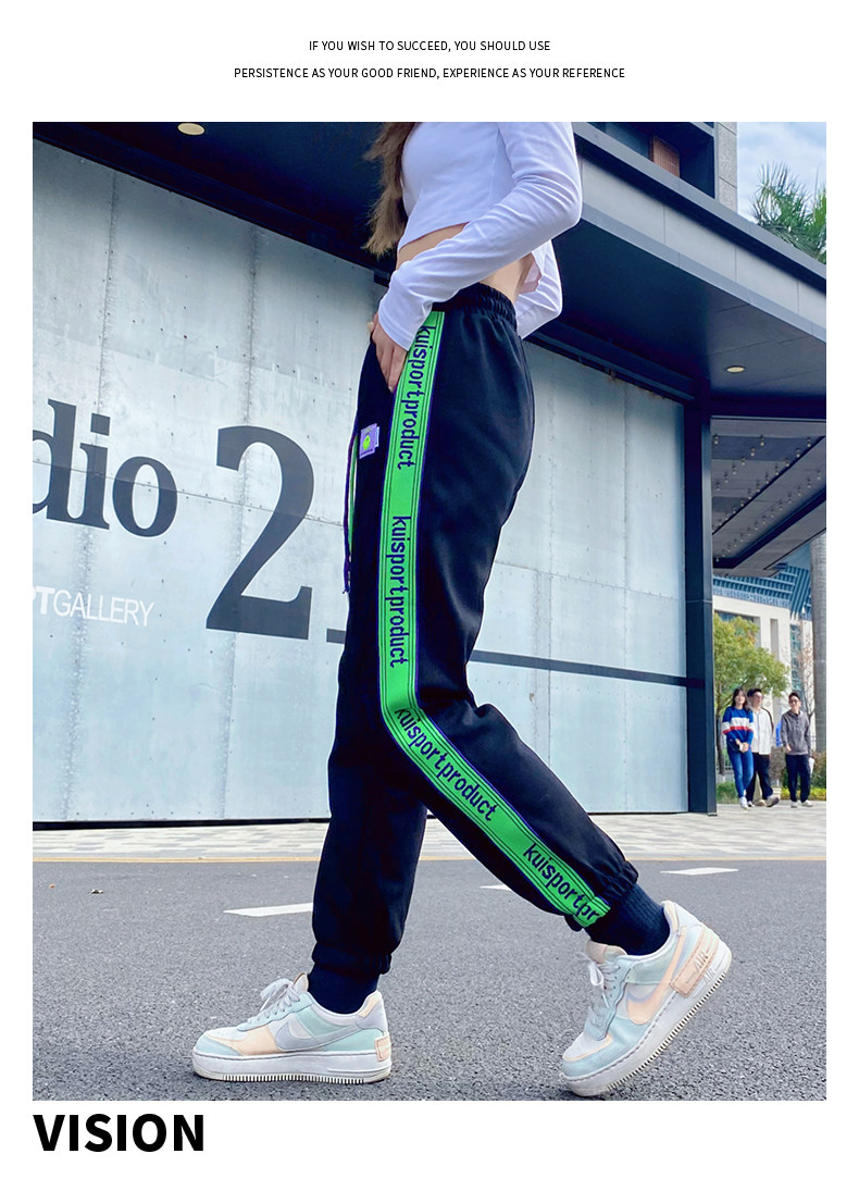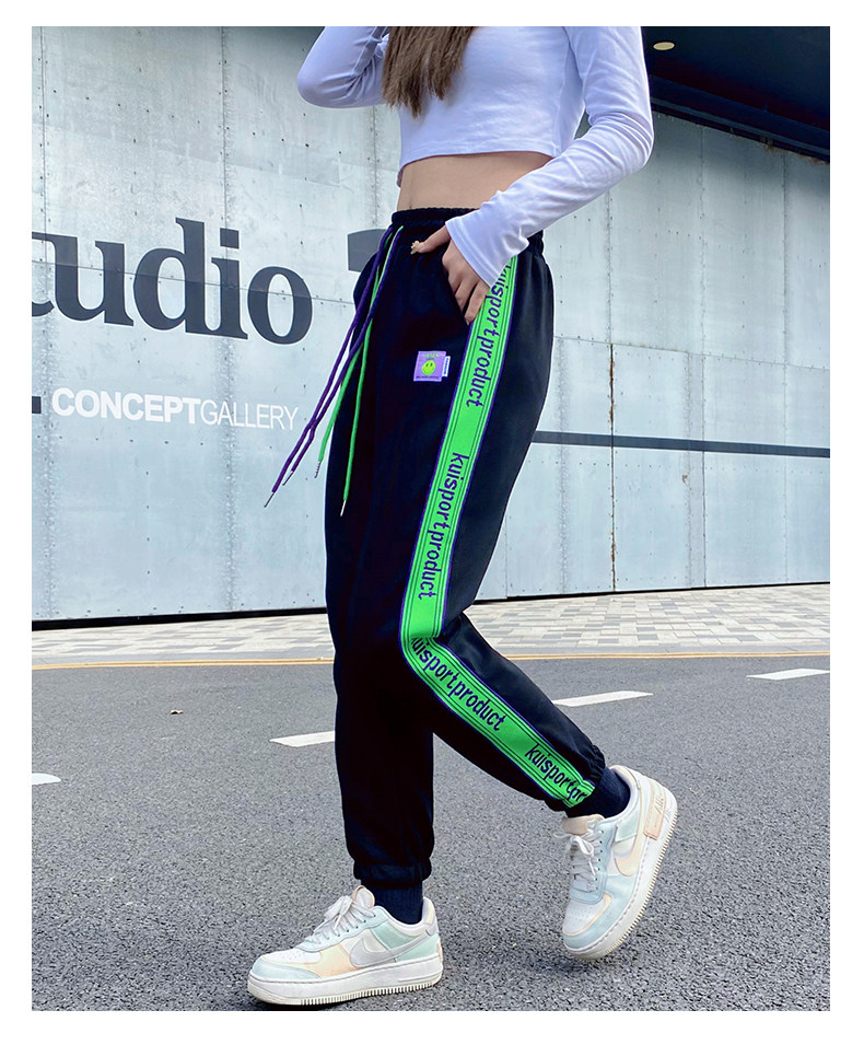 RM22029#撞色拼接条纹休闲运动卫裤女2023秋季韩版百搭束脚宽松哈伦裤