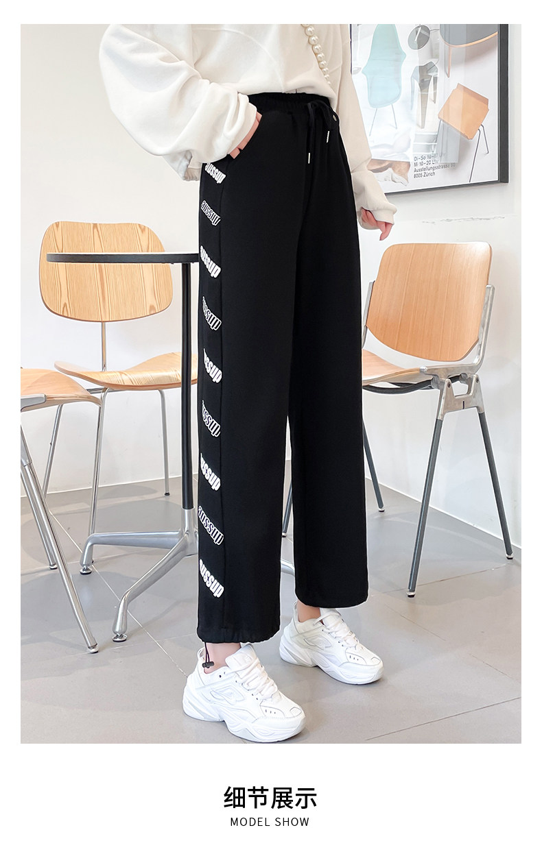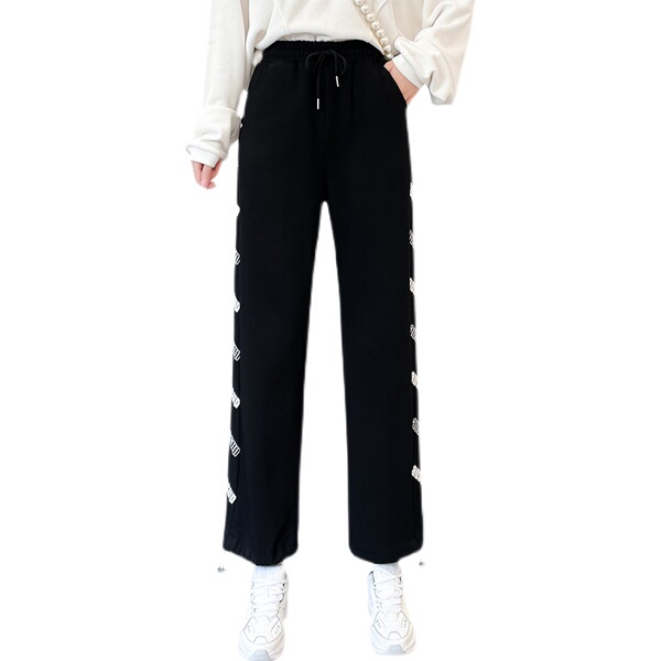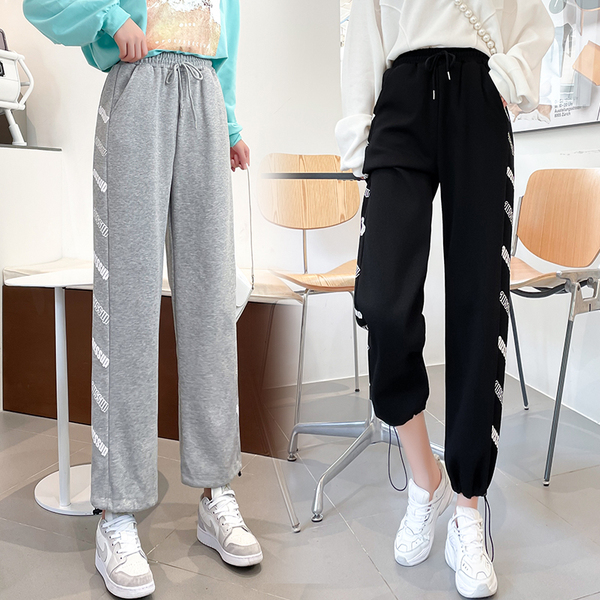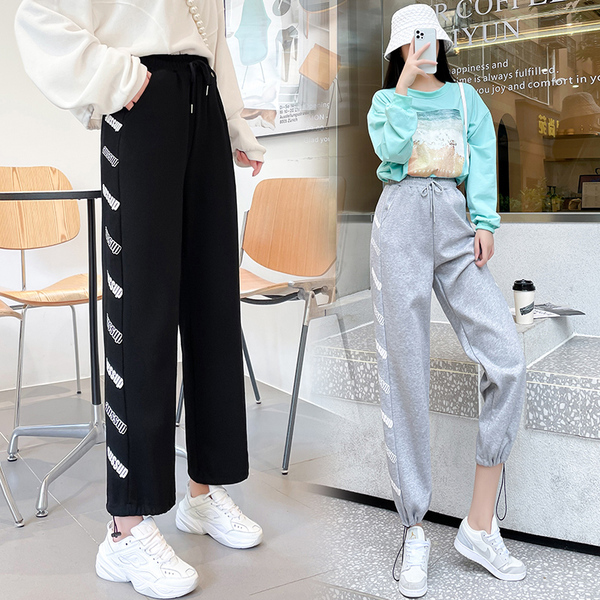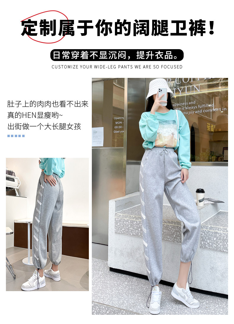 PF17193#运动裤休闲开叉裤垂感显瘦宽松直筒卫裤ins潮女裝貨源服裝批...
