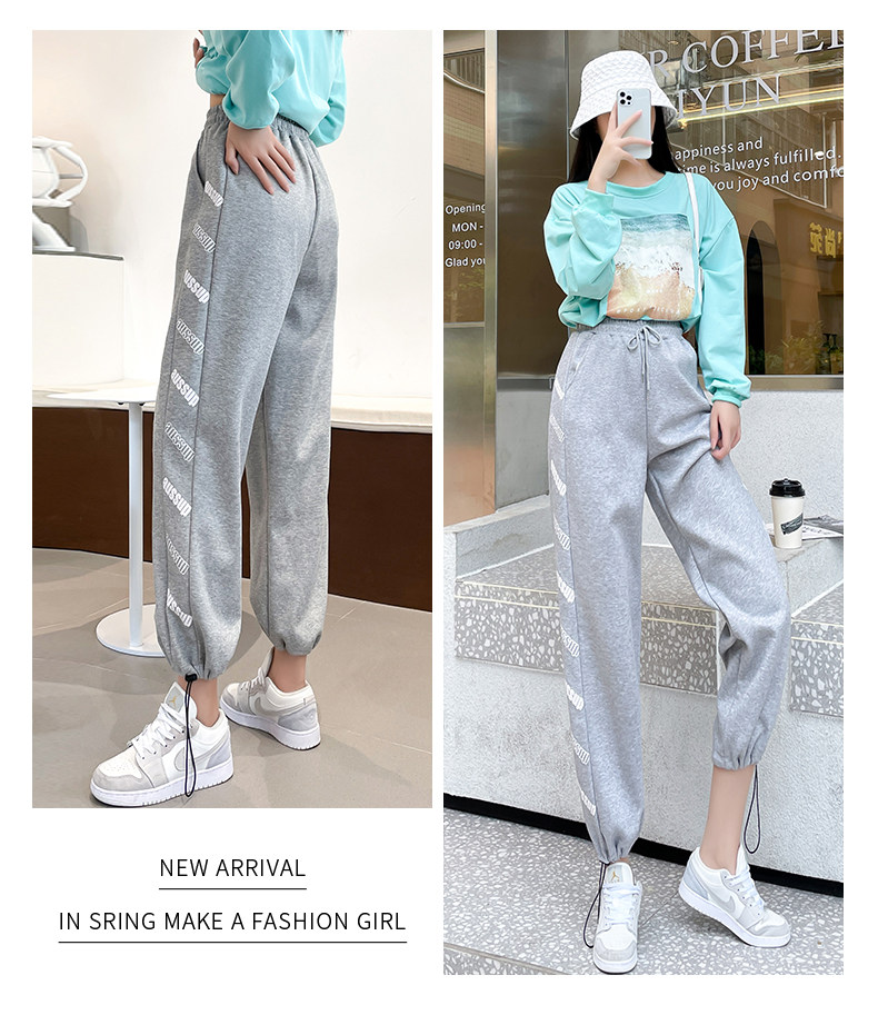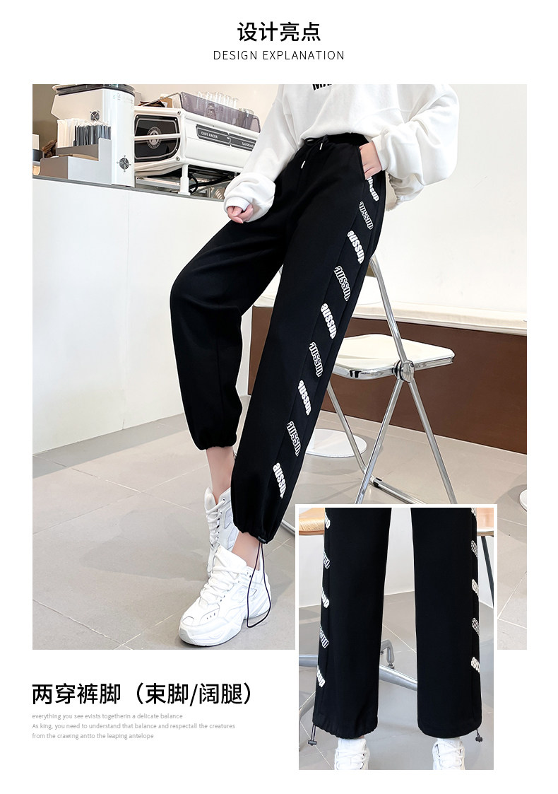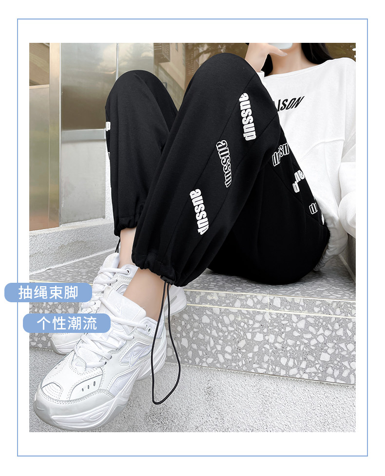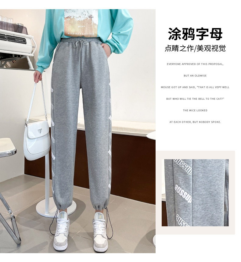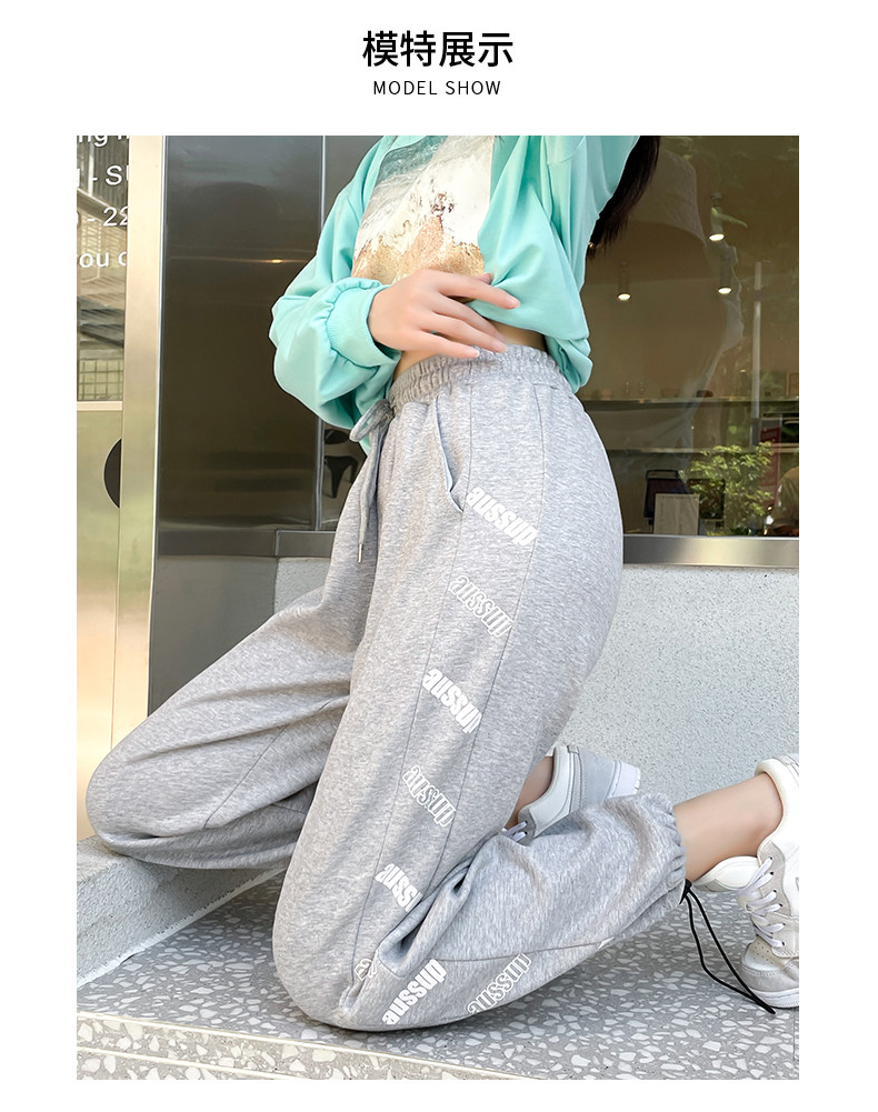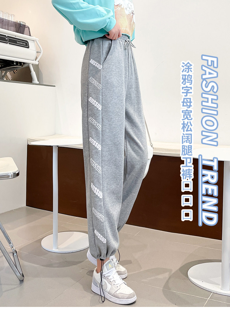 RM22031#涂鸦阔腿卫裤女2023秋季新款韩版宽松腰哈伦萝卜运动裤束脚裤