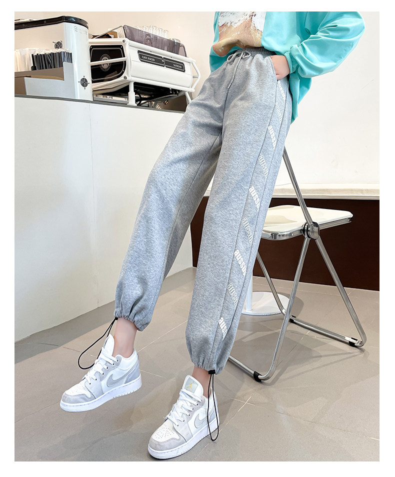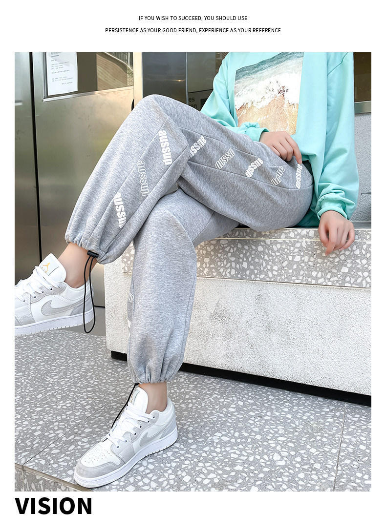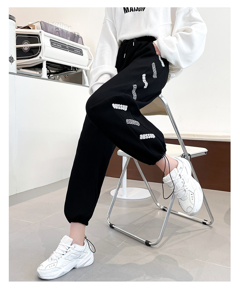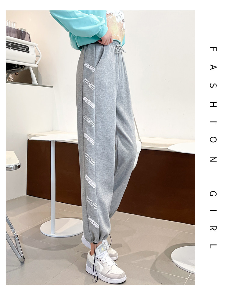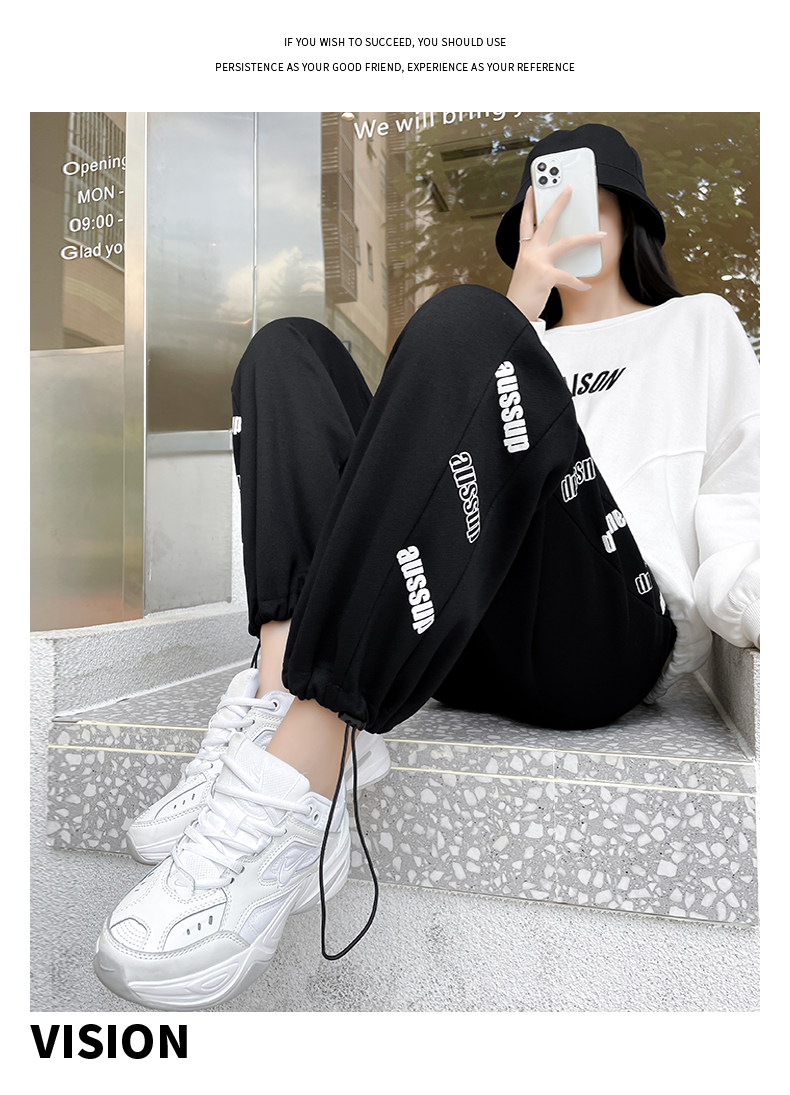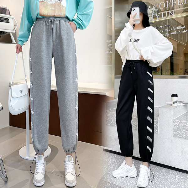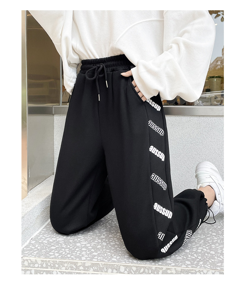 RM22031#涂鸦阔腿卫裤女2023秋季新款韩版宽松腰哈伦萝卜运动裤束脚裤