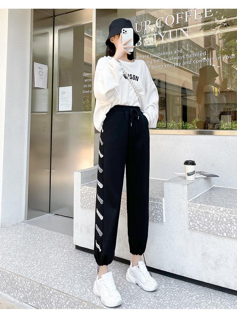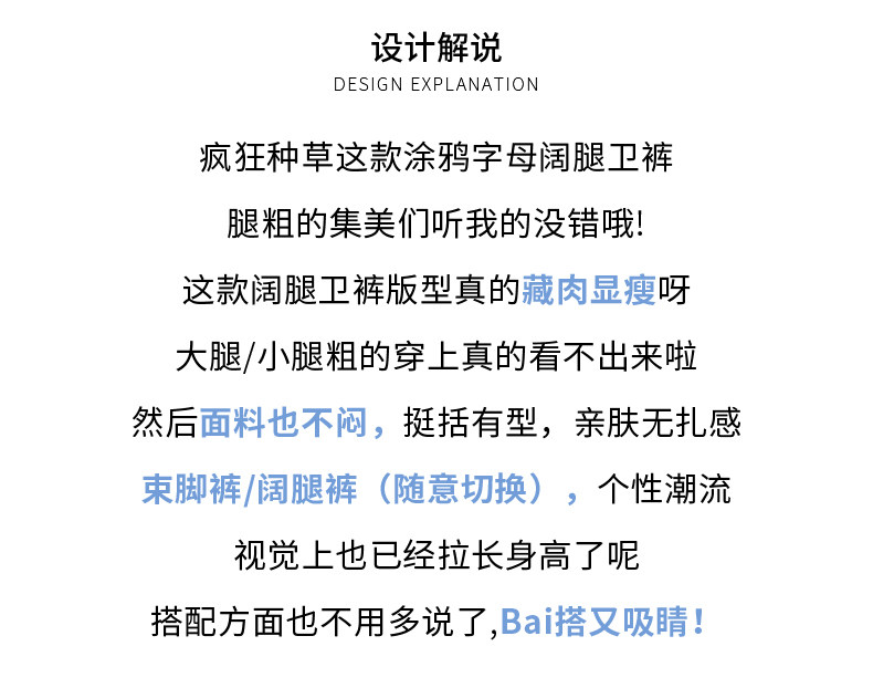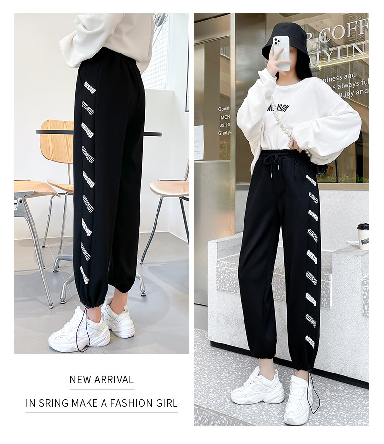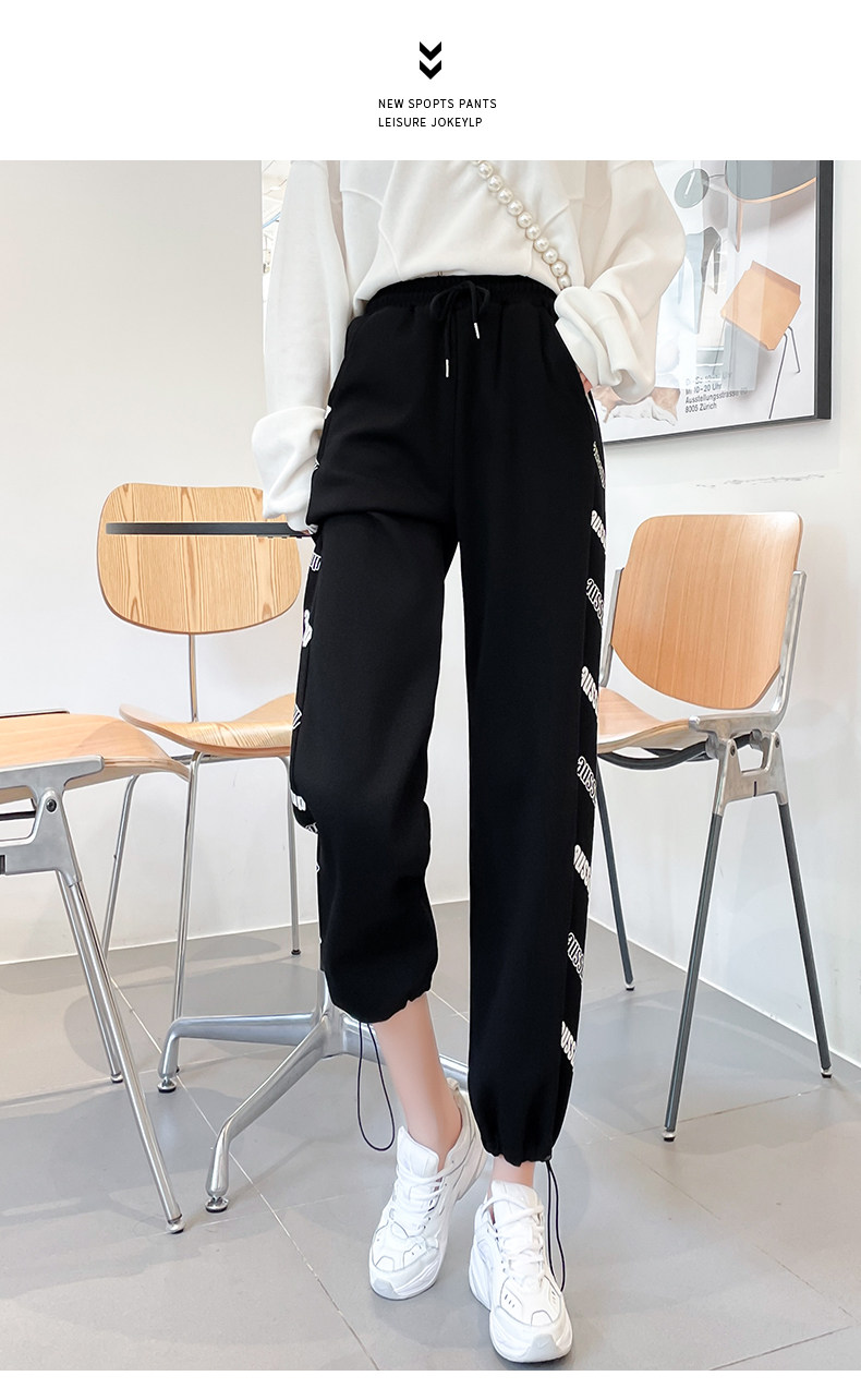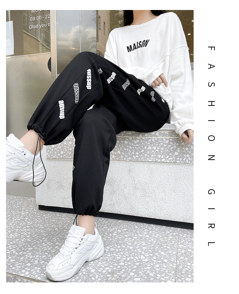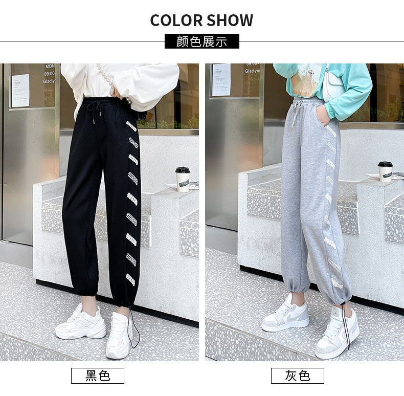 RM22031#涂鸦阔腿卫裤女2023秋季新款韩版宽松腰哈伦萝卜运动裤束脚裤