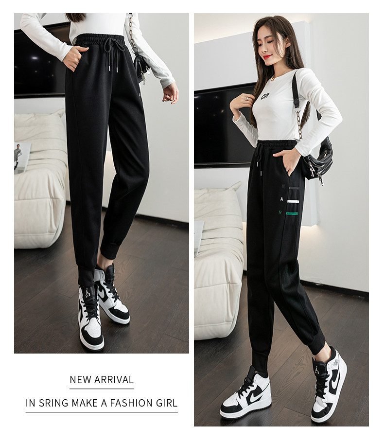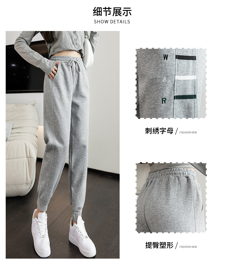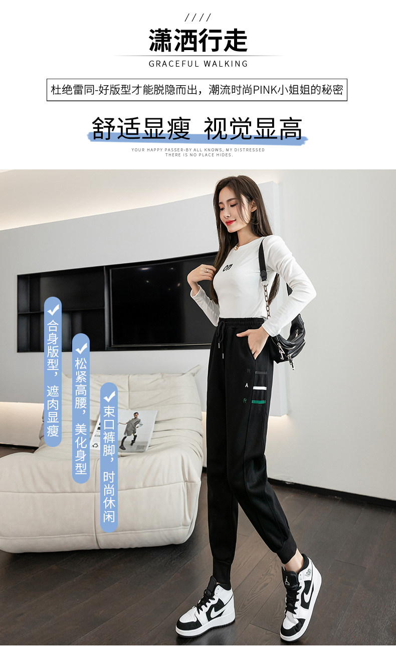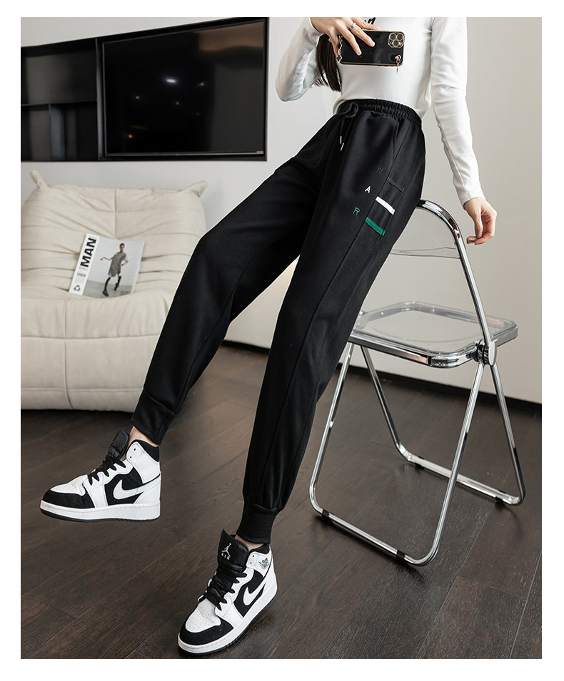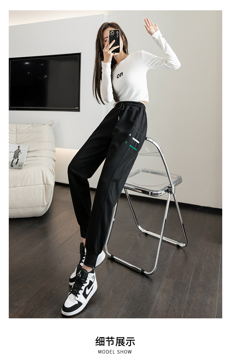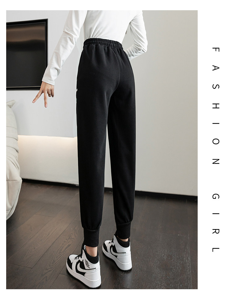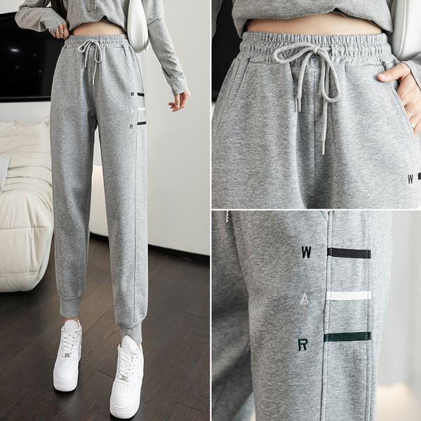 RM22032#刺绣休闲卫裤女2023秋季新款韩版不对称宽松腰哈伦萝卜束脚裤