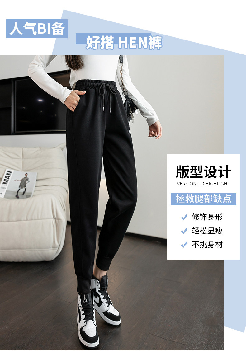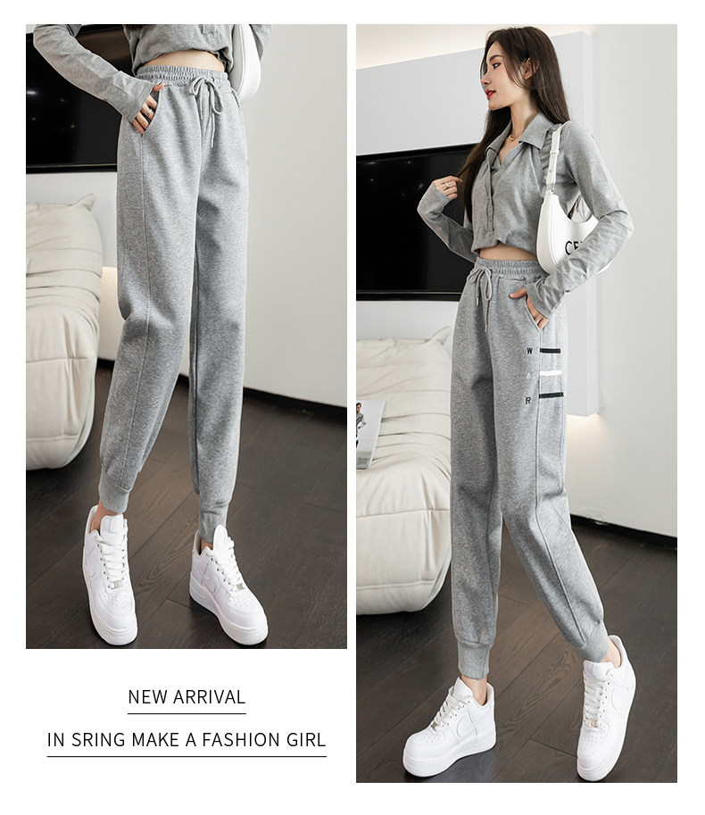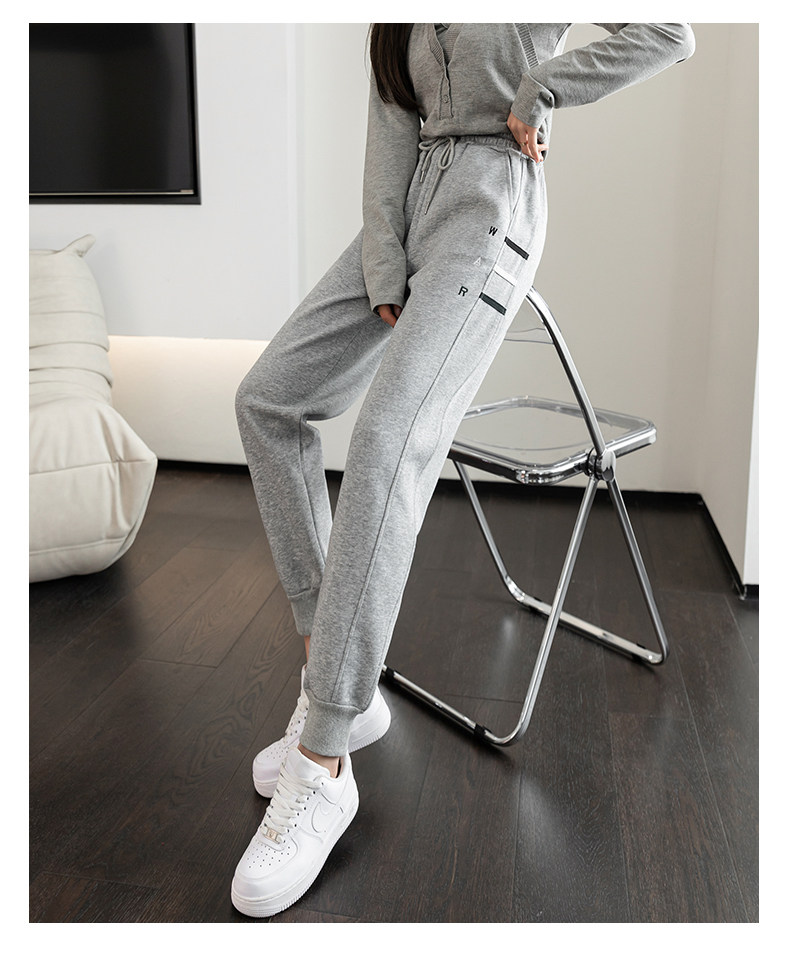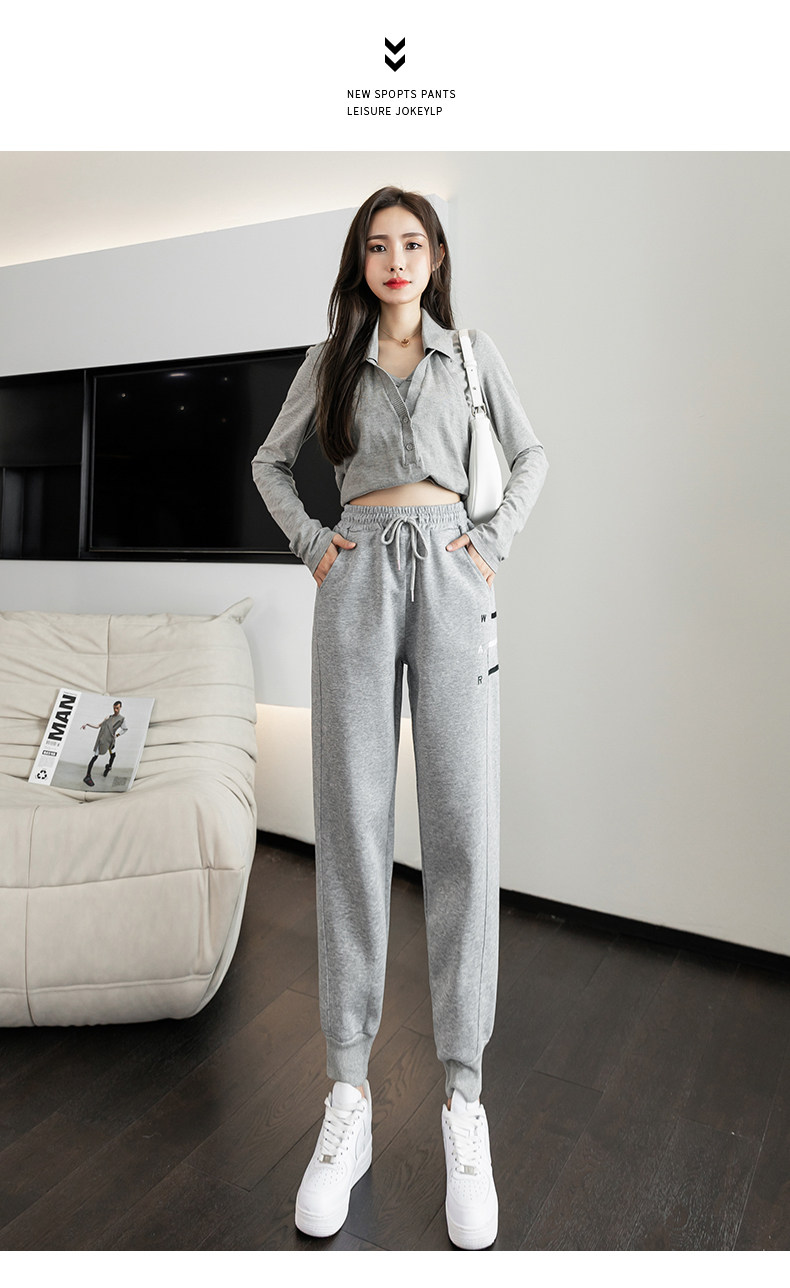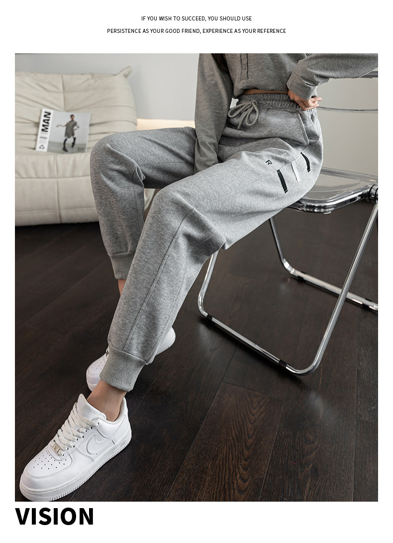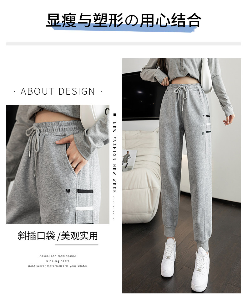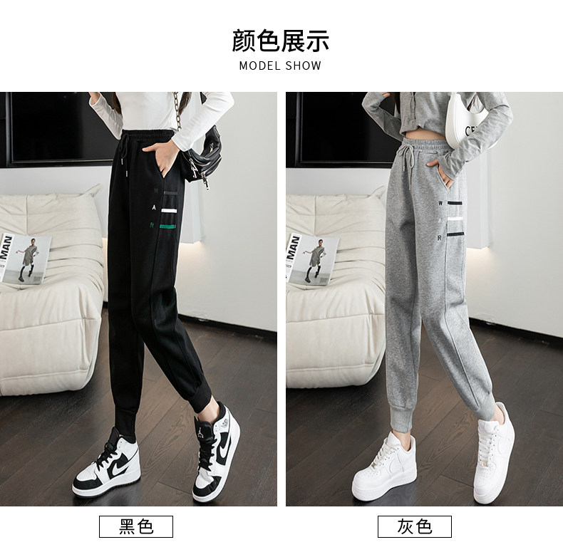 RM22032#刺绣休闲卫裤女2023秋季新款韩版不对称宽松腰哈伦萝卜束脚裤