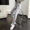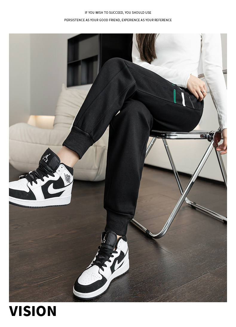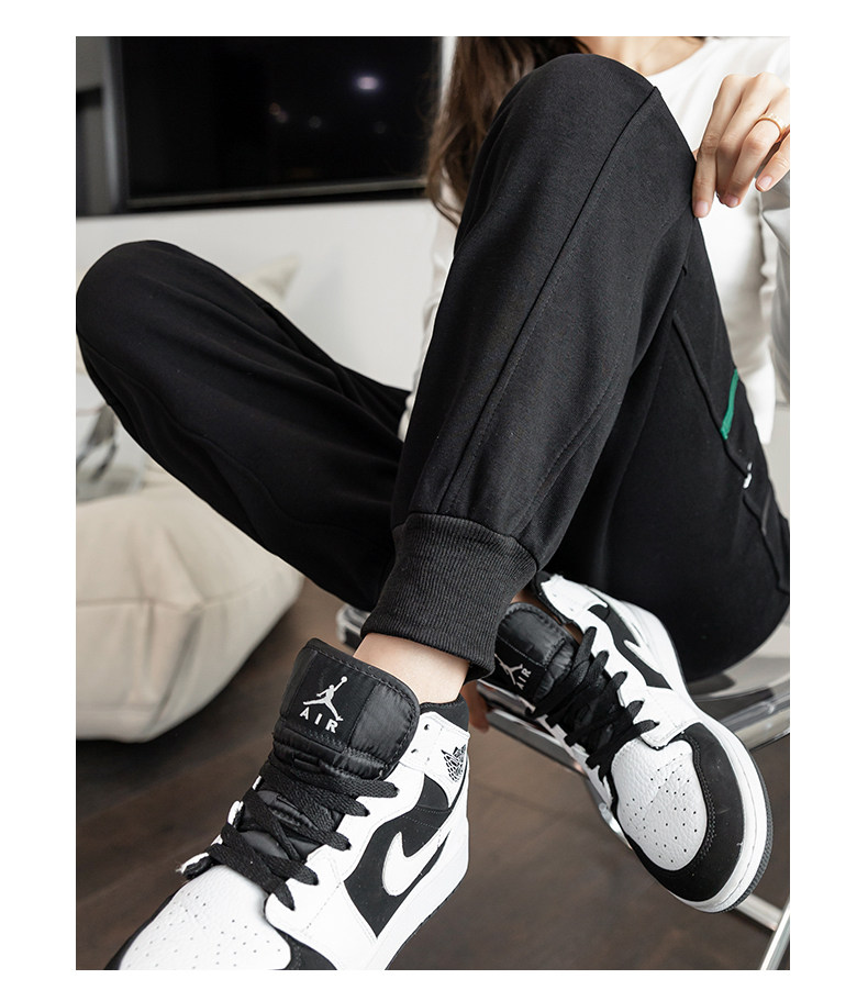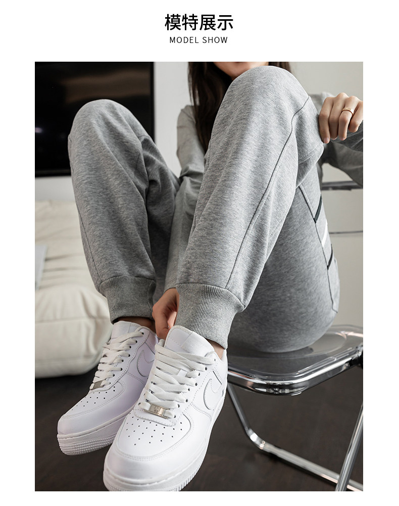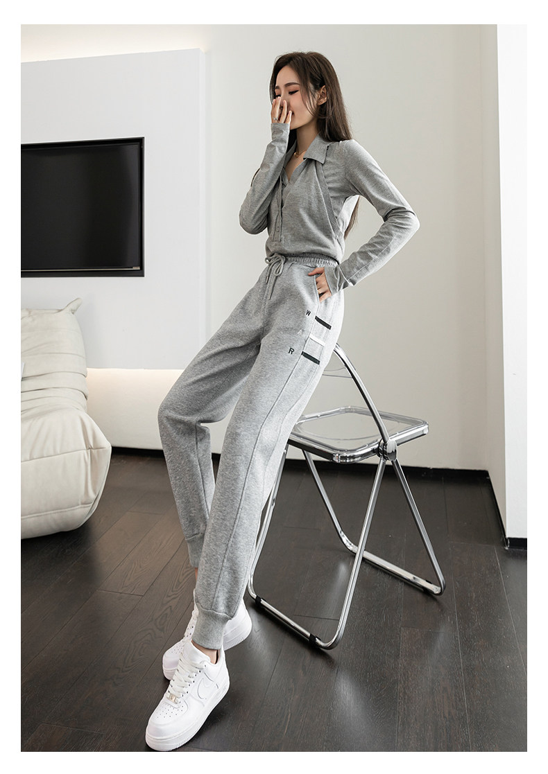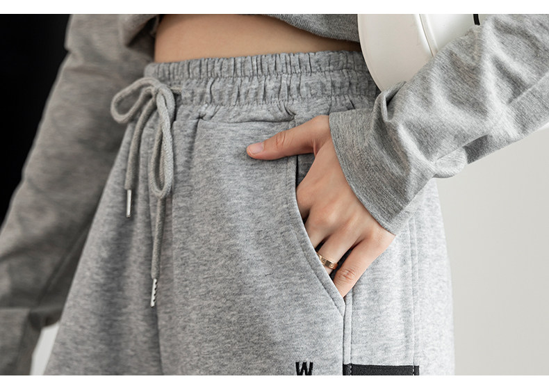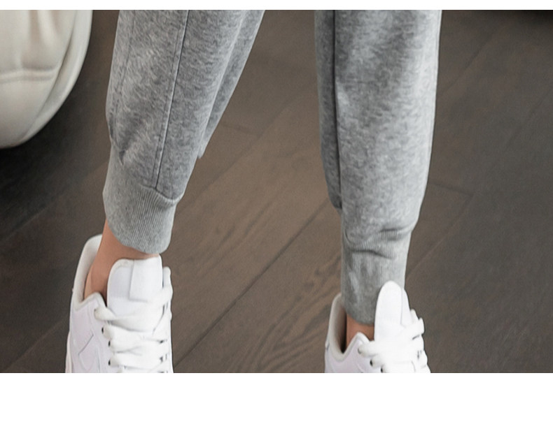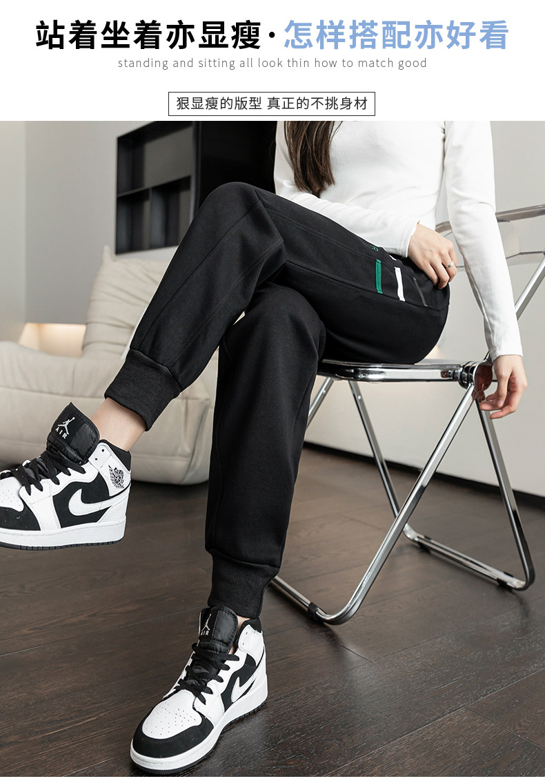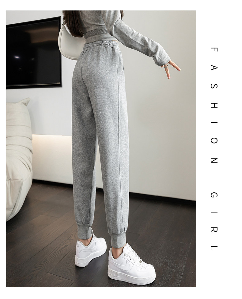 RM22032#刺绣休闲卫裤女2023秋季新款韩版不对称宽松腰哈伦萝卜束脚裤