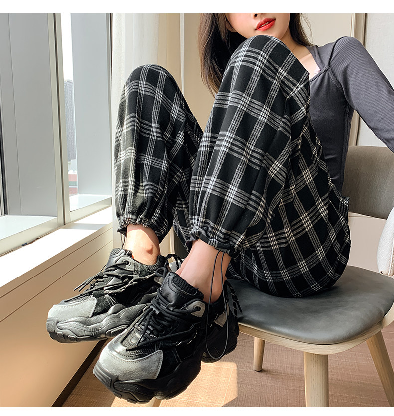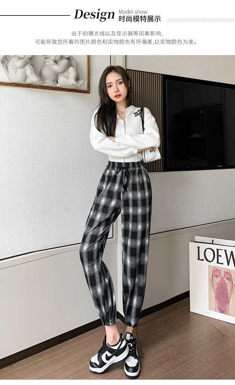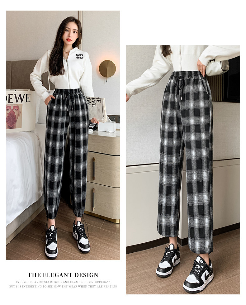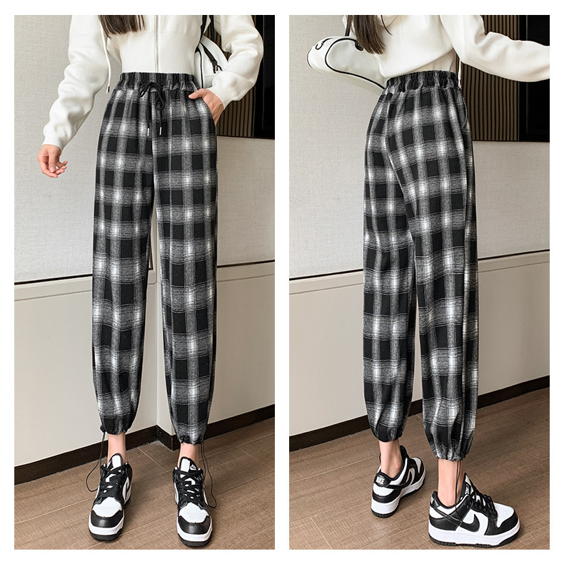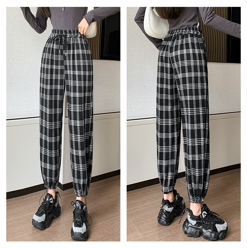 RM22034#宽松腰格子休闲卫裤女2023秋季新款韩版显瘦阔腿裤哈伦束脚裤