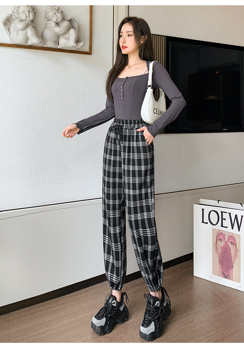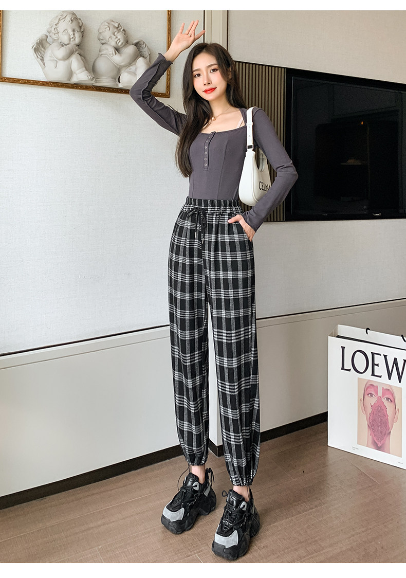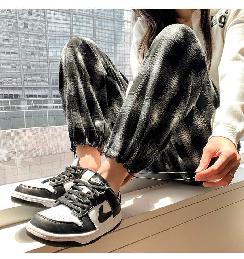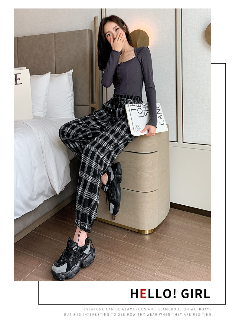 RM22034#宽松腰格子休闲卫裤女2023秋季新款韩版显瘦阔腿裤哈伦束脚裤