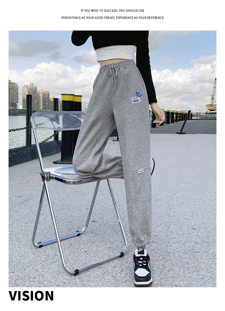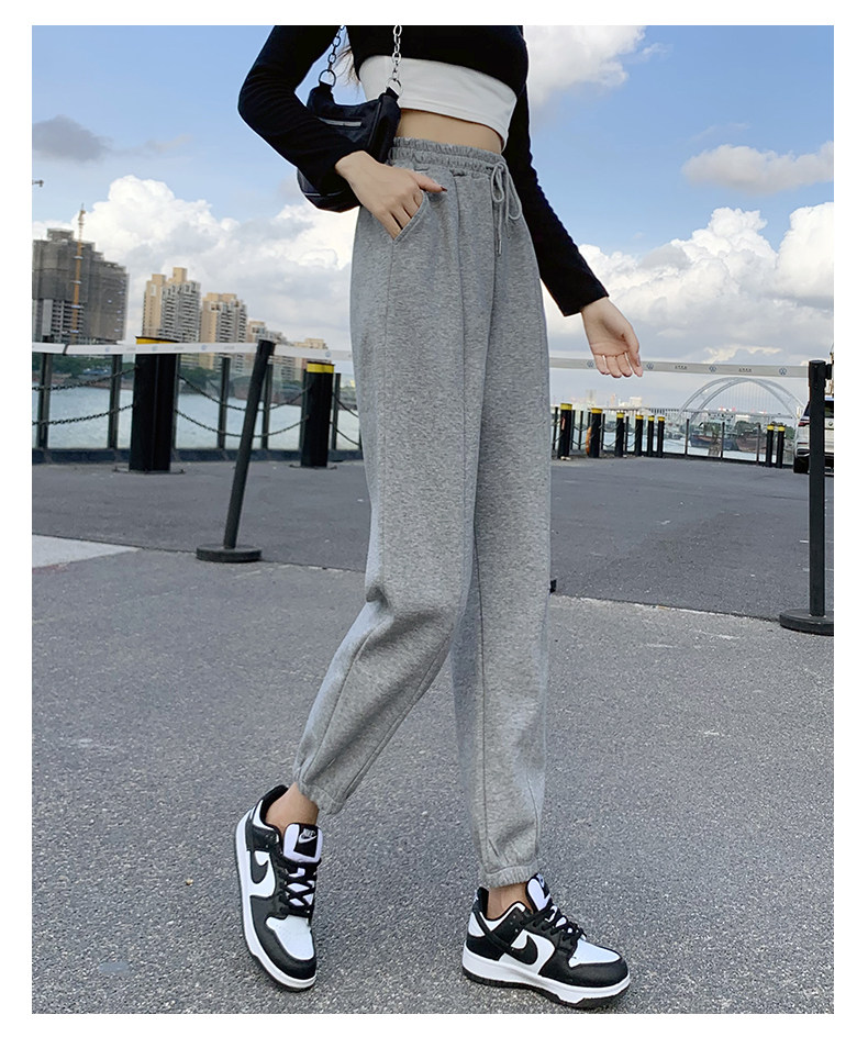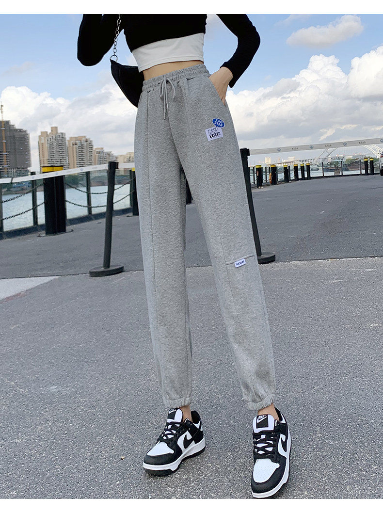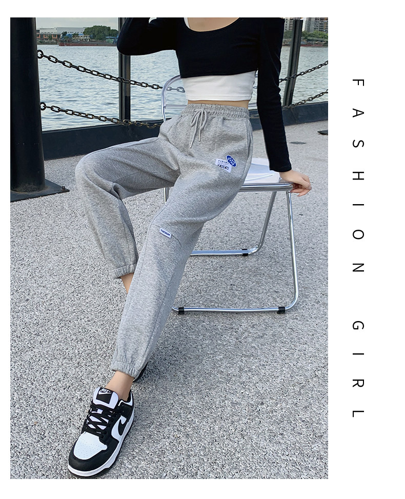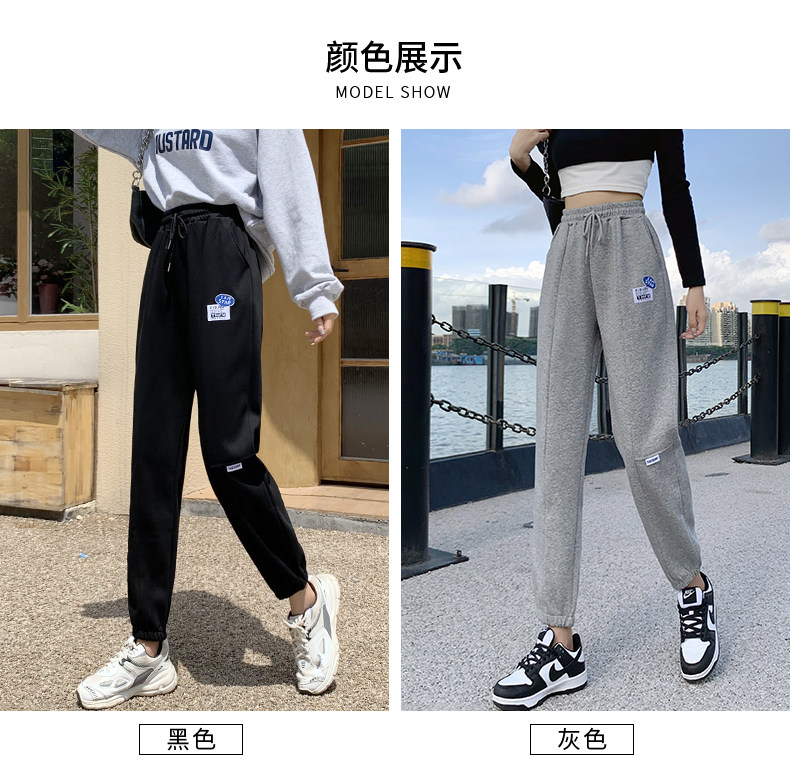 RM22035#高腰休闲卫裤女2023秋季新款韩版灰色宽松腰哈伦运动裤束脚裤
