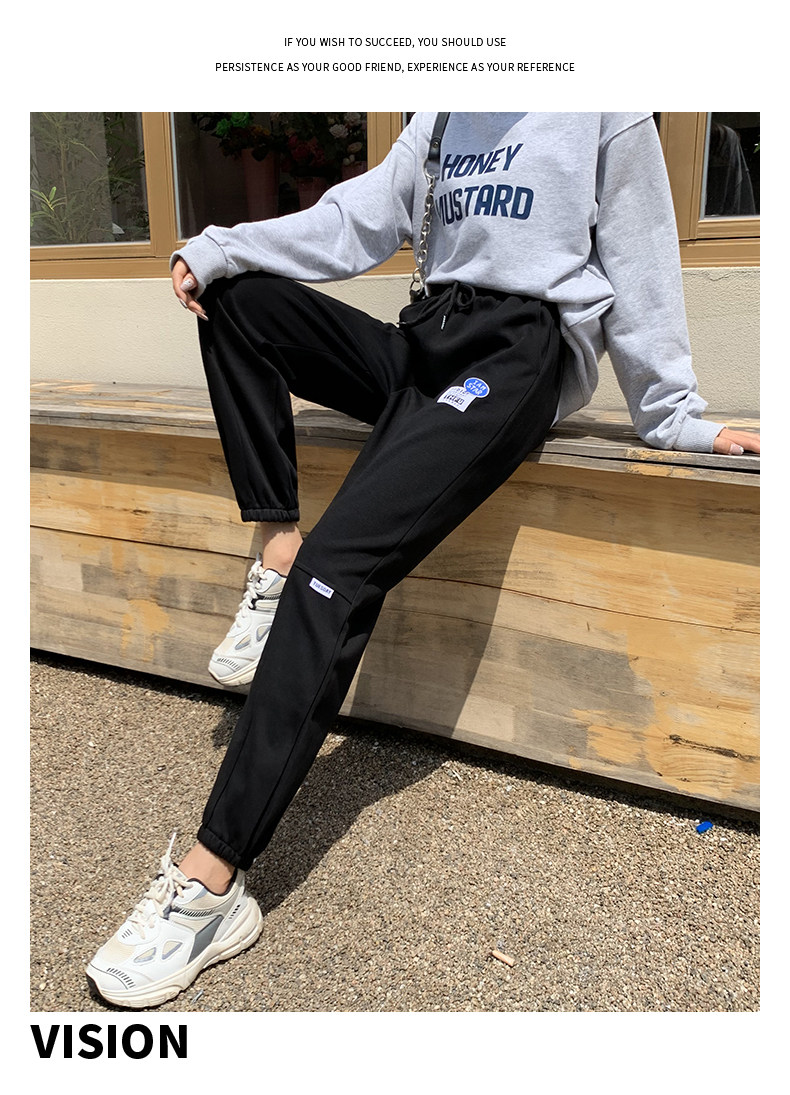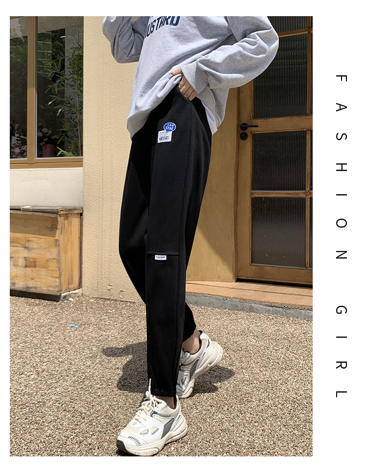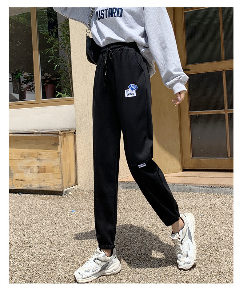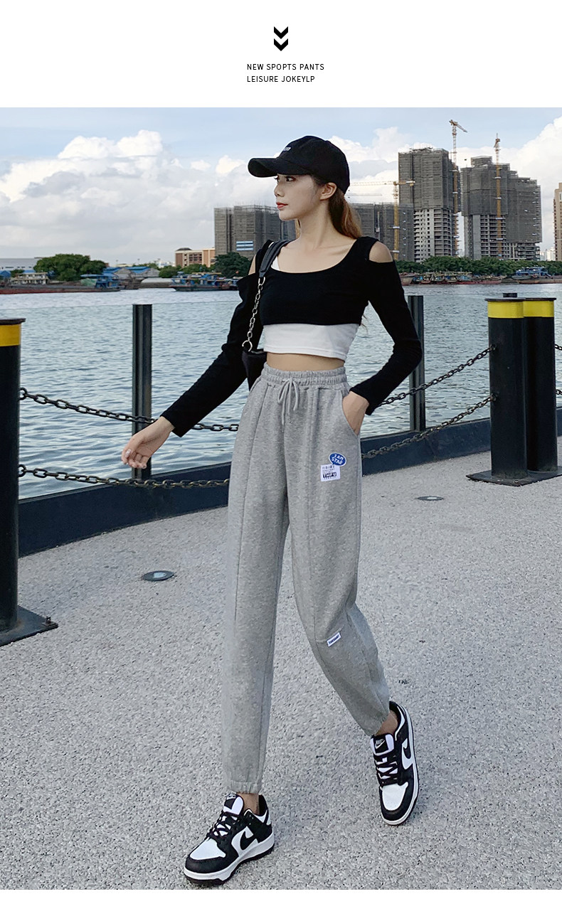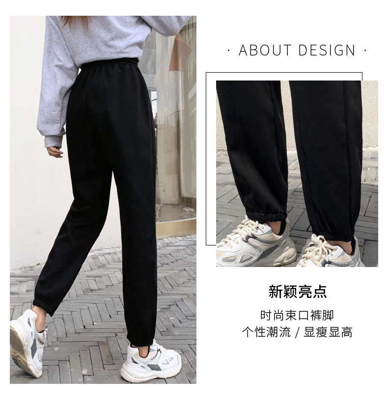 RM22035#高腰休闲卫裤女2023秋季新款韩版灰色宽松腰哈伦运动裤束脚裤