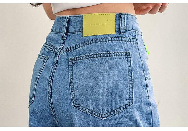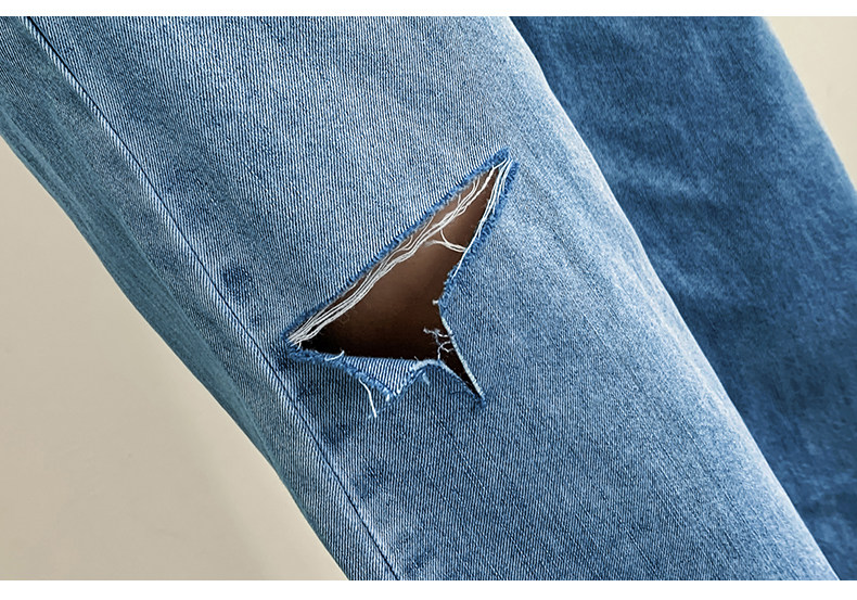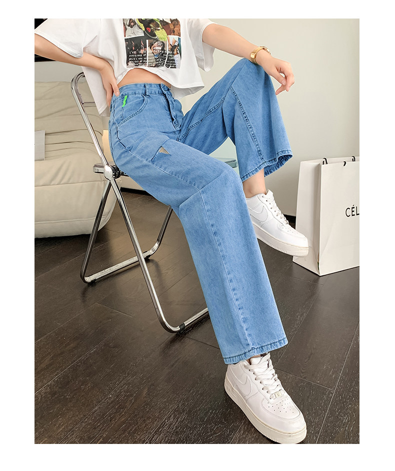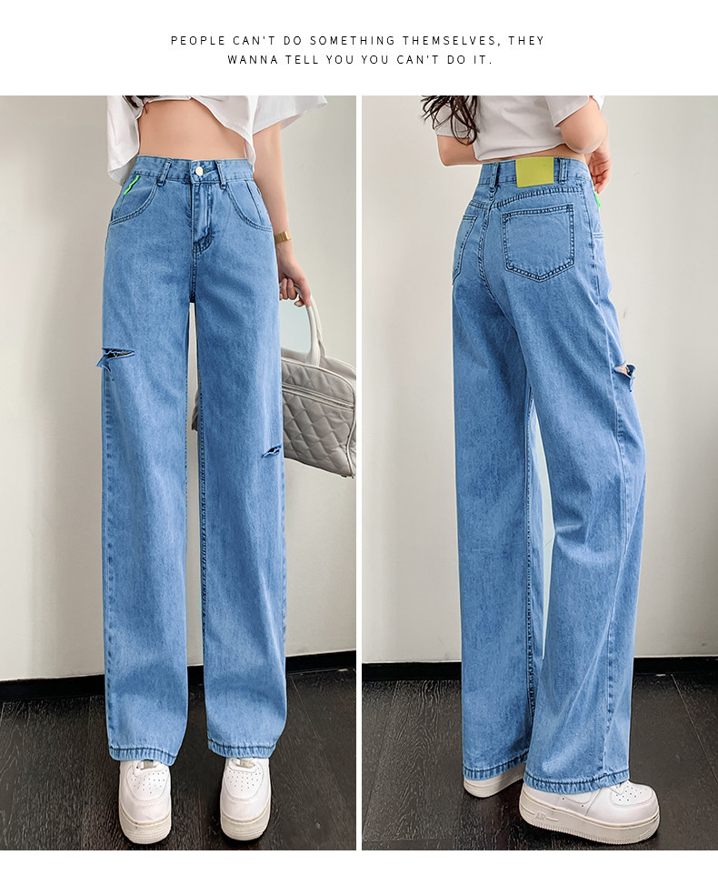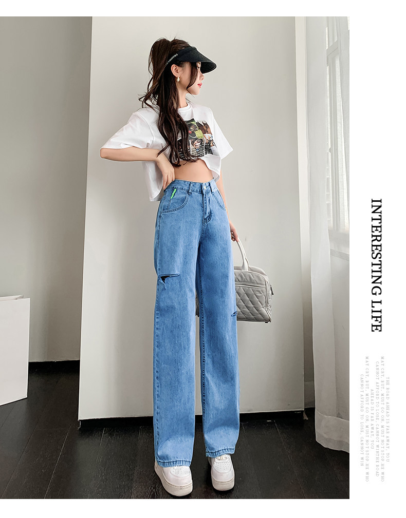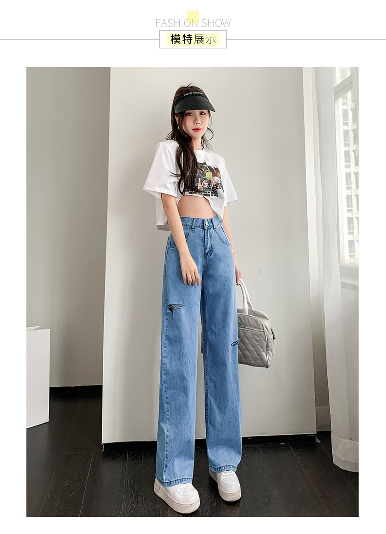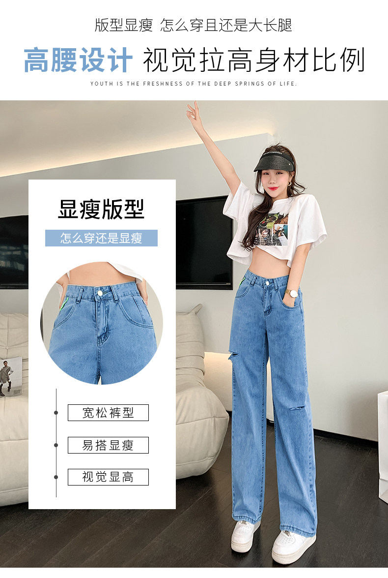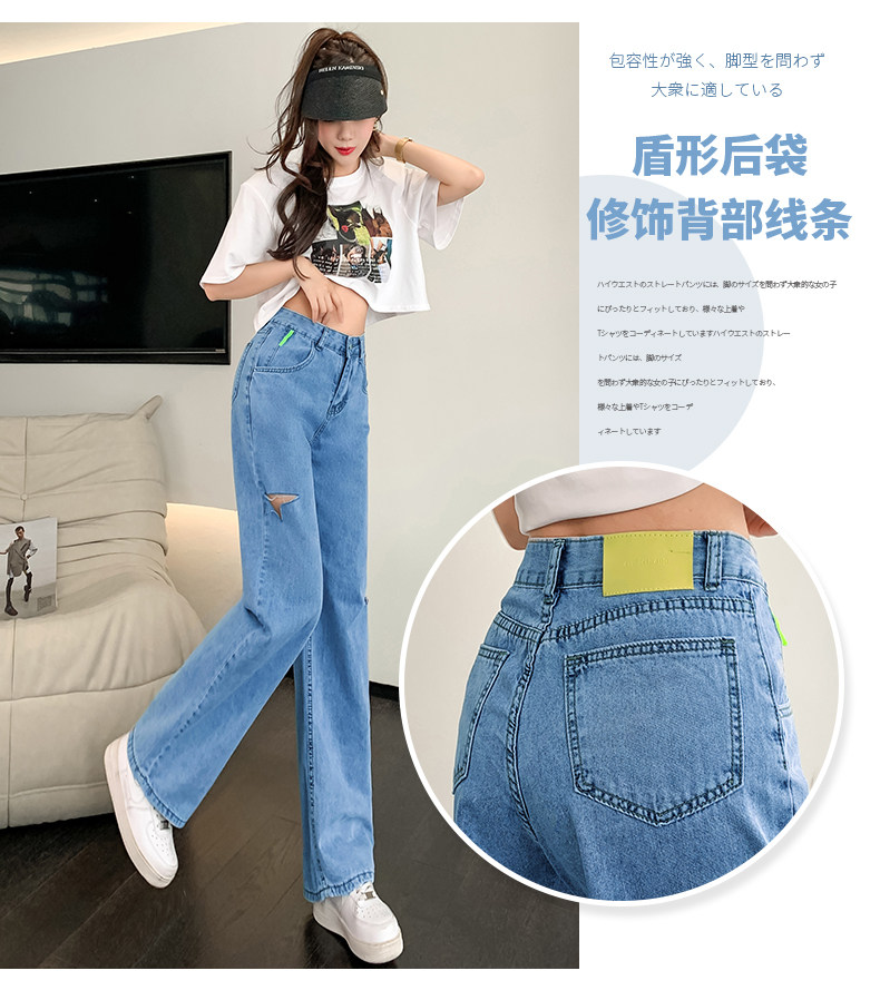 RM22041#高腰破洞老爹牛仔裤女2023秋韩版显瘦透气宽松哈伦直筒阔腿裤