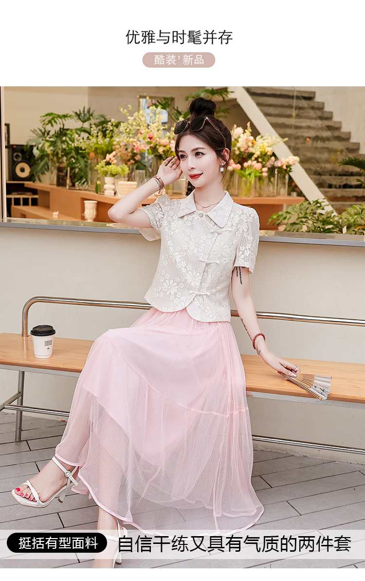 RM22077#新中式国风盘扣短款衬衫套装女夏2023新款复古网纱裙两件套