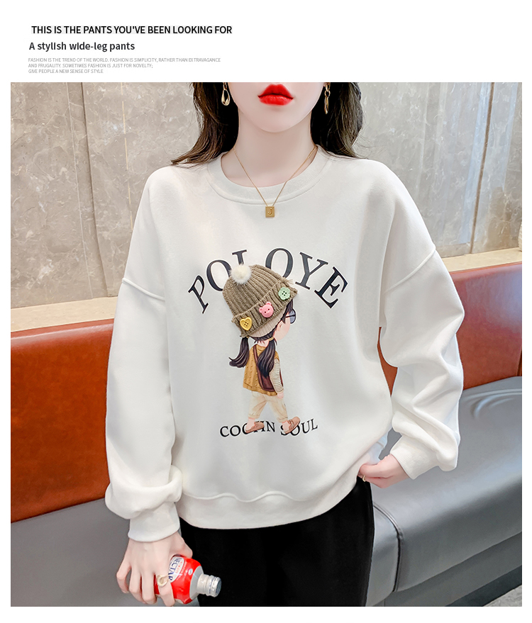 RM22106#圆领套头长袖卫衣女2023秋装新款美式复古休闲卡通印花宽松上衣