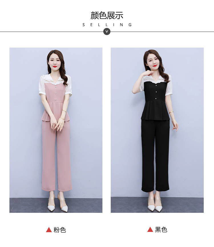 RY1743#时尚套装女夏季新款女装套裤洋气短袖上衣修身显瘦两件套外搭