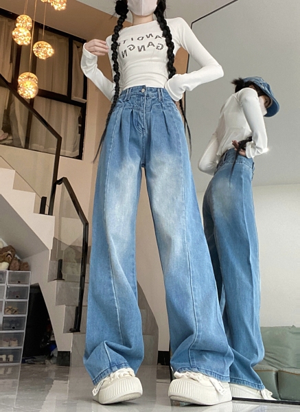RM22234#做旧复古直筒牛仔裤设计感简约高腰显瘦垂感阔腿拖地裤