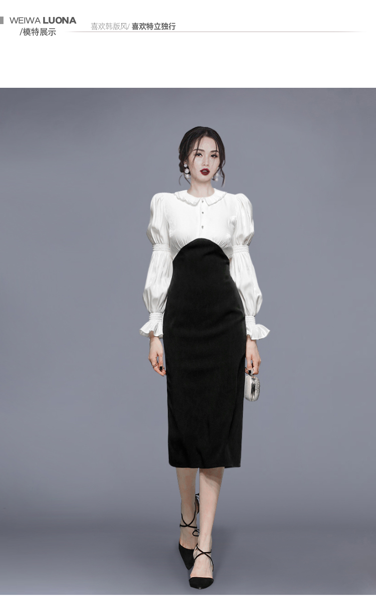 RM22333#韩版新品轻奢气质职业修身圆领优雅撞色连衣裙