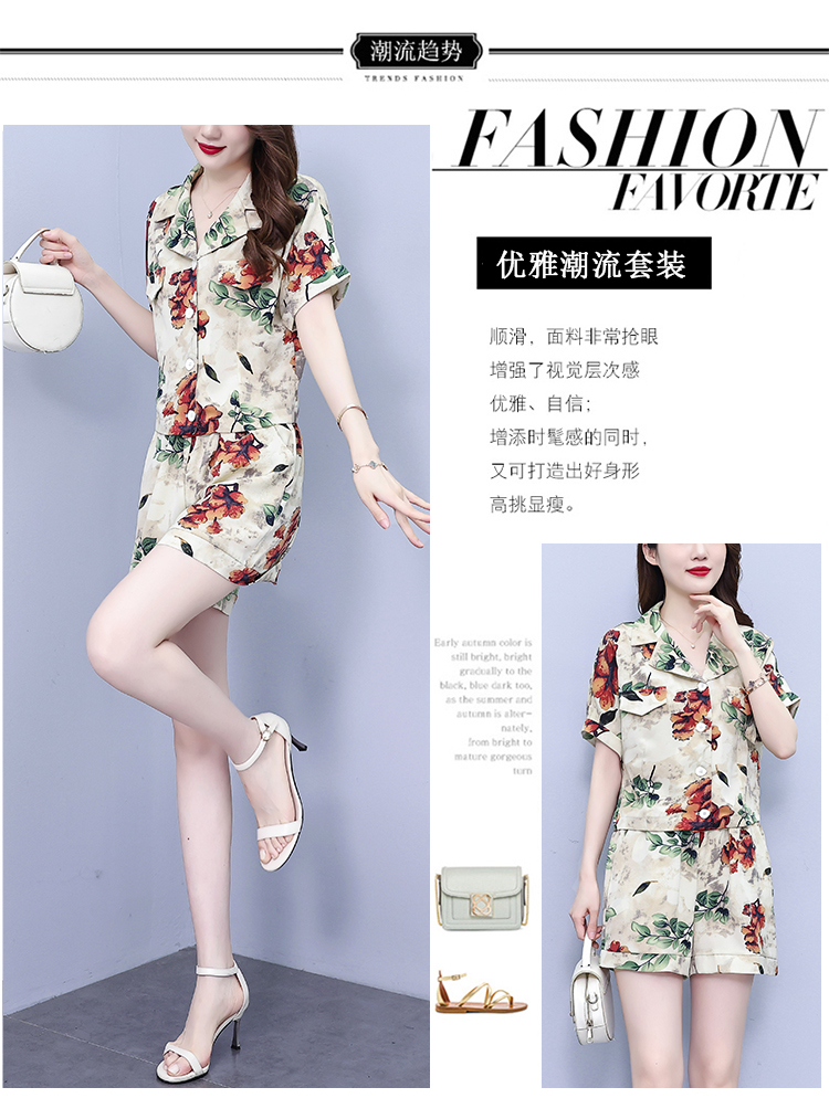 RM22441#夏季新款时尚复古风胖MM气质显瘦上衣+短裤大码两件套