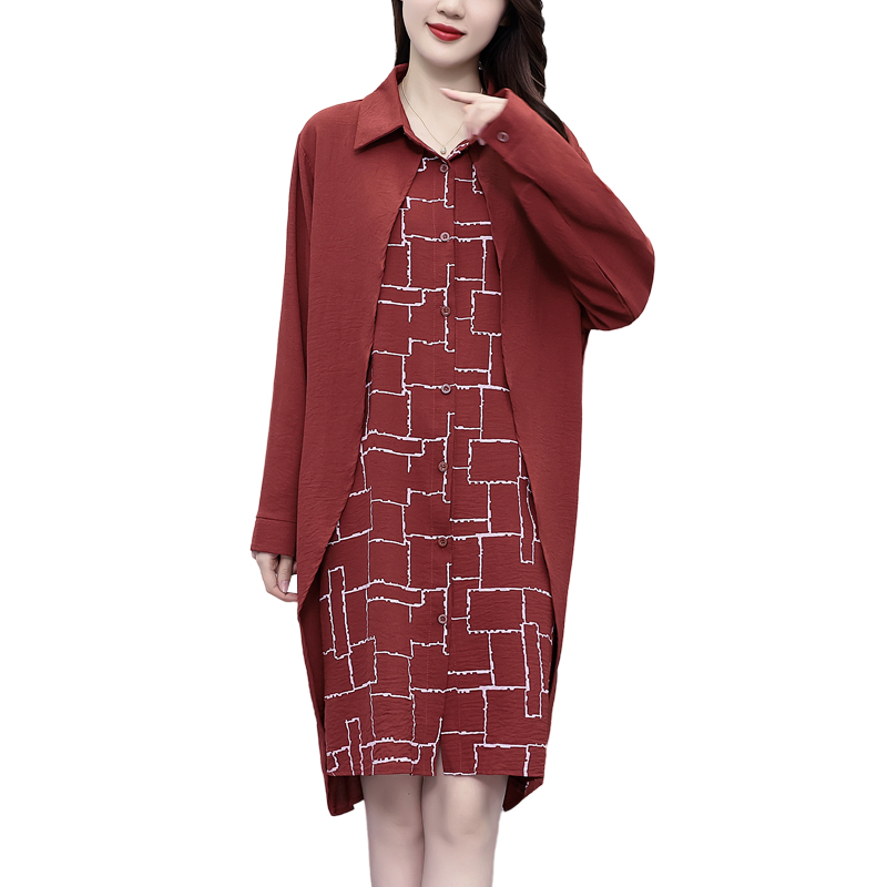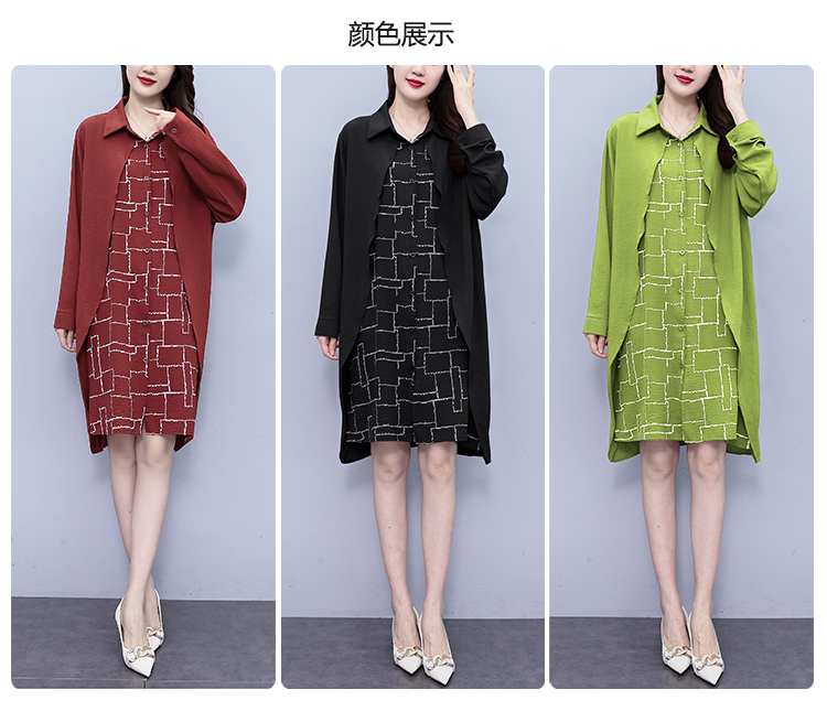 RM22480#大码女装胖妹妹200斤宽松印花连衣裙2023秋新款韩版气质中长裙子