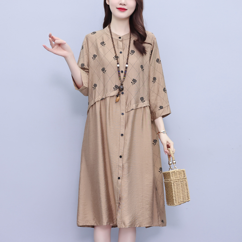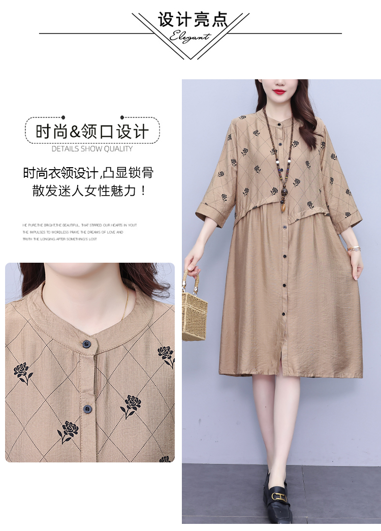 RM22482#新款秋装大码中老年拼接印花裙子时尚妈妈装宽松遮肚连衣裙女