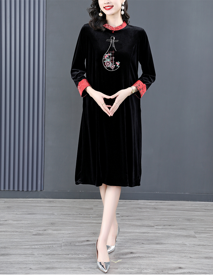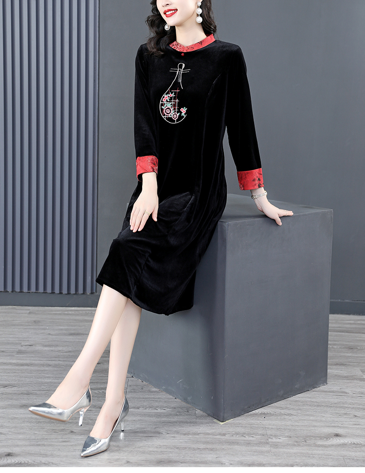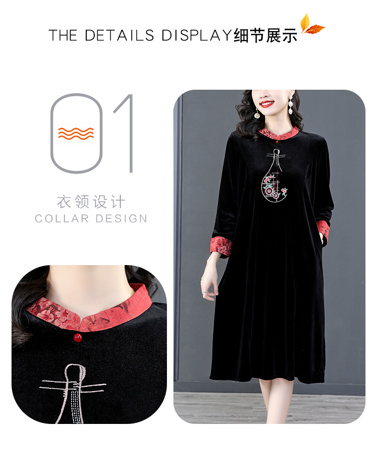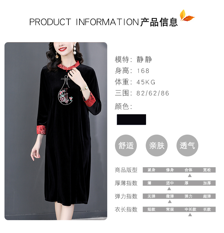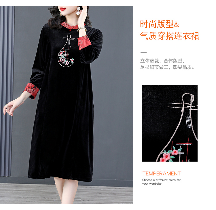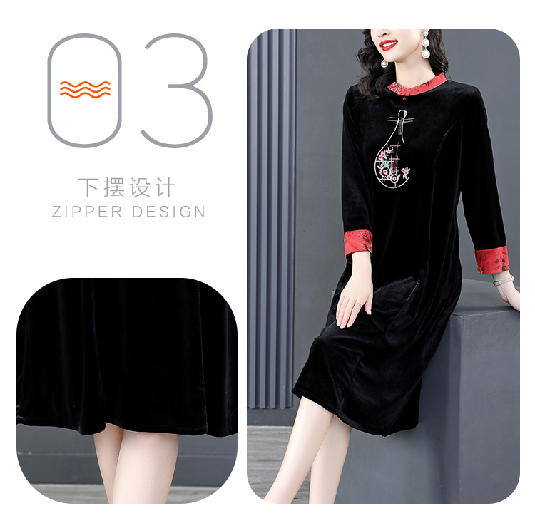 RM22588#桑蚕丝绒连衣裙国风版复古时尚改良旗袍优雅高端妈妈裙子