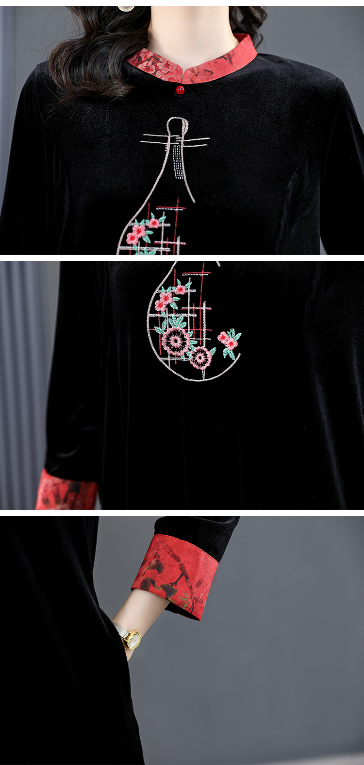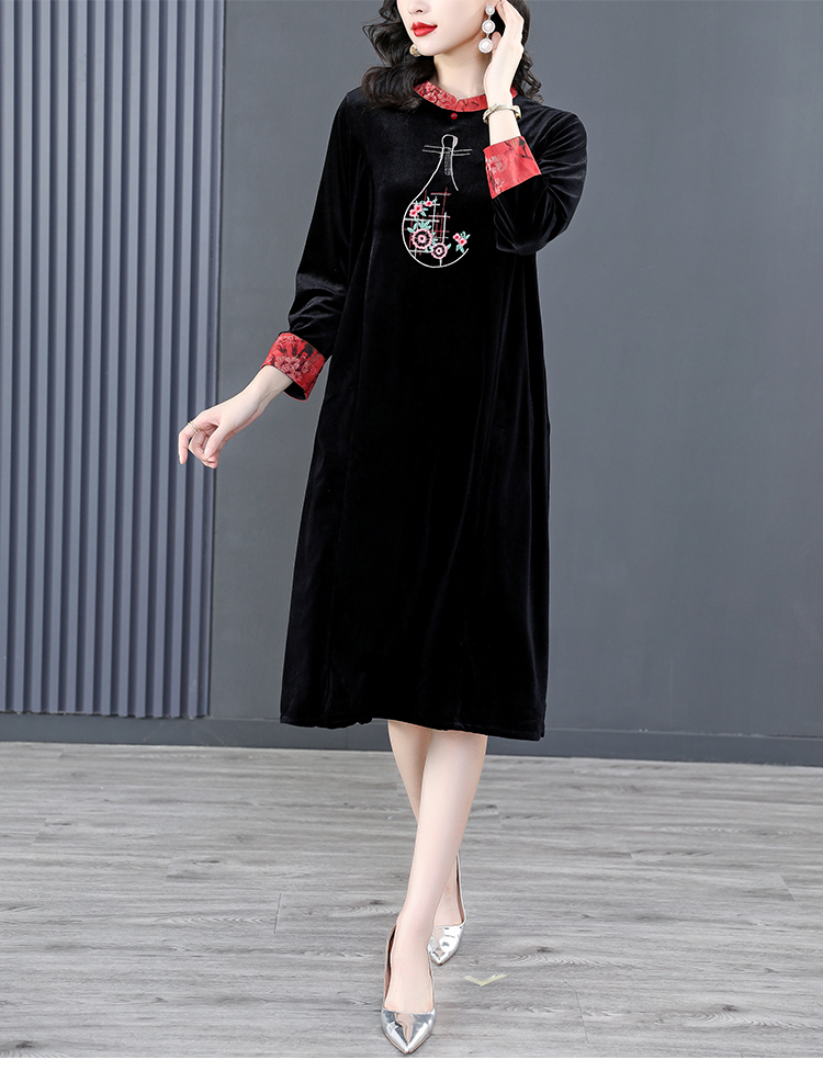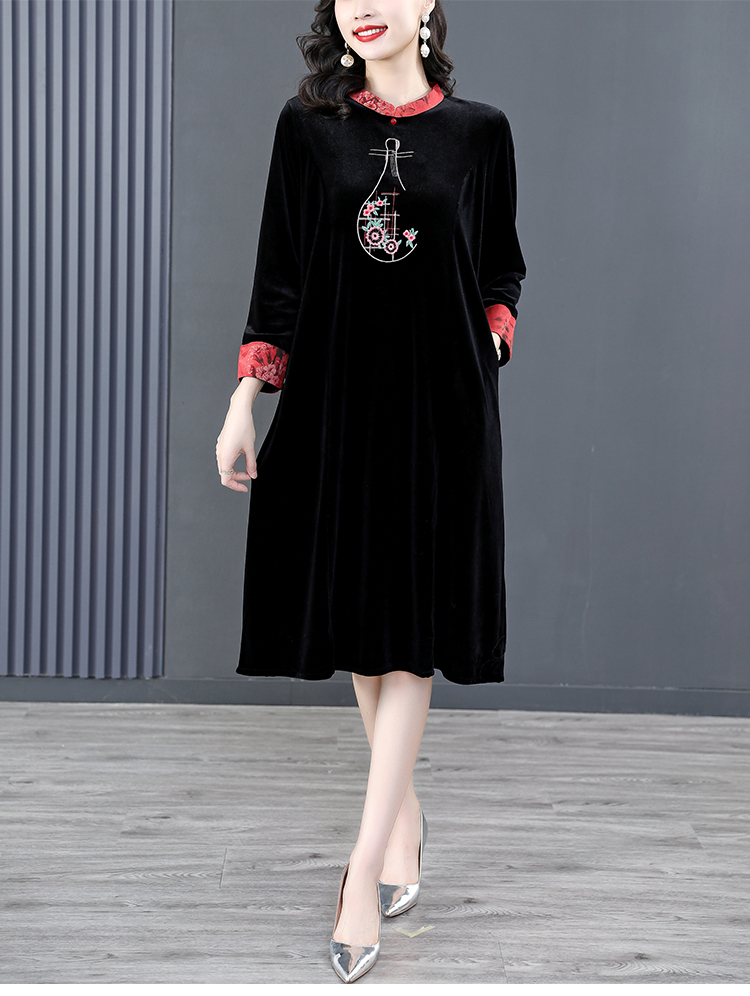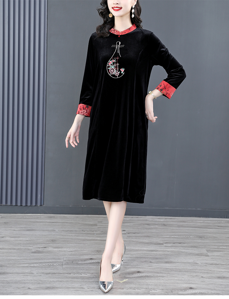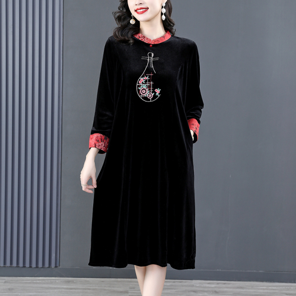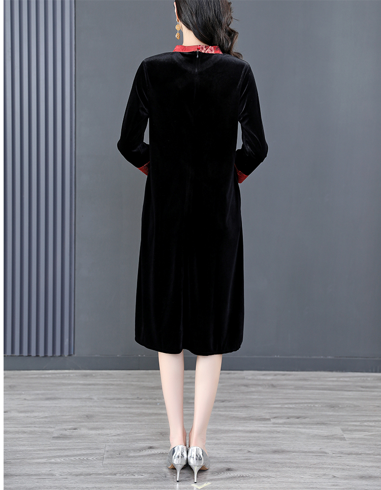 RM22588#桑蚕丝绒连衣裙国风版复古时尚改良旗袍优雅高端妈妈裙子