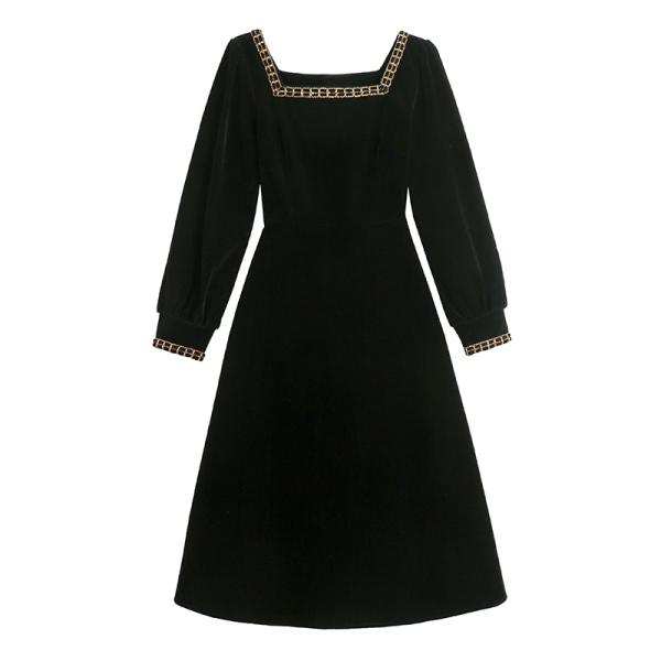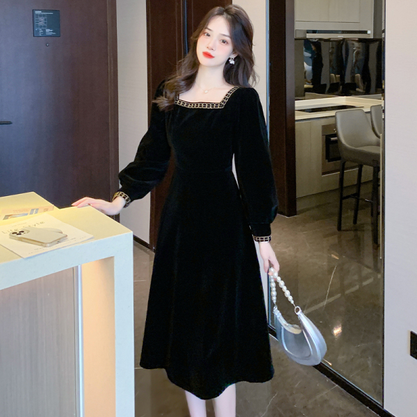 RM22598#大码法式赫本风金丝绒连衣裙女秋冬胖妹妹显瘦遮肚子复古长裙