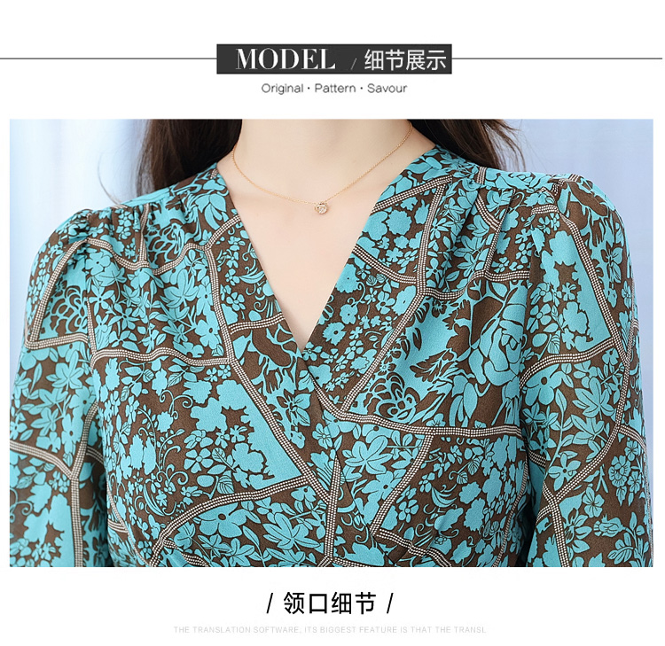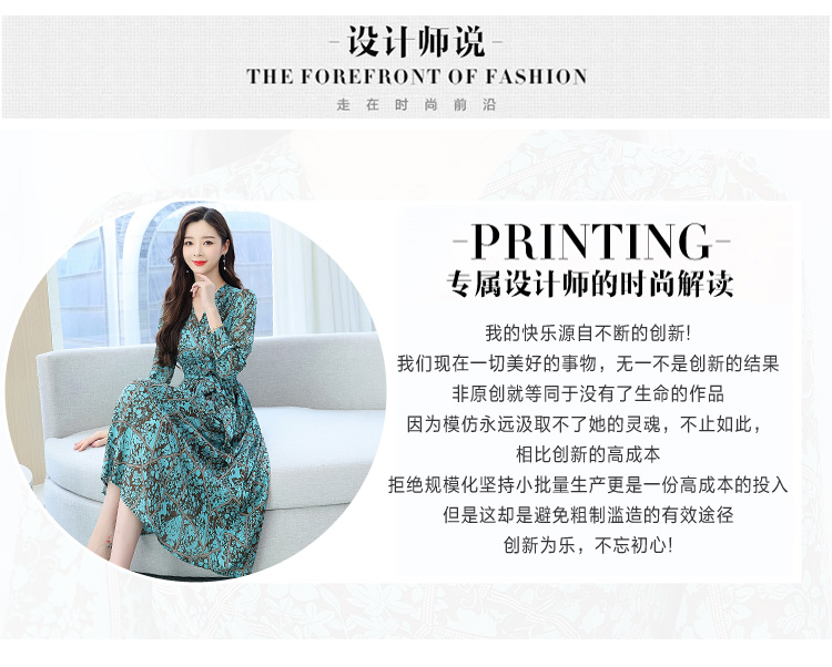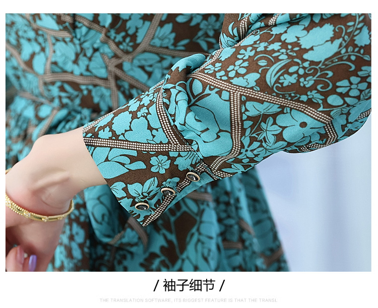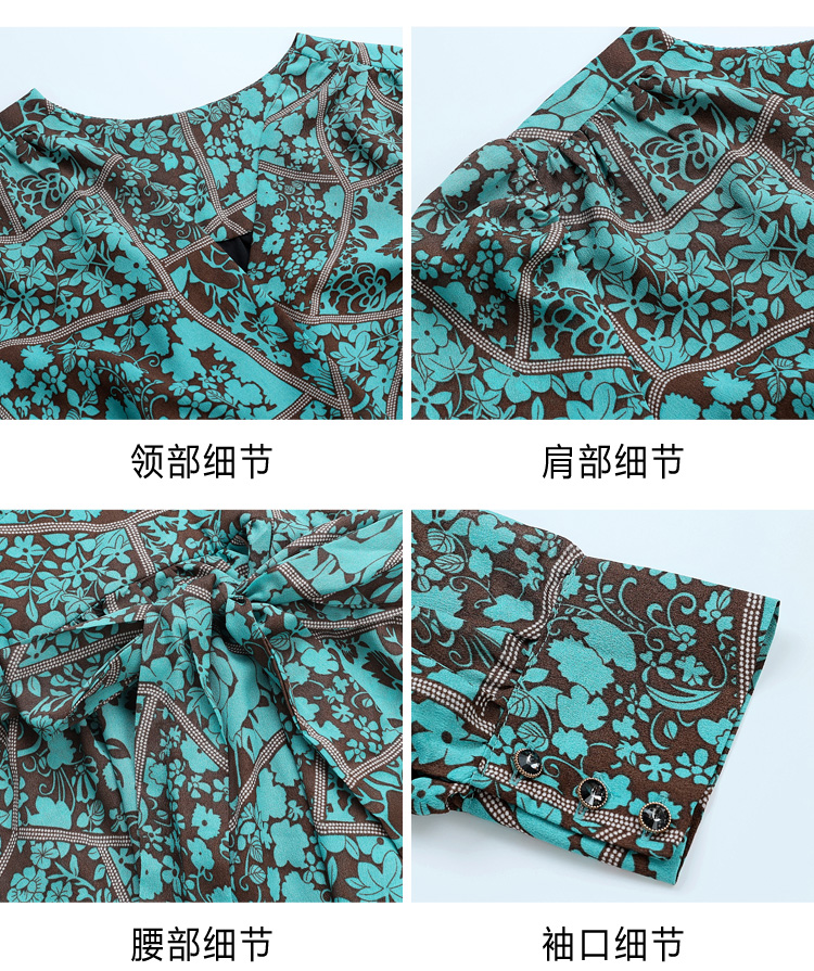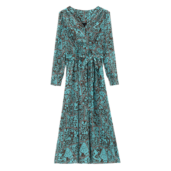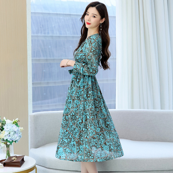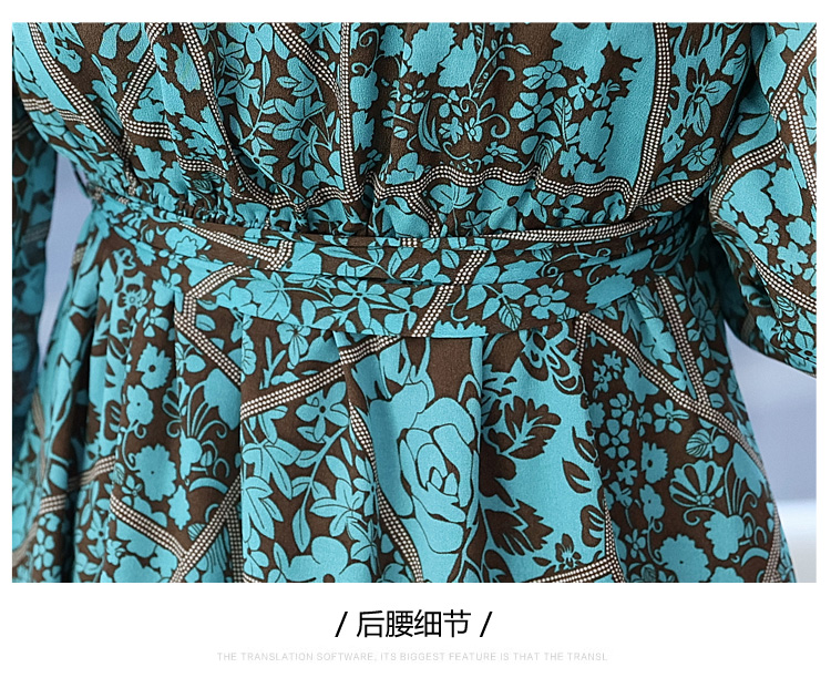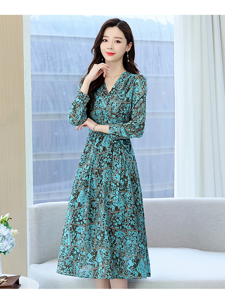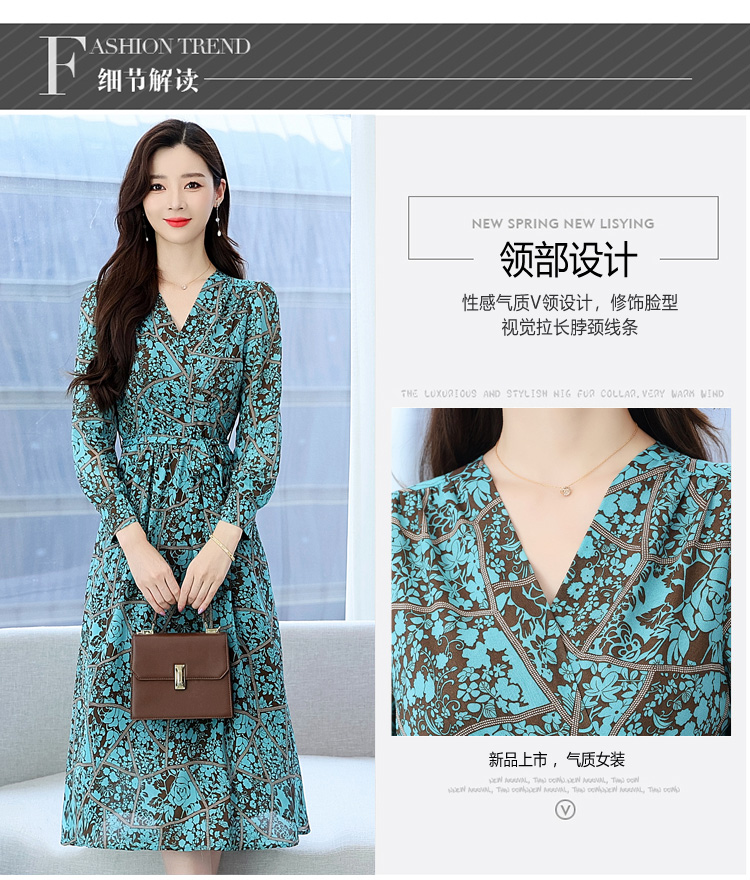 RM22605#碎花长袖连衣裙女春秋新款法式裹身长款桔梗裙收腰雪纺长裙