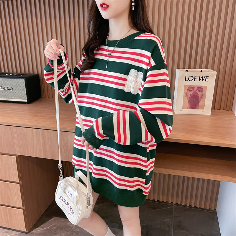 RM22626#纯棉莱德棉 风条纹卫衣复古套头撞色长袖T恤上衣