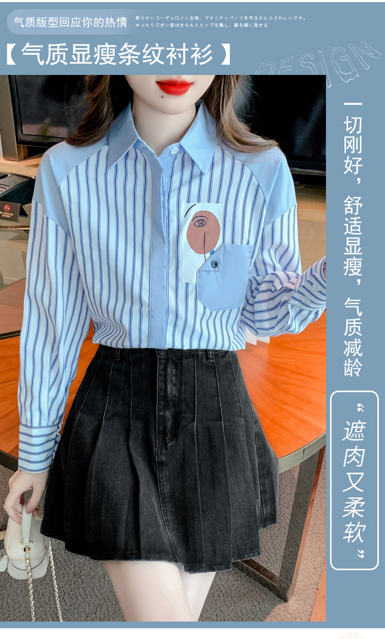 RM22657#蓝色条纹衬衫女春秋款设计感小众法式宽松长袖衬衣秋季上衣女新款