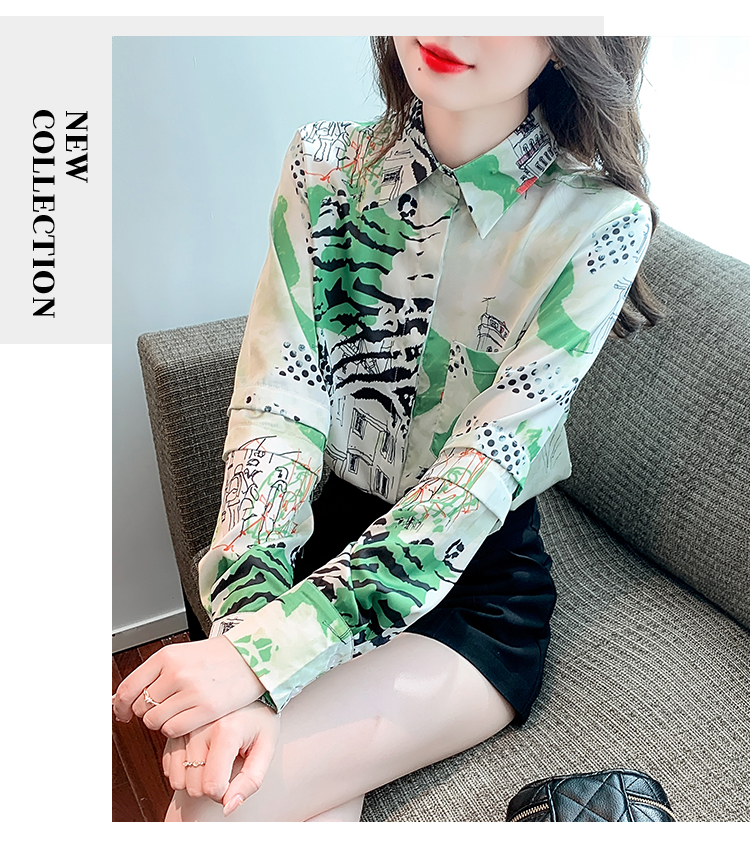 RM22667#新款时尚个性印花真丝衬衫设计感别致丝缎垂感衬衣