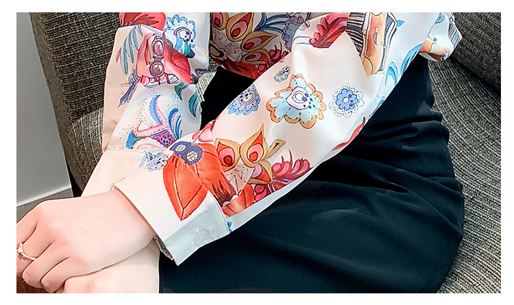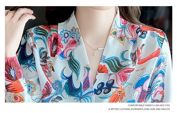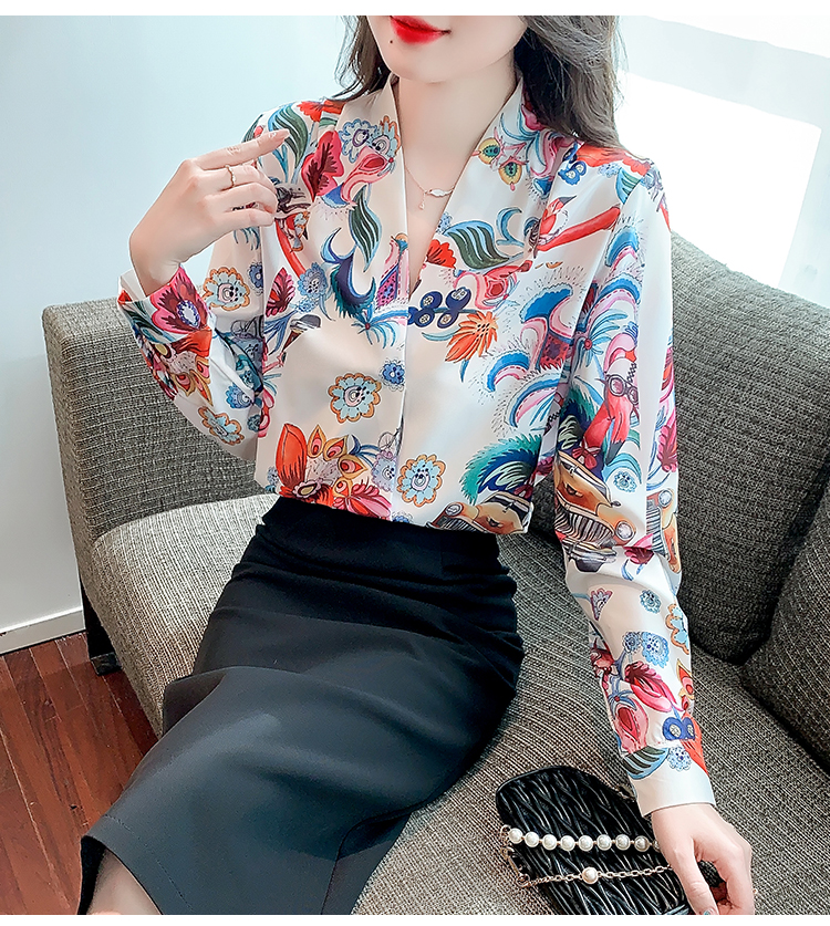 RM22668#新款宽松v 领洋气上衣桑蚕丝衬衣欧洲站真丝印花衬衫