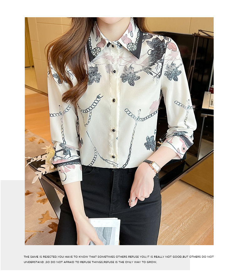 RM22673#新款高端气质定位印花长袖优雅精致小香风真丝上衣
