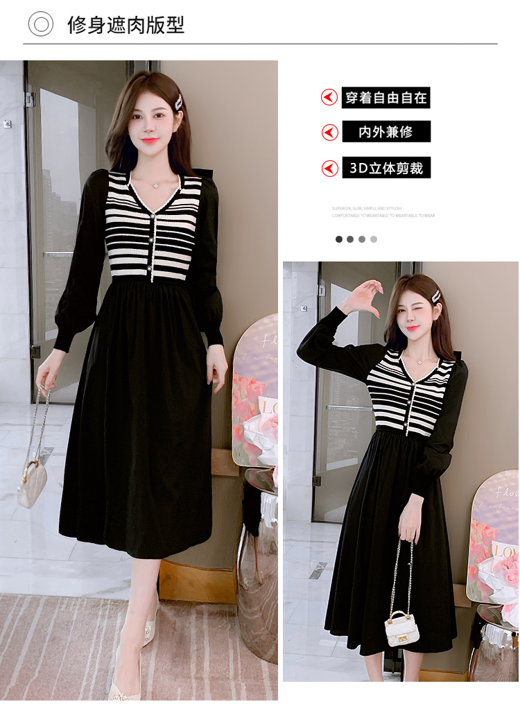 RM22806#毛衣连衣裙甜美超修身长袖套头中长裙淑女