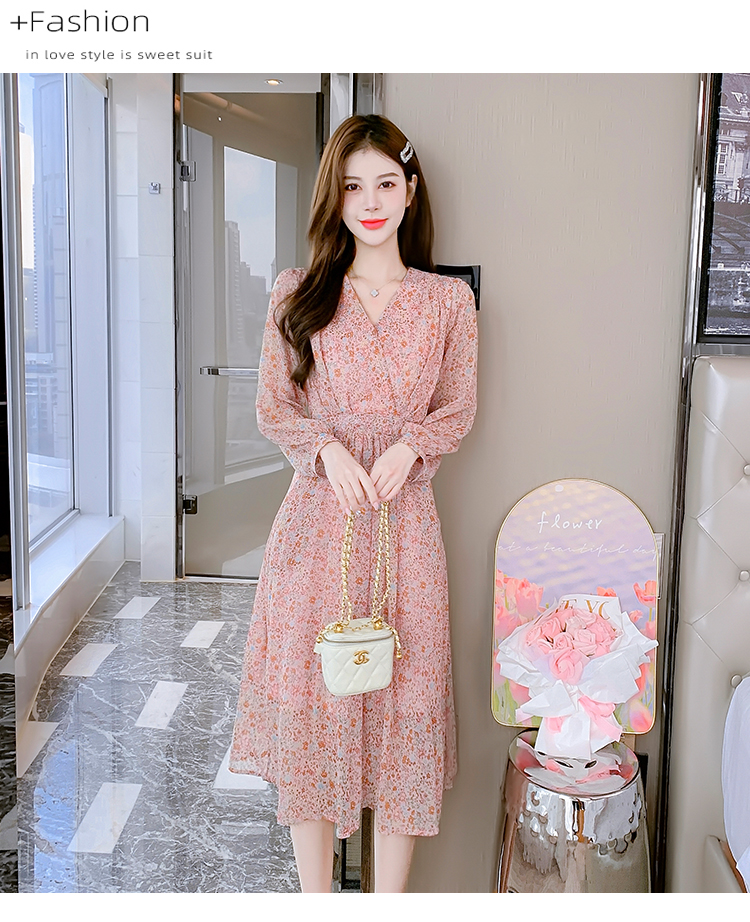RM22813#新款温柔风长裙盐系穿搭轻熟茶歇法式小香风碎花连衣裙