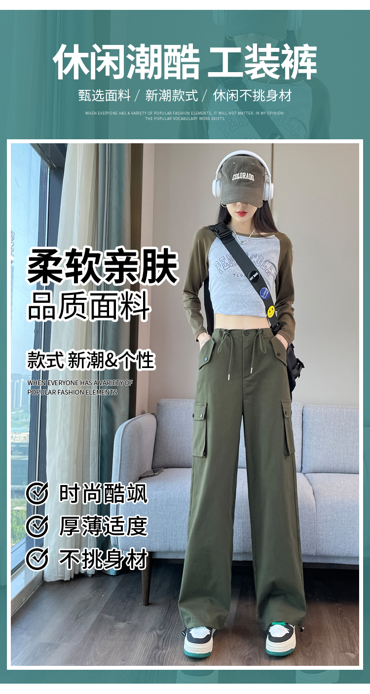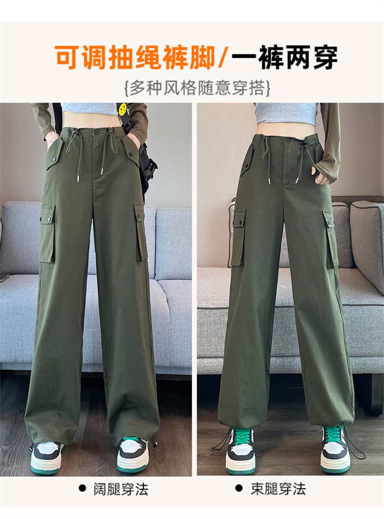 RM22872#美式工装裤女2023秋季新款高腰阔腿束脚两穿潮酷运动裤