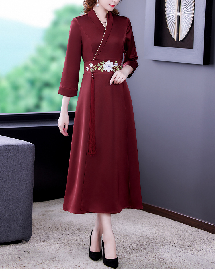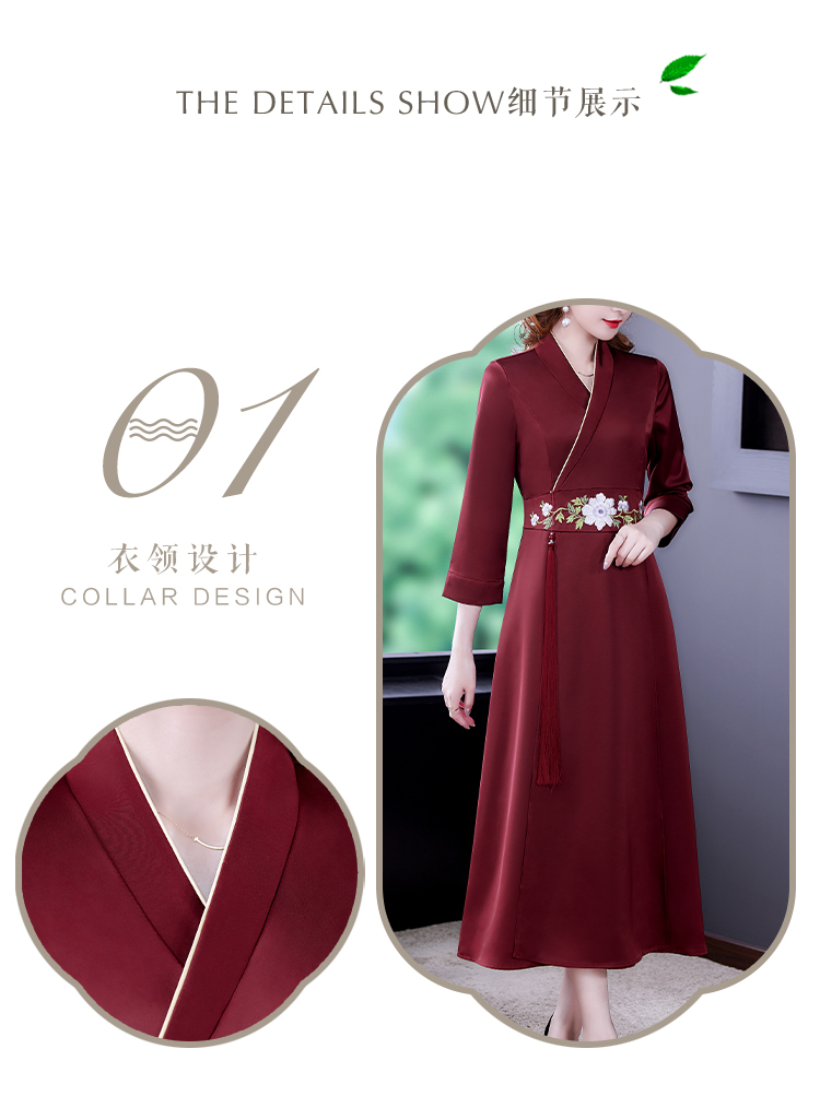 RM22991#改良版旗袍气质连衣裙女2023早秋新款低领收腰日常中国风复古女装