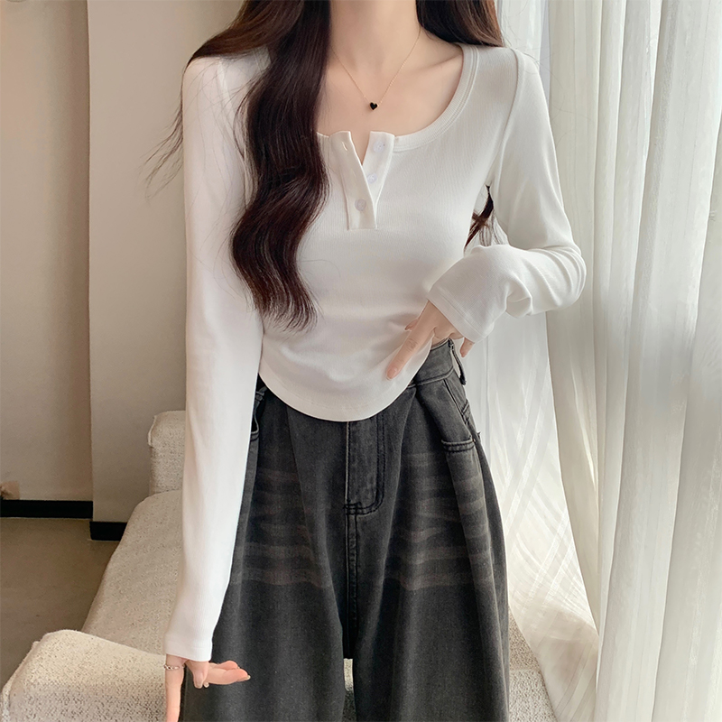 RM23093#不规则长袖t恤女早秋季美式辣妹显瘦短款半开领锁骨上衣