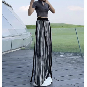 RM23229#条纹休闲阔腿裤女2023夏季腰头撞色飘带设计款宽松显瘦防晒拖地裤