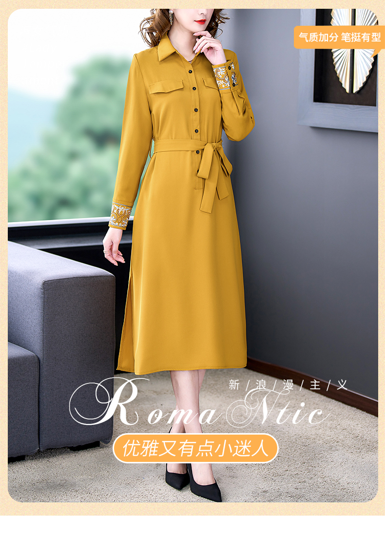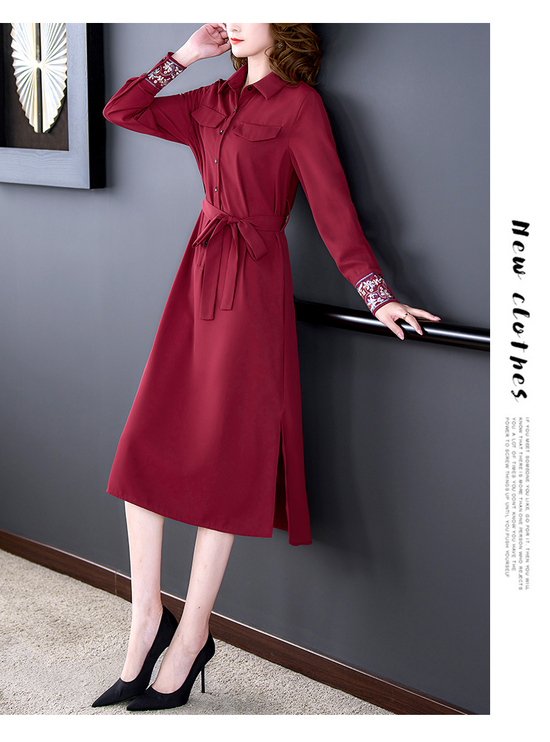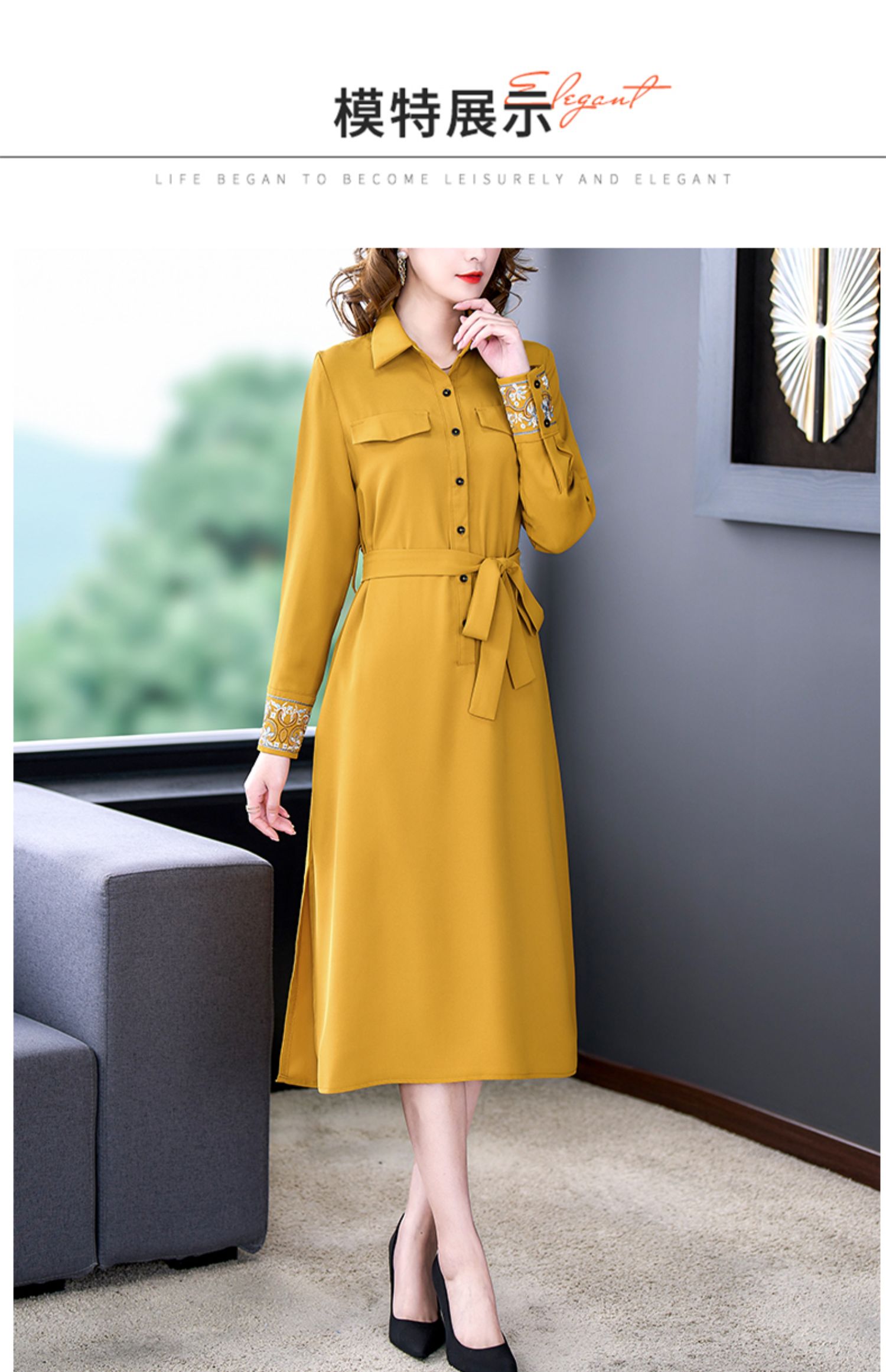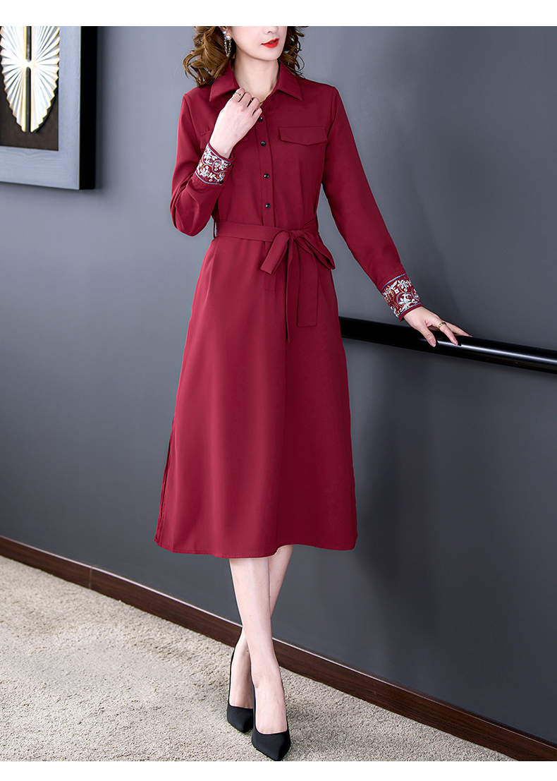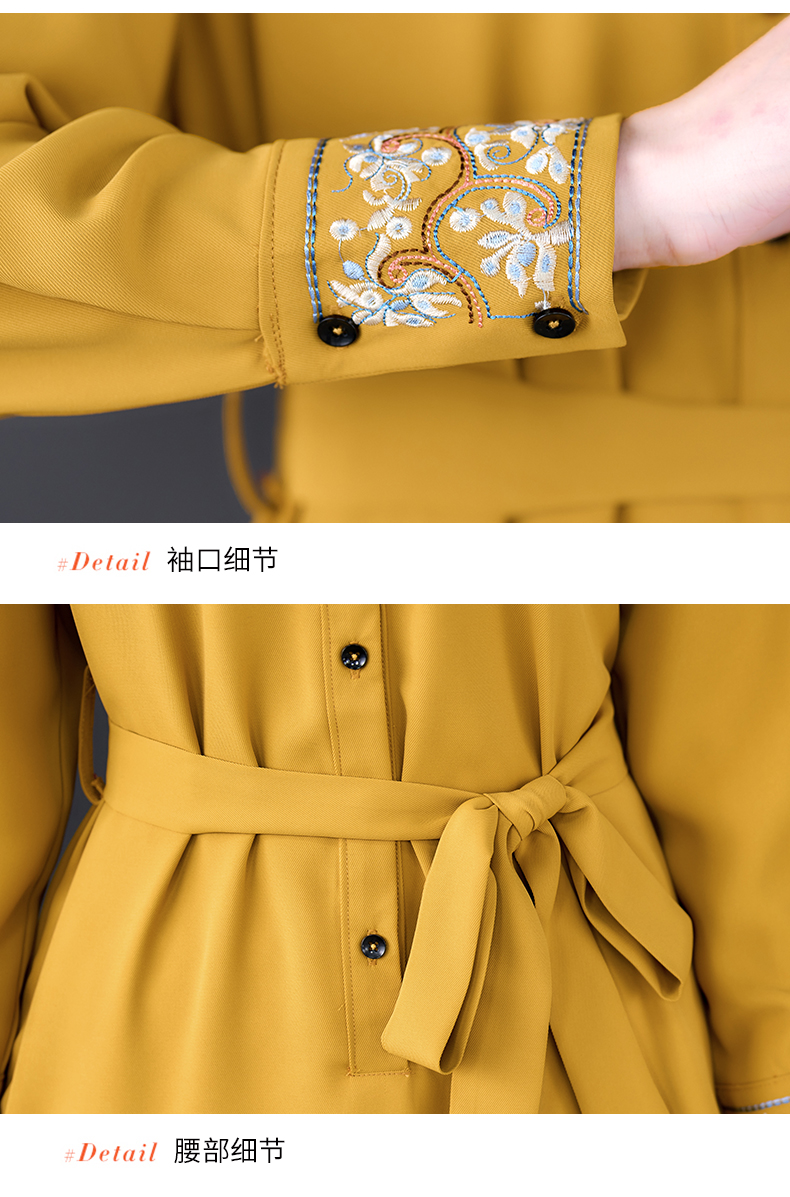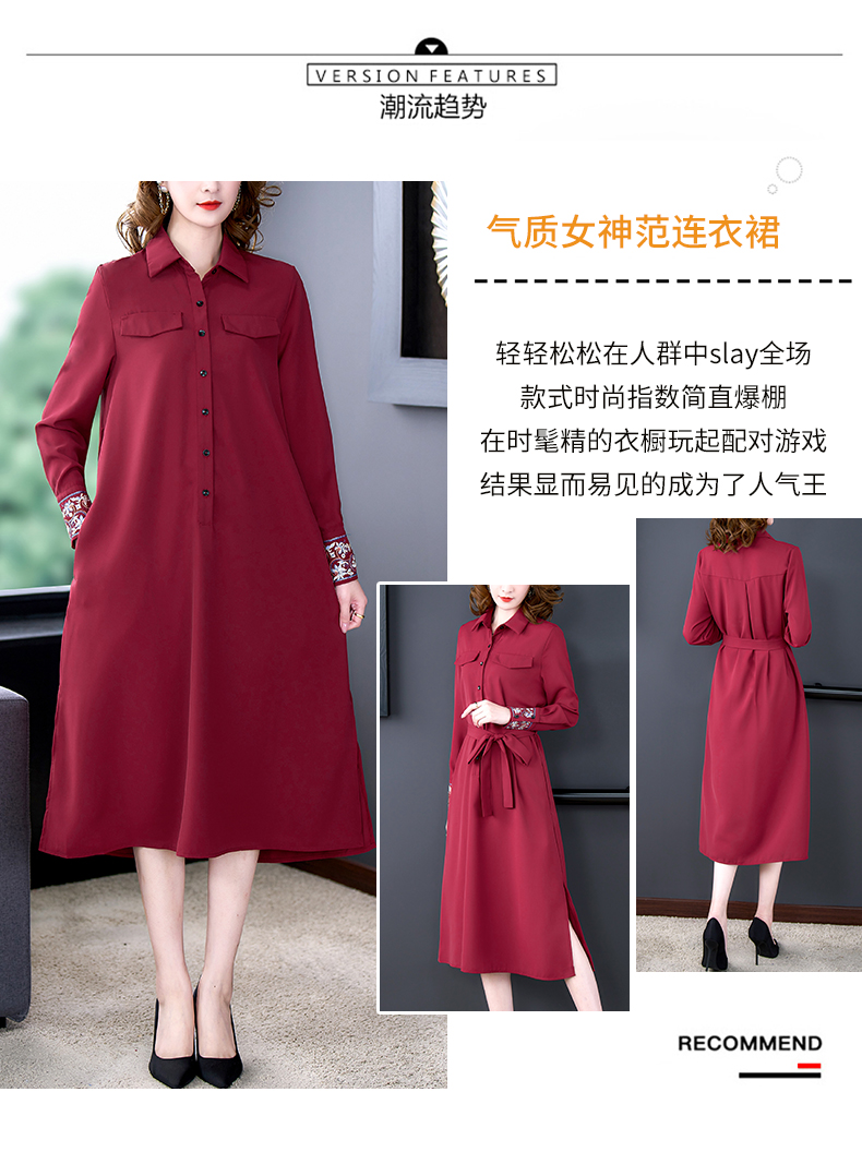 RM23348#连衣裙女国风复古收腰衬衫裙 刺绣花宽松垂感过膝裙女裙