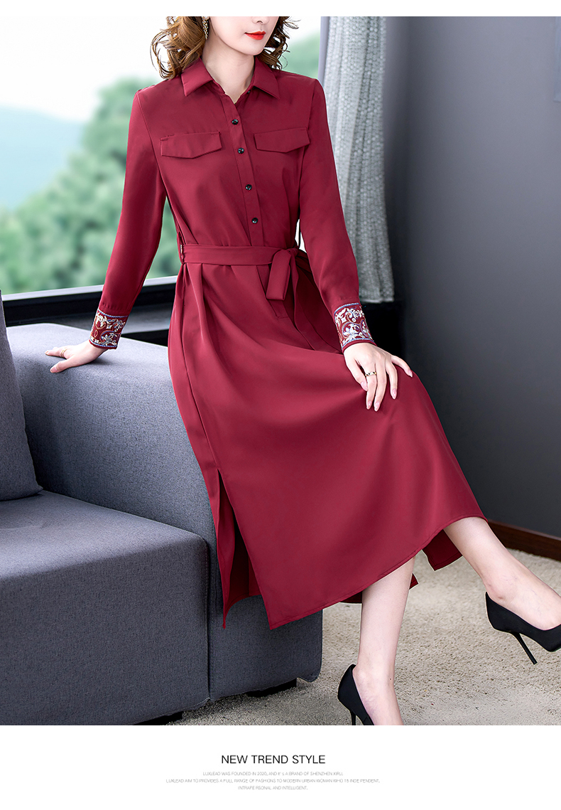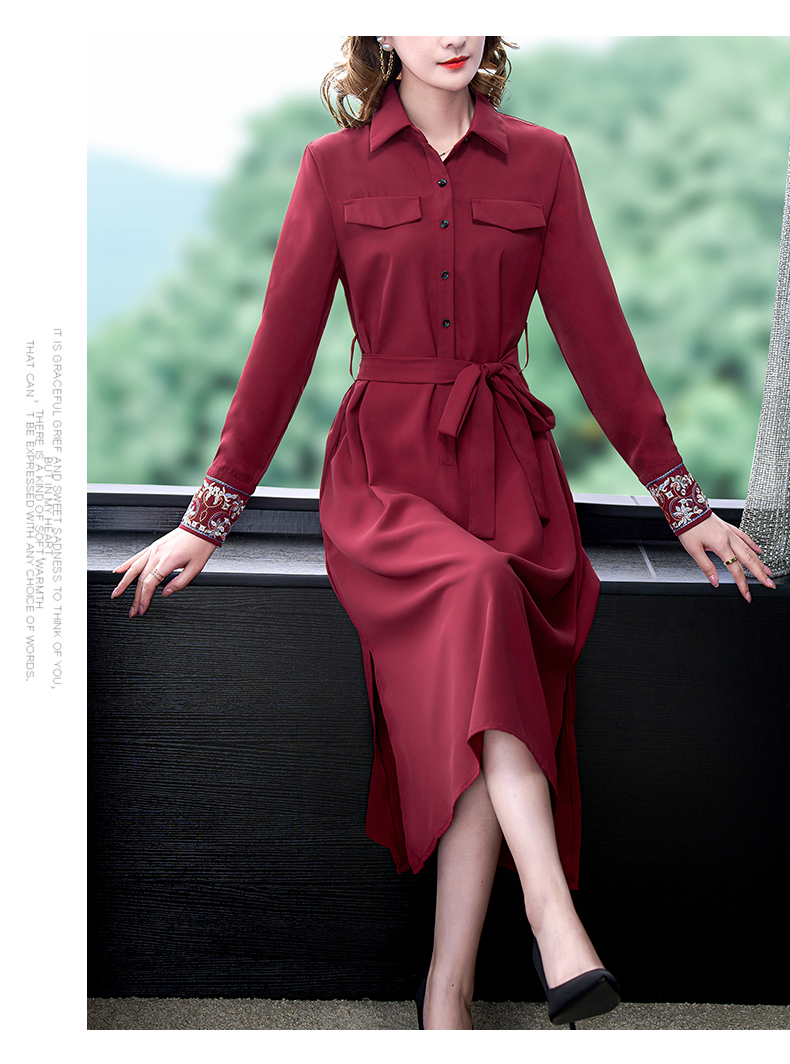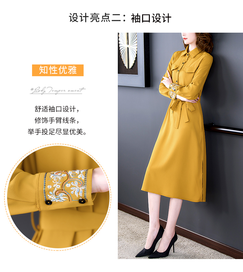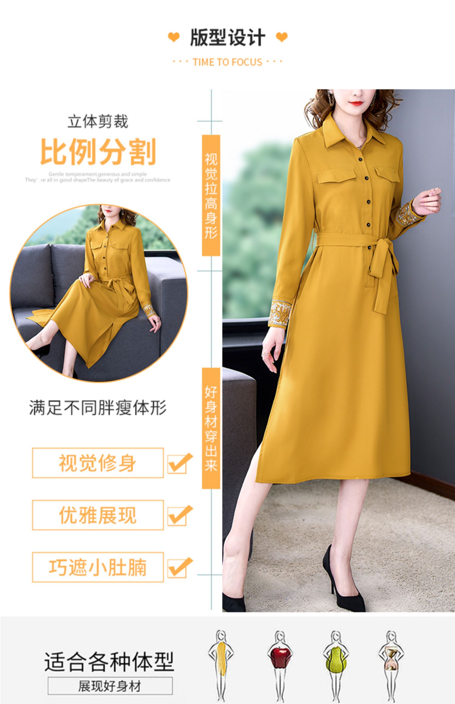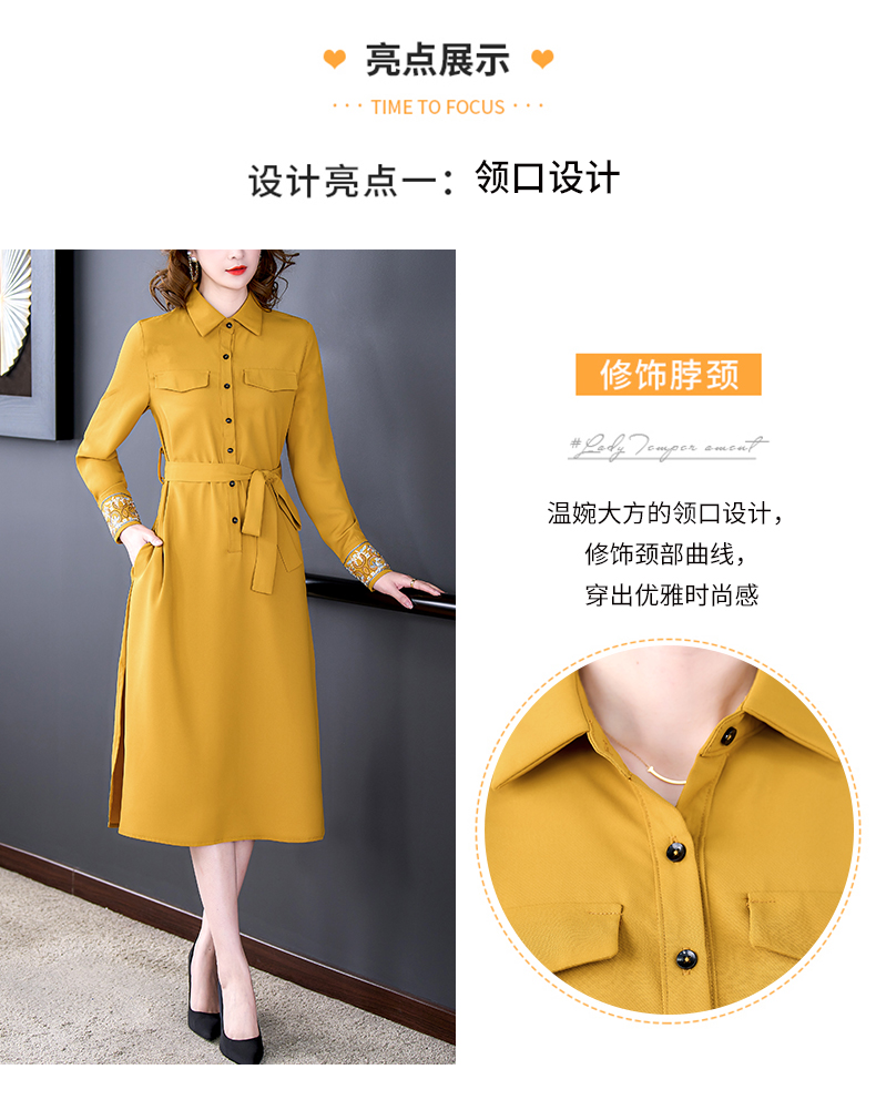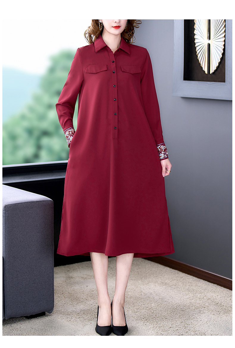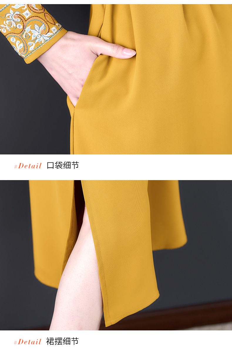 RM23348#连衣裙女国风复古收腰衬衫裙 刺绣花宽松垂感过膝裙女裙