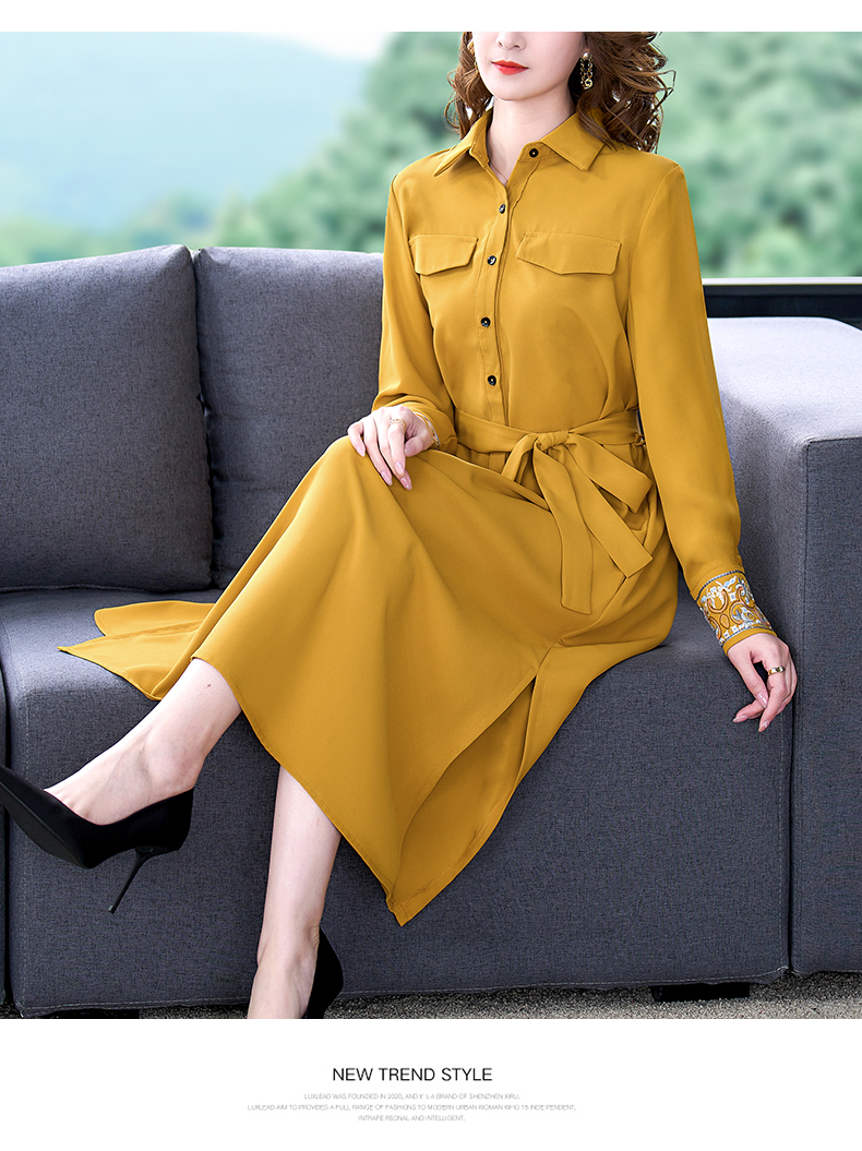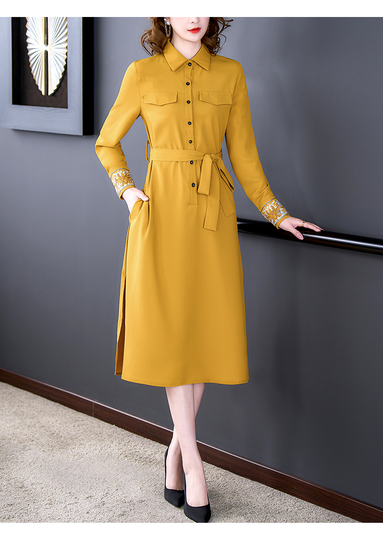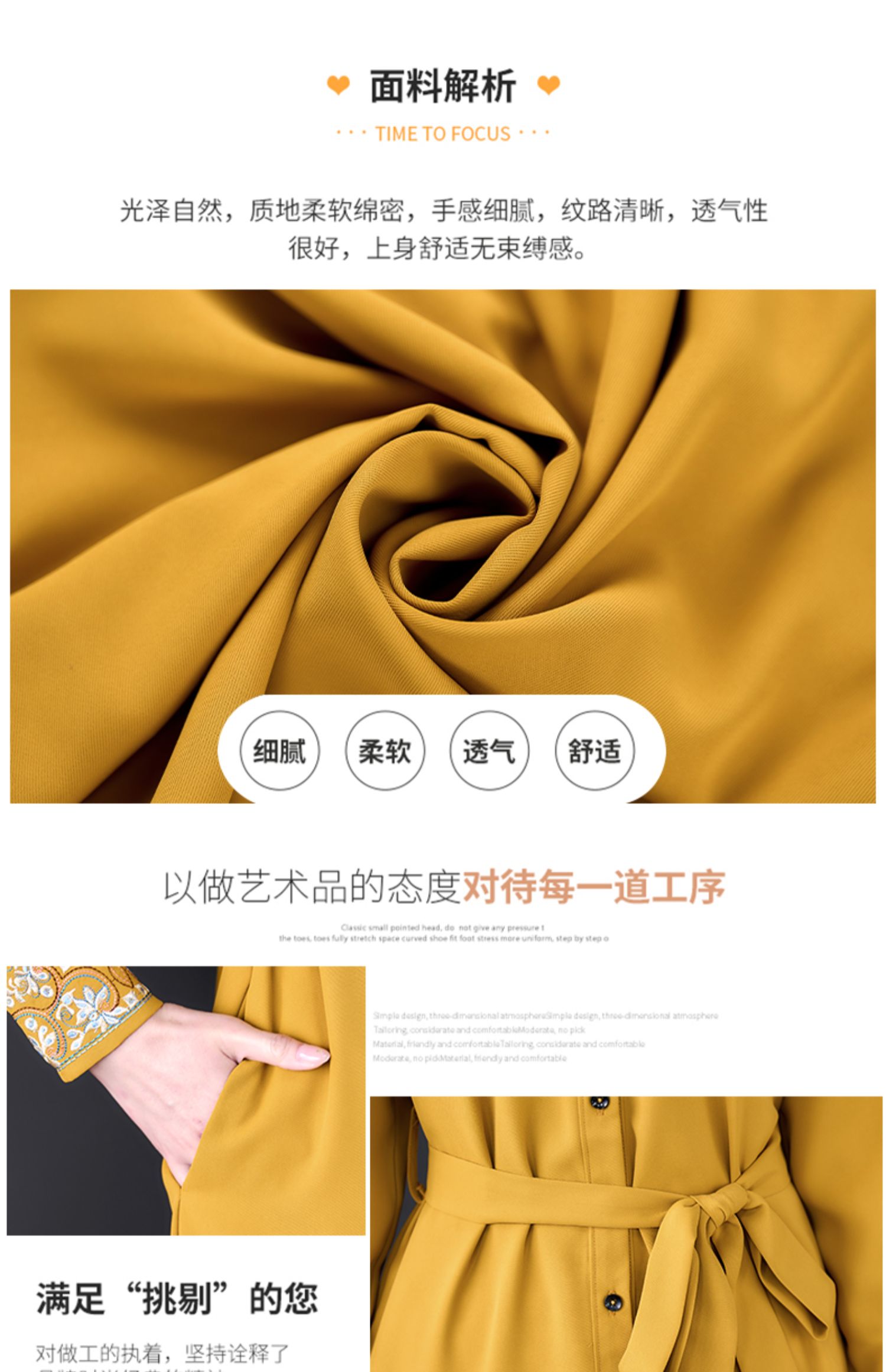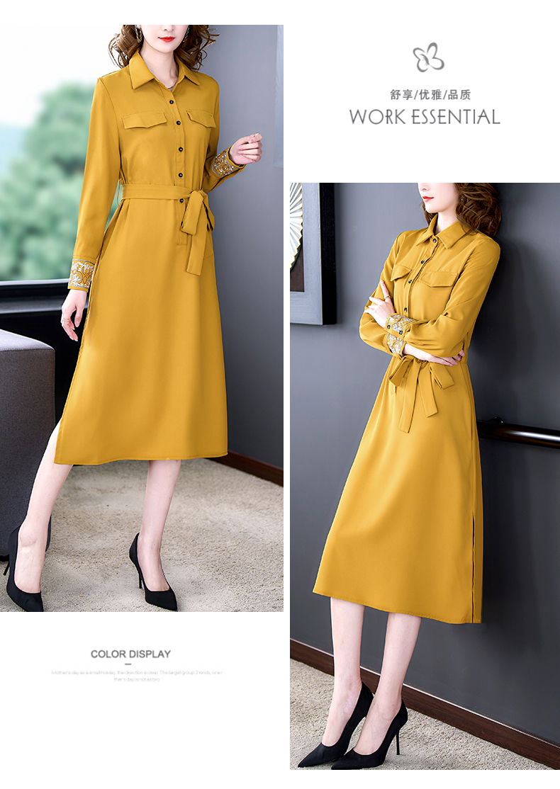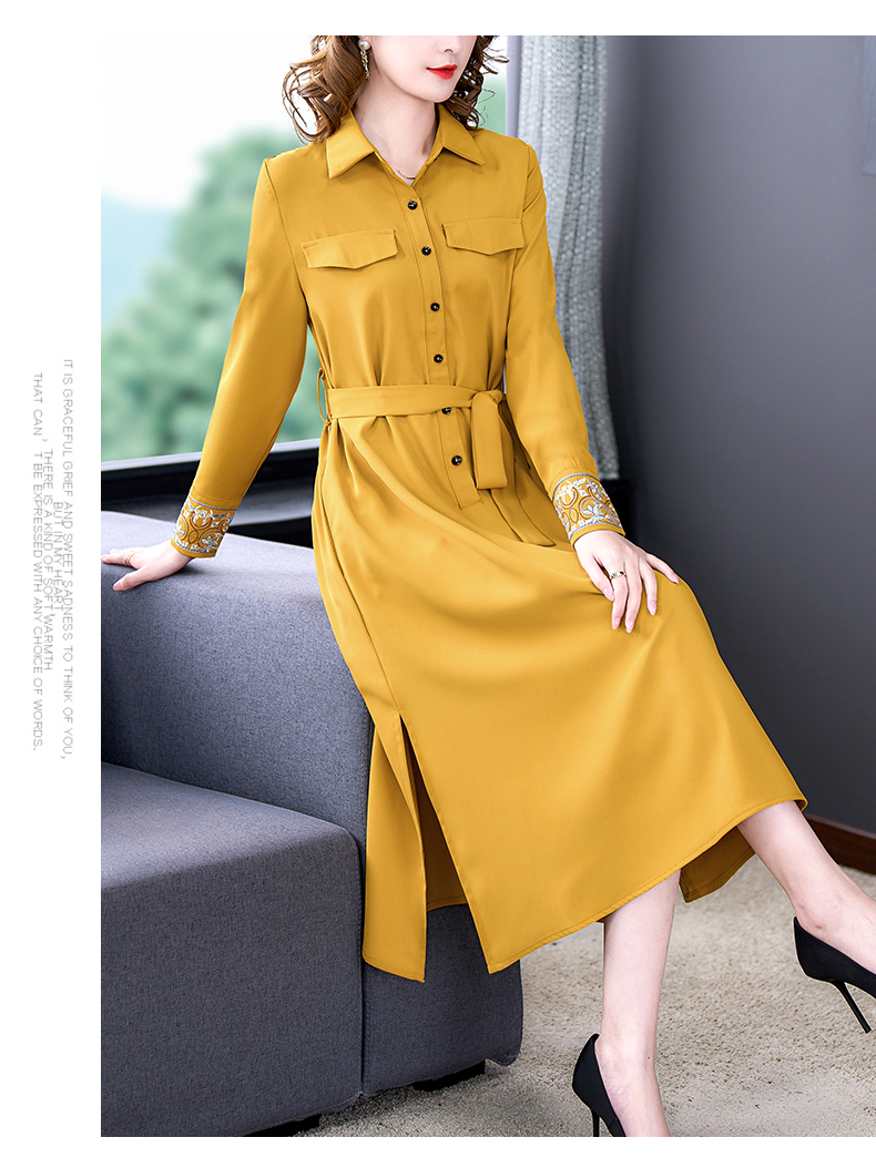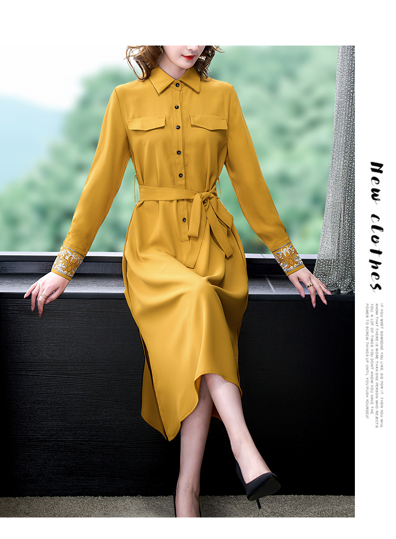 RM23348#连衣裙女国风复古收腰衬衫裙 刺绣花宽松垂感过膝裙女裙