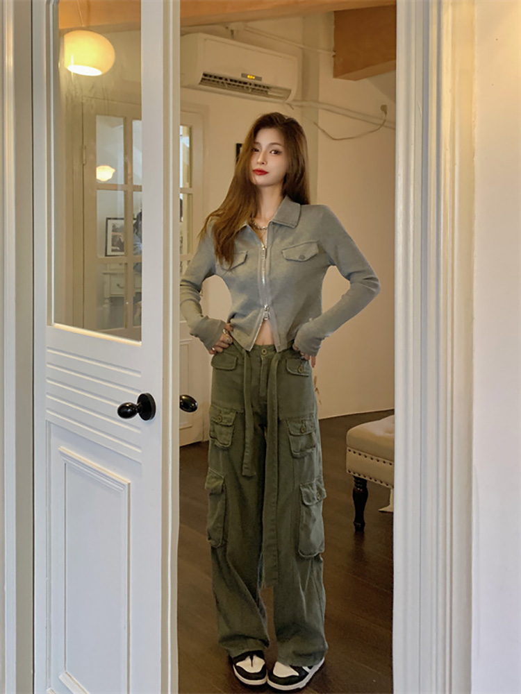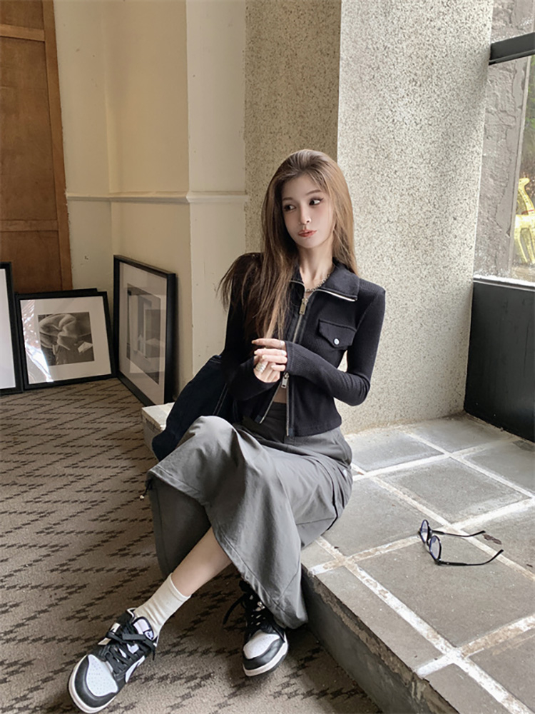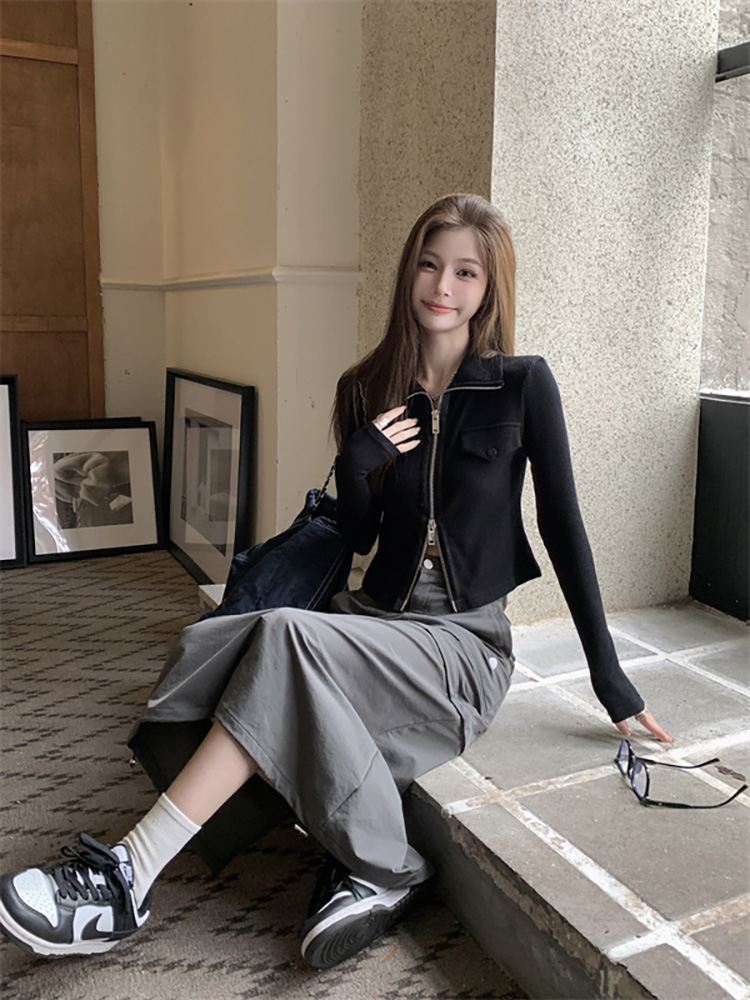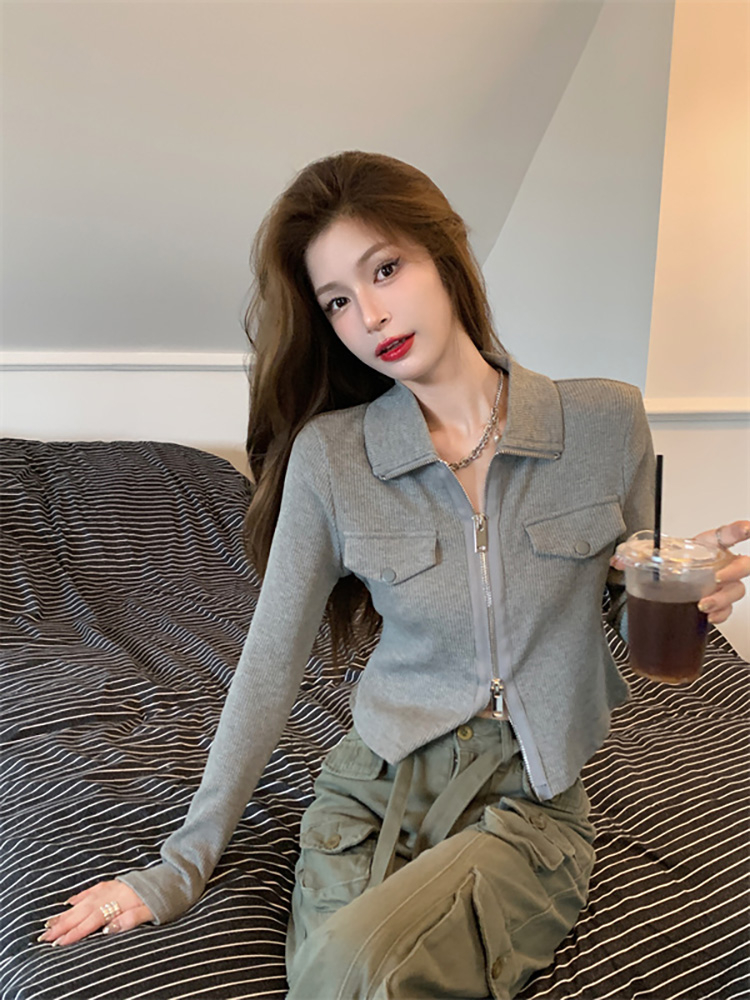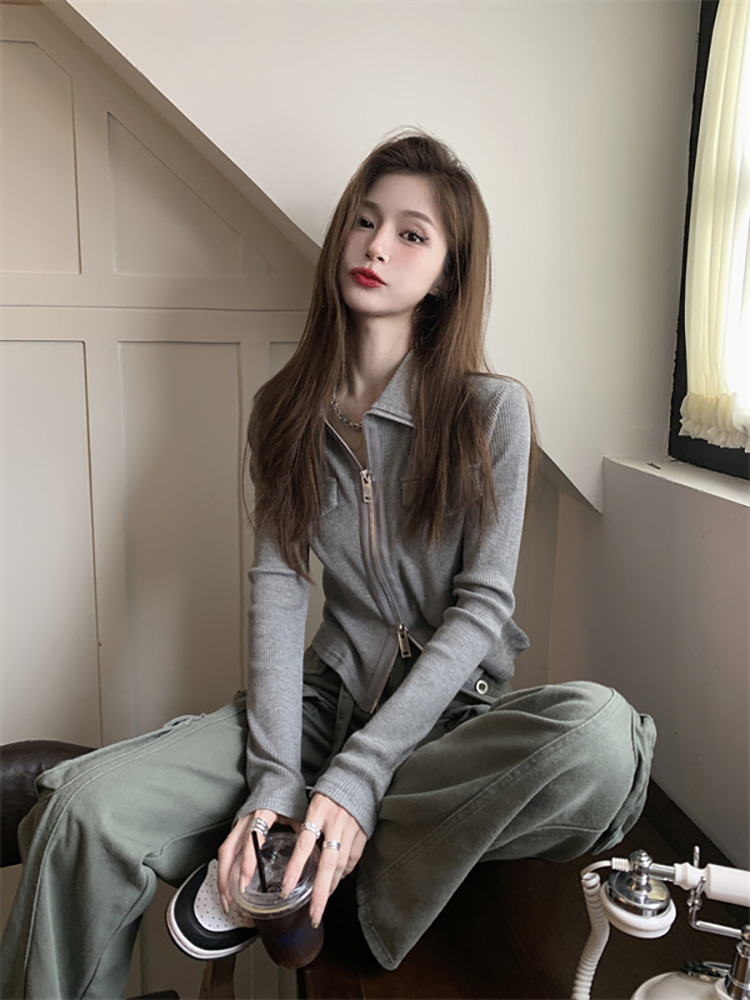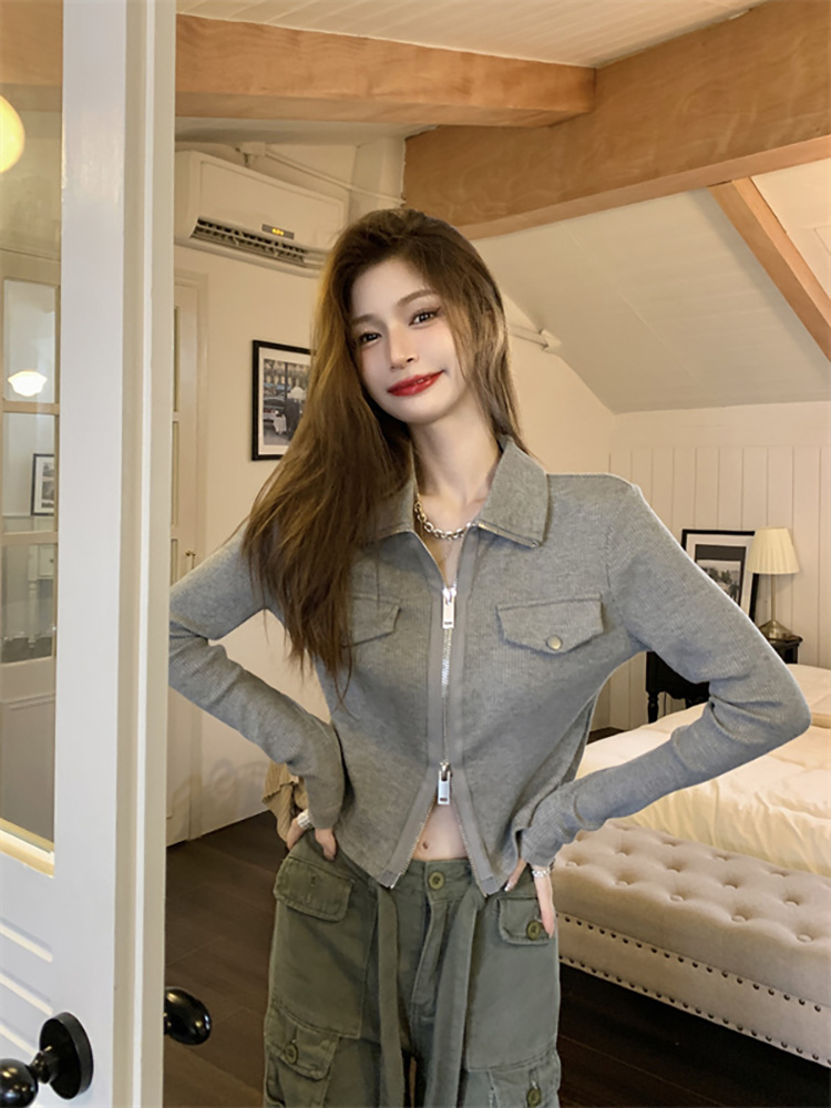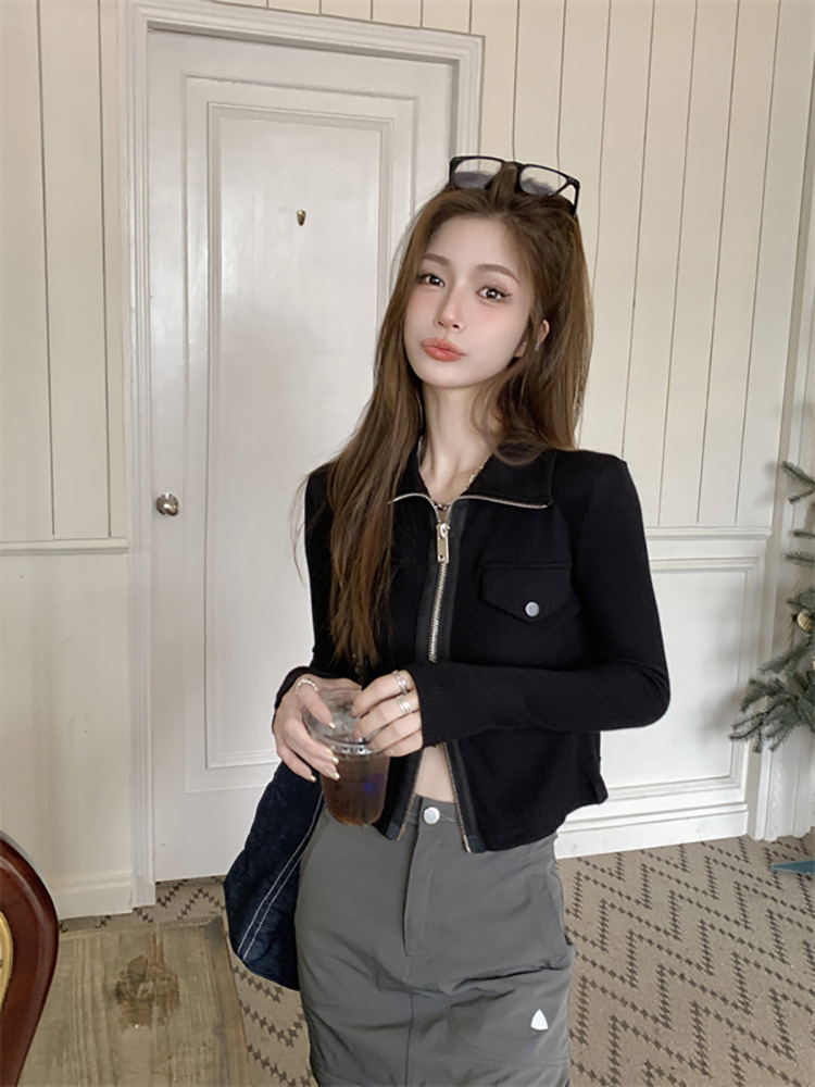 RM23573#双拉链长袖T恤女装秋季气质韩版新款修身显瘦休闲时尚打底POLO衫