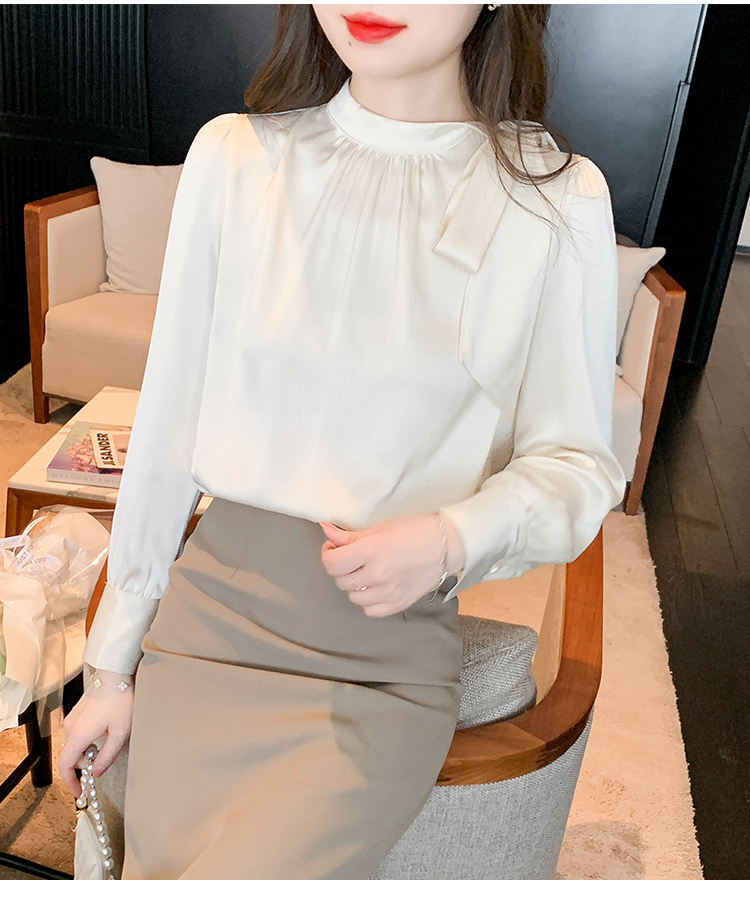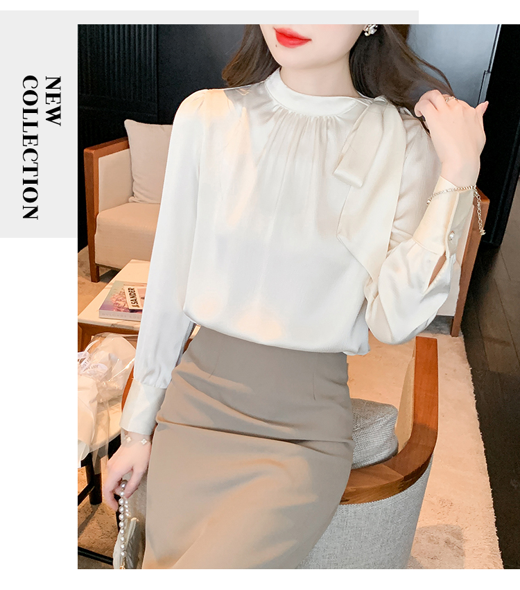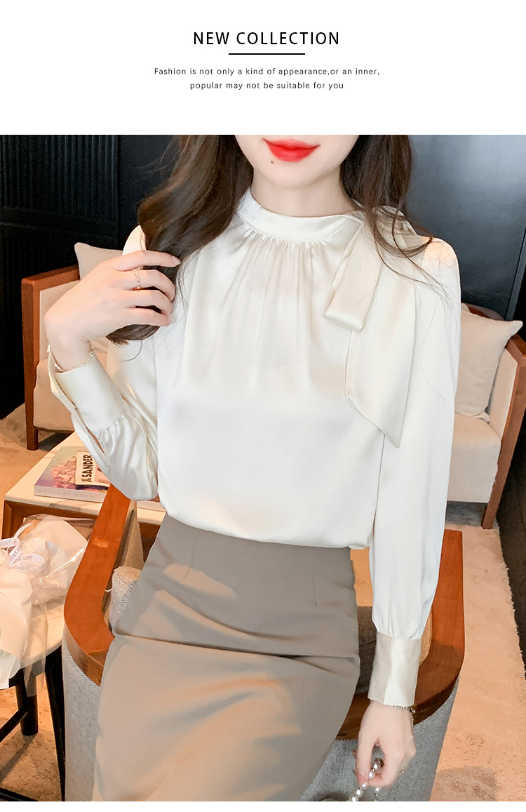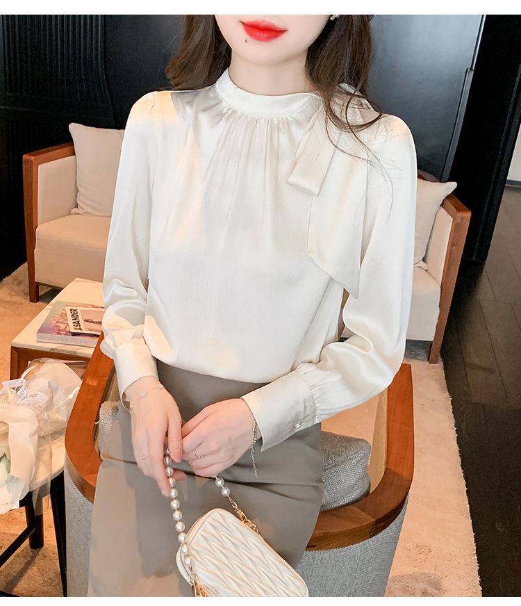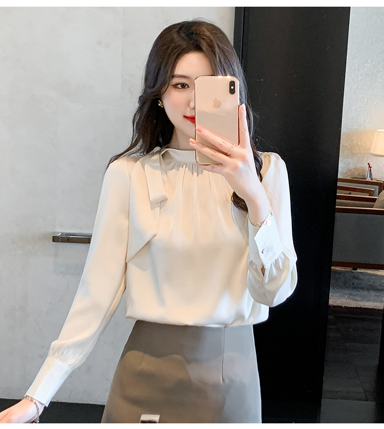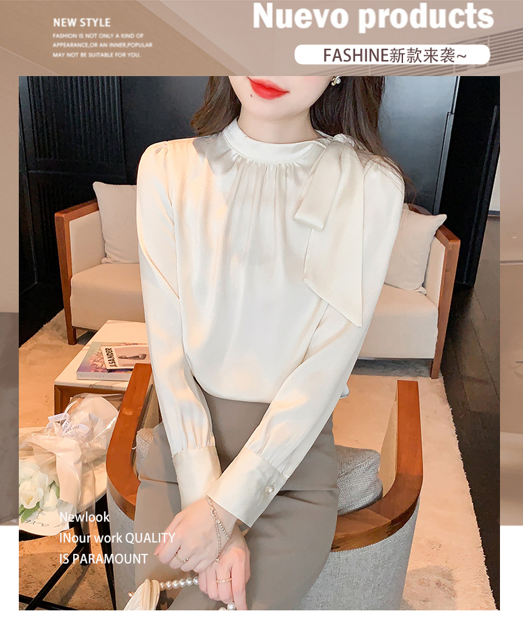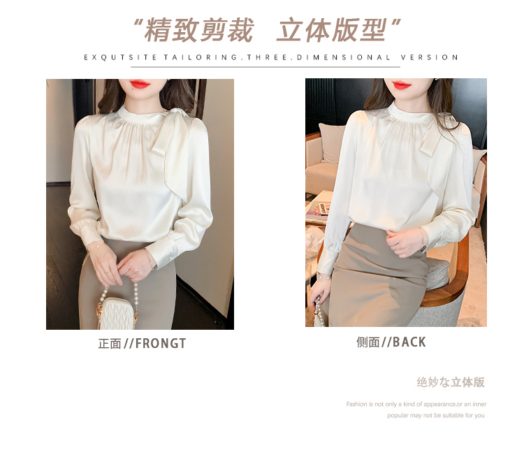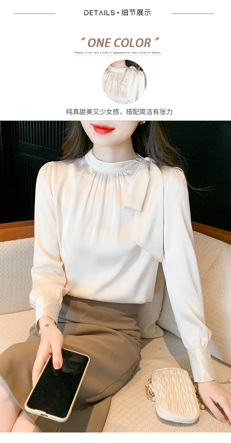 RM23623#温婉柔美 法式杏色蝴蝶结缎面衬衫女设计感小众衬衣早秋上衣