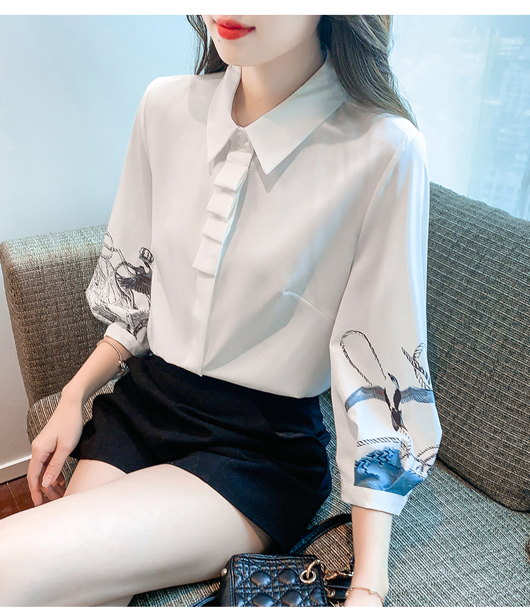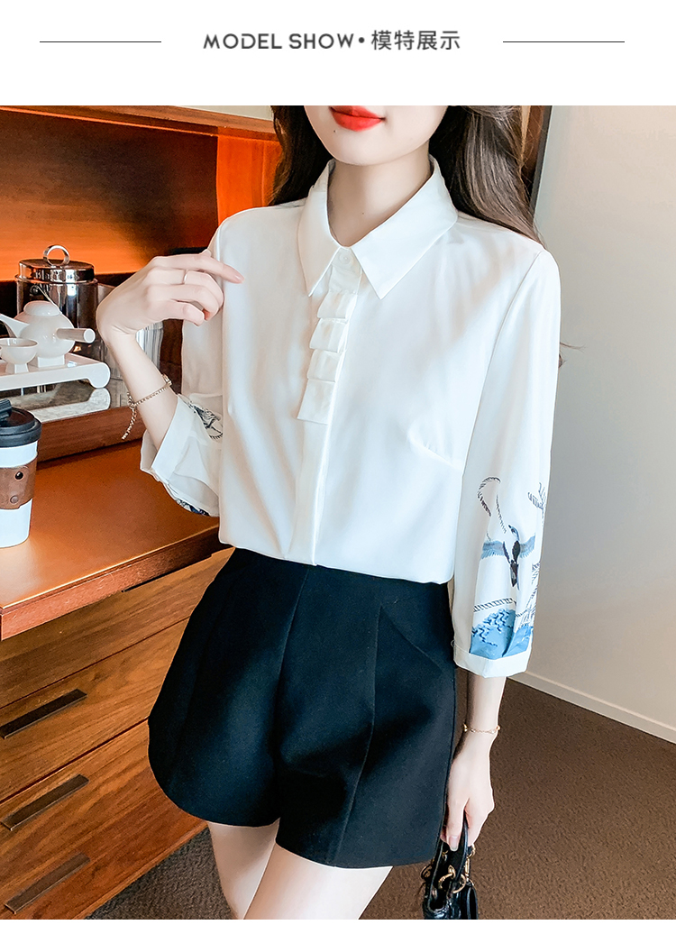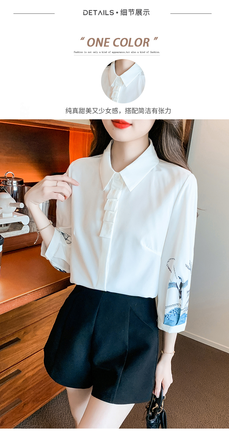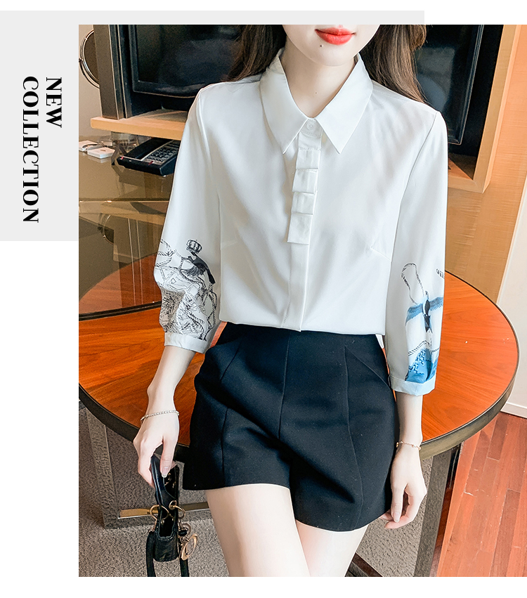 RM23624#新款通勤气质印花八分袖白色衬衫七分袖时尚设计感