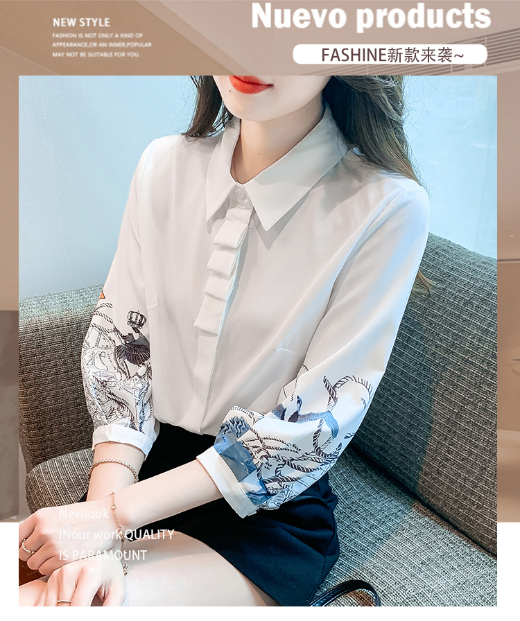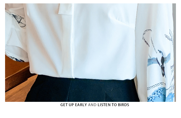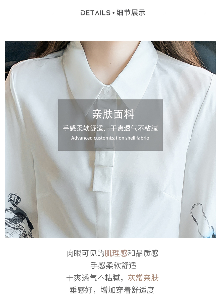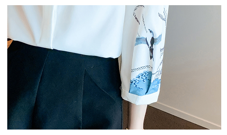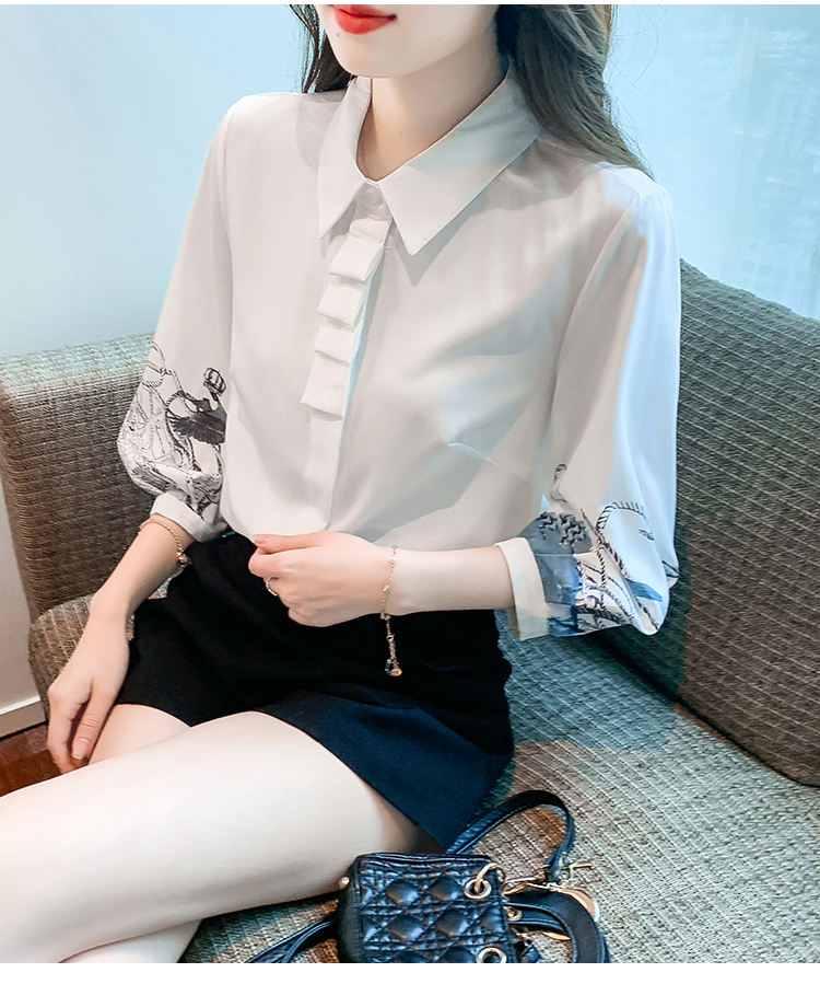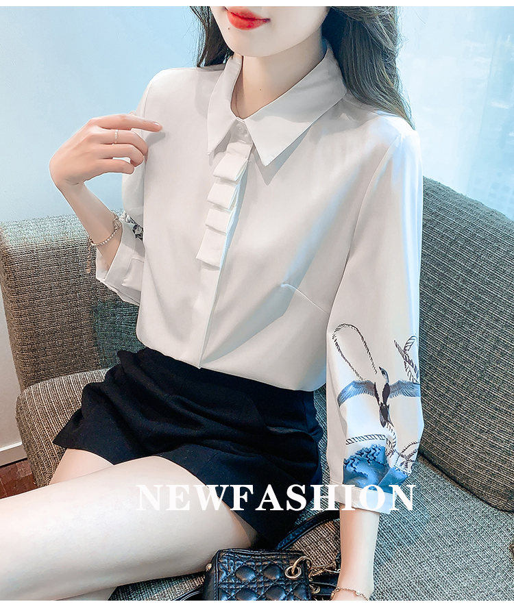 RM23624#新款通勤气质印花八分袖白色衬衫七分袖时尚设计感
