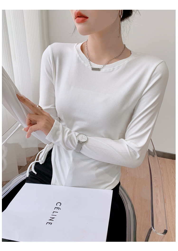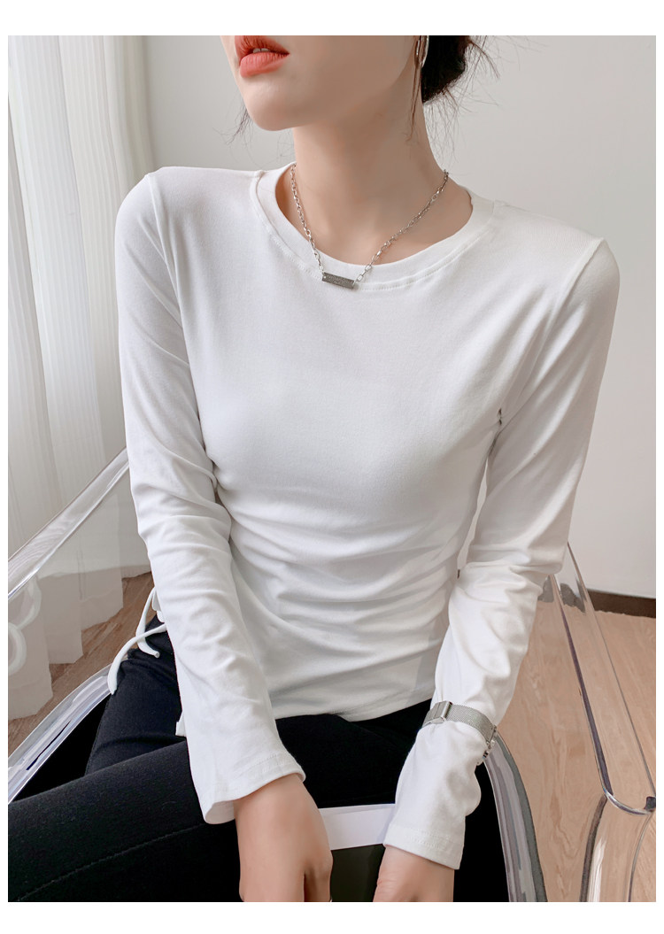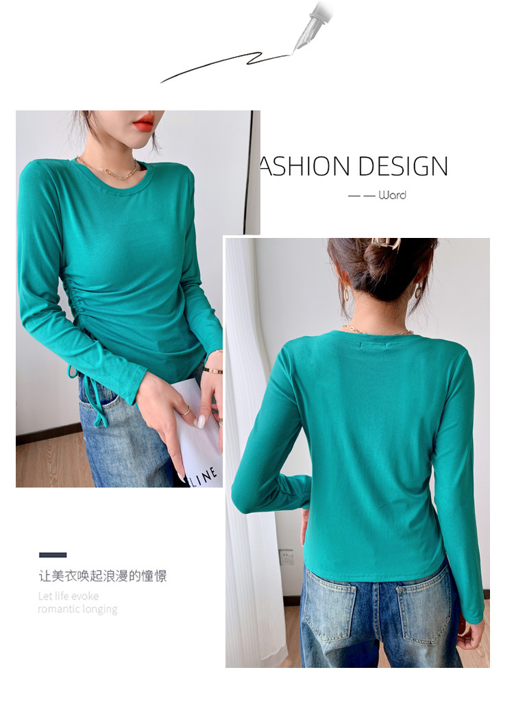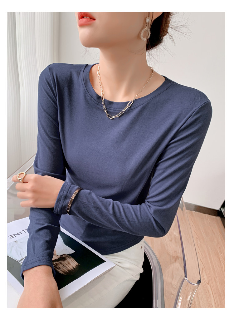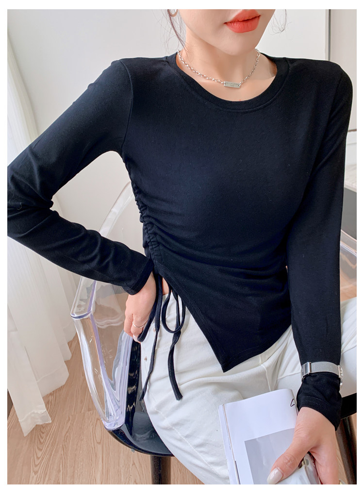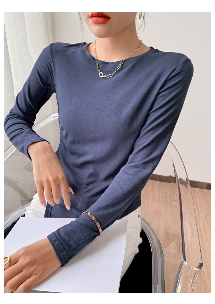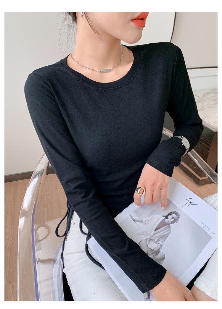 RM23648#圆领修身显瘦打底衫设计感小众长袖早秋新款T恤内搭上衣